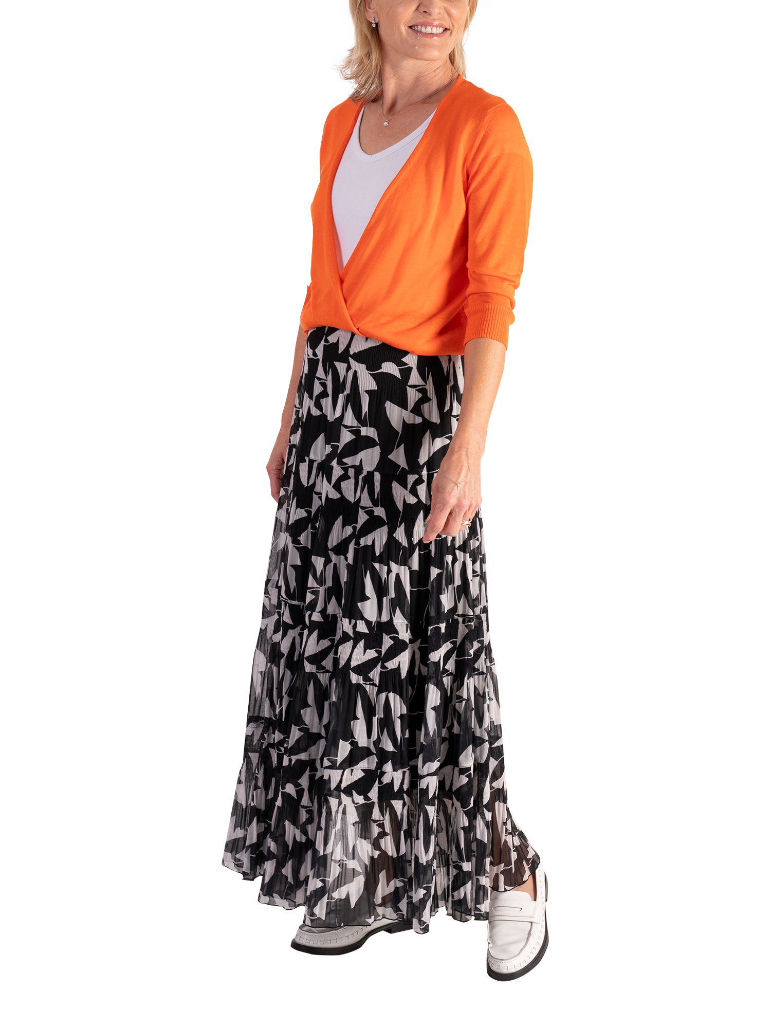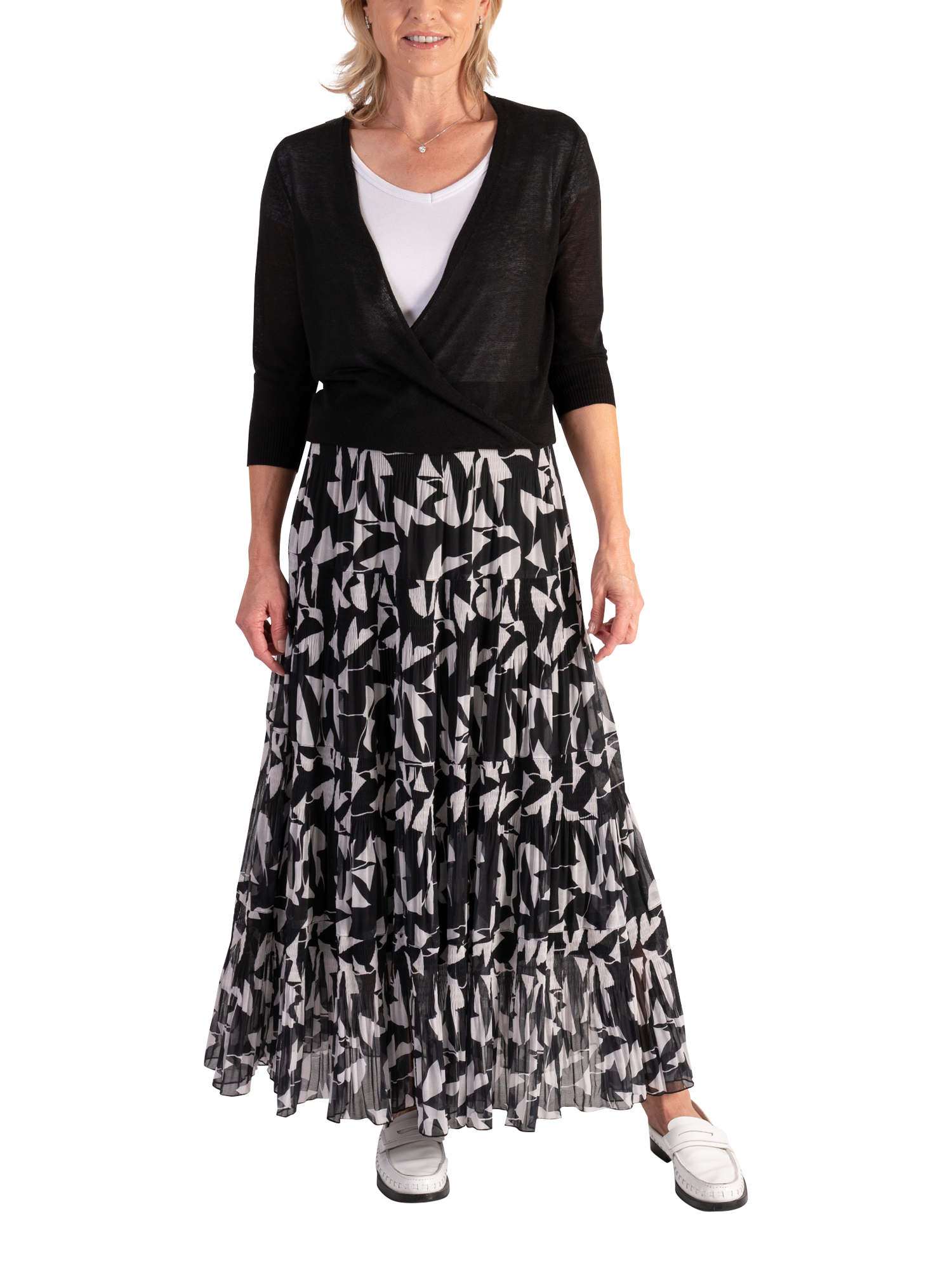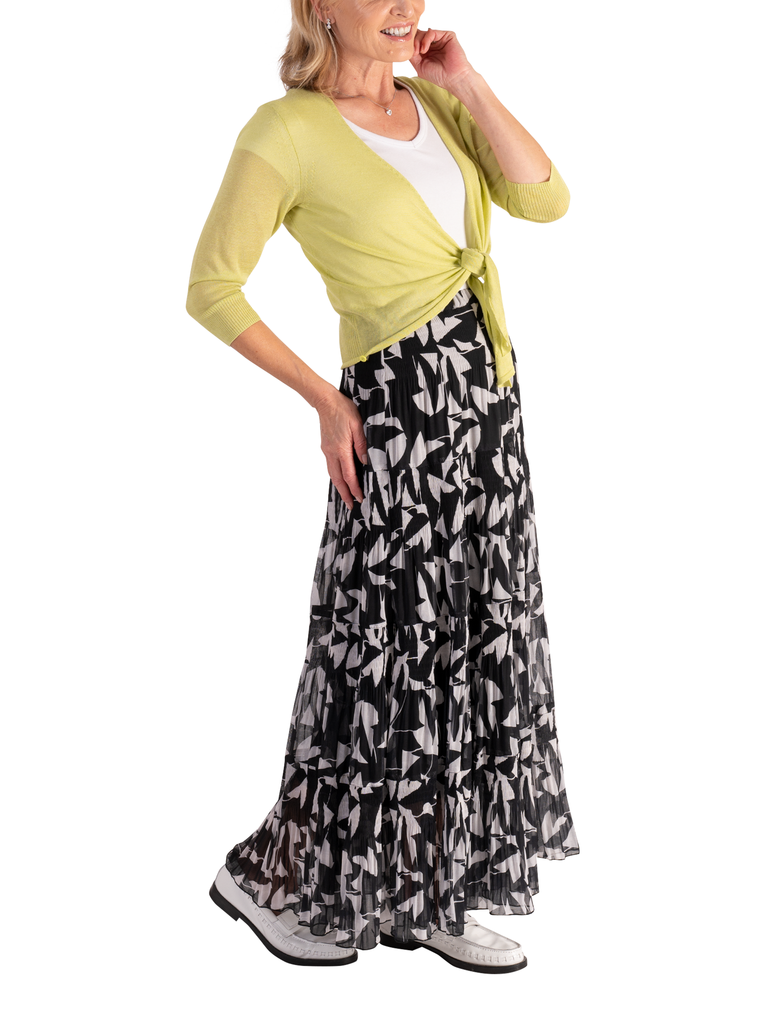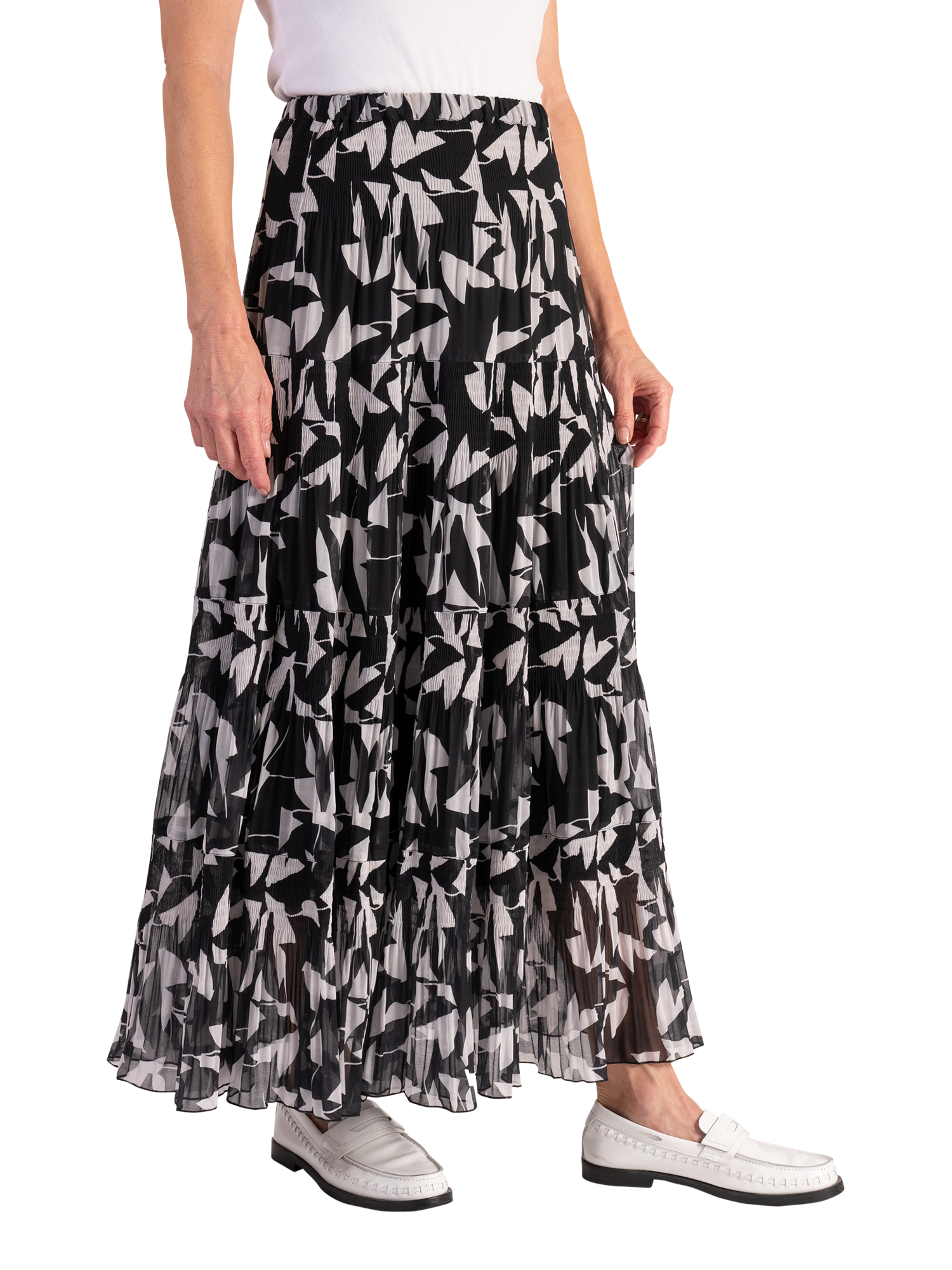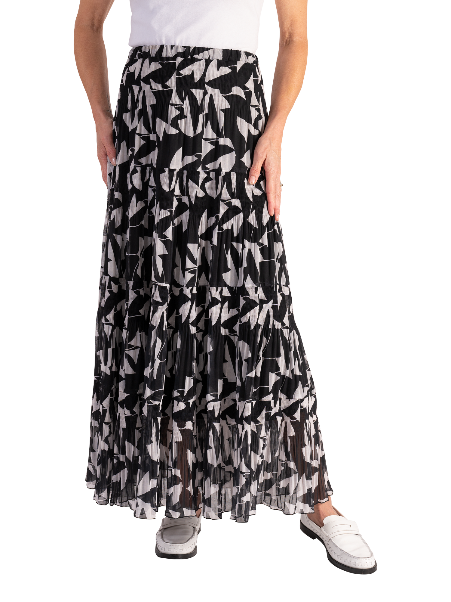 Tiered at the hem for feminine movement, this pull on gathered maxi skirt is made from a soft and fluid lightly pleated material that will last you wear after wear. Printed in a monochrome geometric pattern for added contemporary appeal, it is primed for hot and balmy summer days.