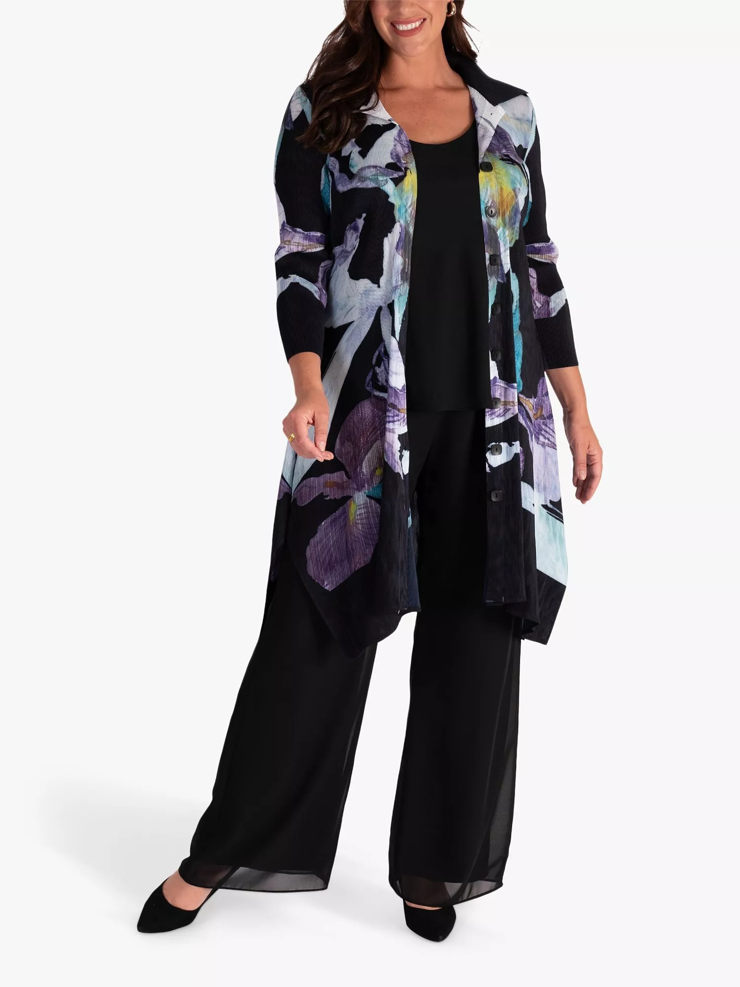 An effortless outerwear piece you can just throw on and go, this coatigan by chesca streamlines the profile with its longline cut.