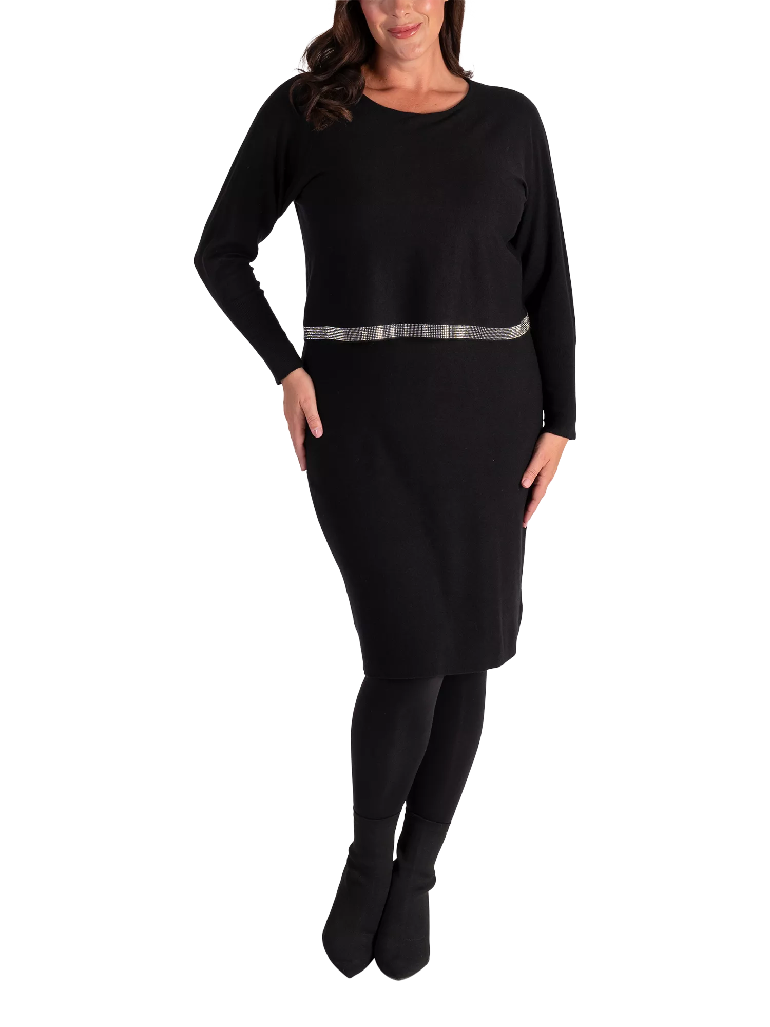 This knee-length layered dress catches the eye with its rows of sparkling diamantés. Framed with an round neckline and cut in a soft blended knitted fabric that ensures comfort, this piece is one you'll reach for a night on the town with friends.
