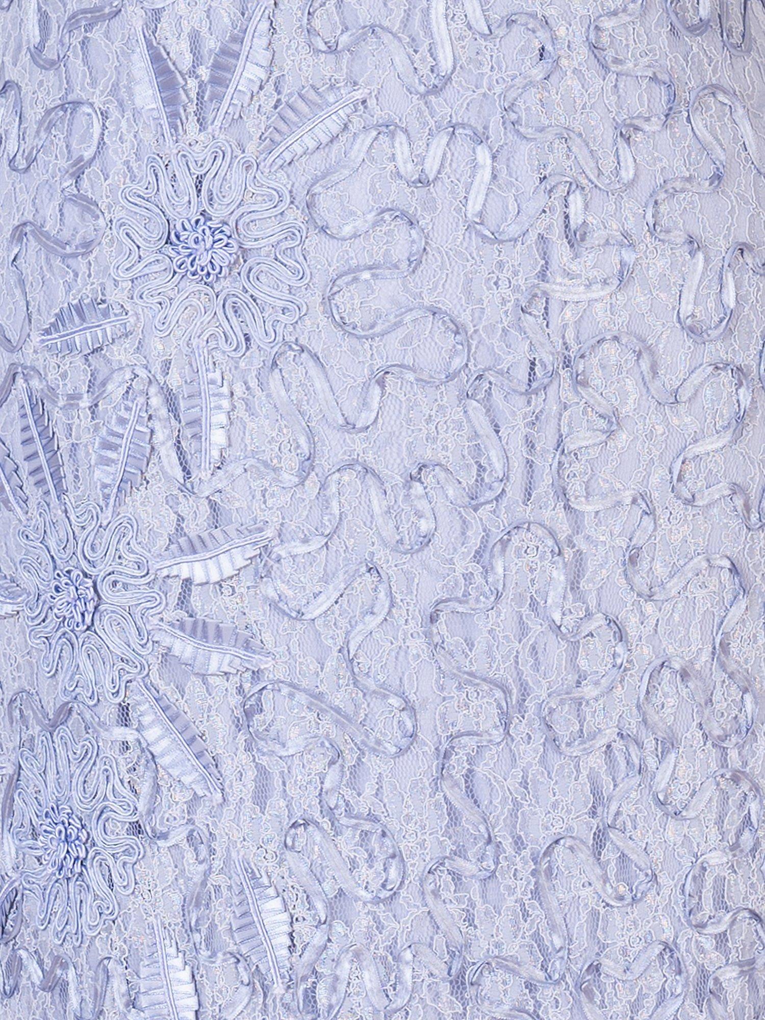 Luxury lace and cornelli tapework is crafted to fit and flatter for that oh-so-special occasion. This exquisite dress is crafted from the finest lace embroidered with satin ribbon and with the addition of delicately hand-crafted embossed flowers. An oval neckline and curving seams at the hip ensures a silhouette that flatters every figure. Worn solo or with matching V-neck single button jacket, this award-winning dress will turn heads for your fairytale wedding.
