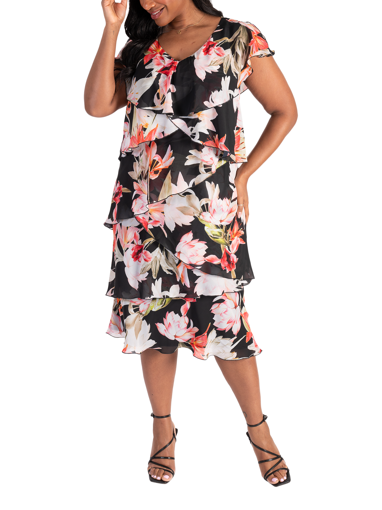 Embrace your inner maximalist with the help of chesca and this dress. Cut to a midi silhouette and adorned with lilies in print form, this piece is ideal for seasonal parties or weddings.