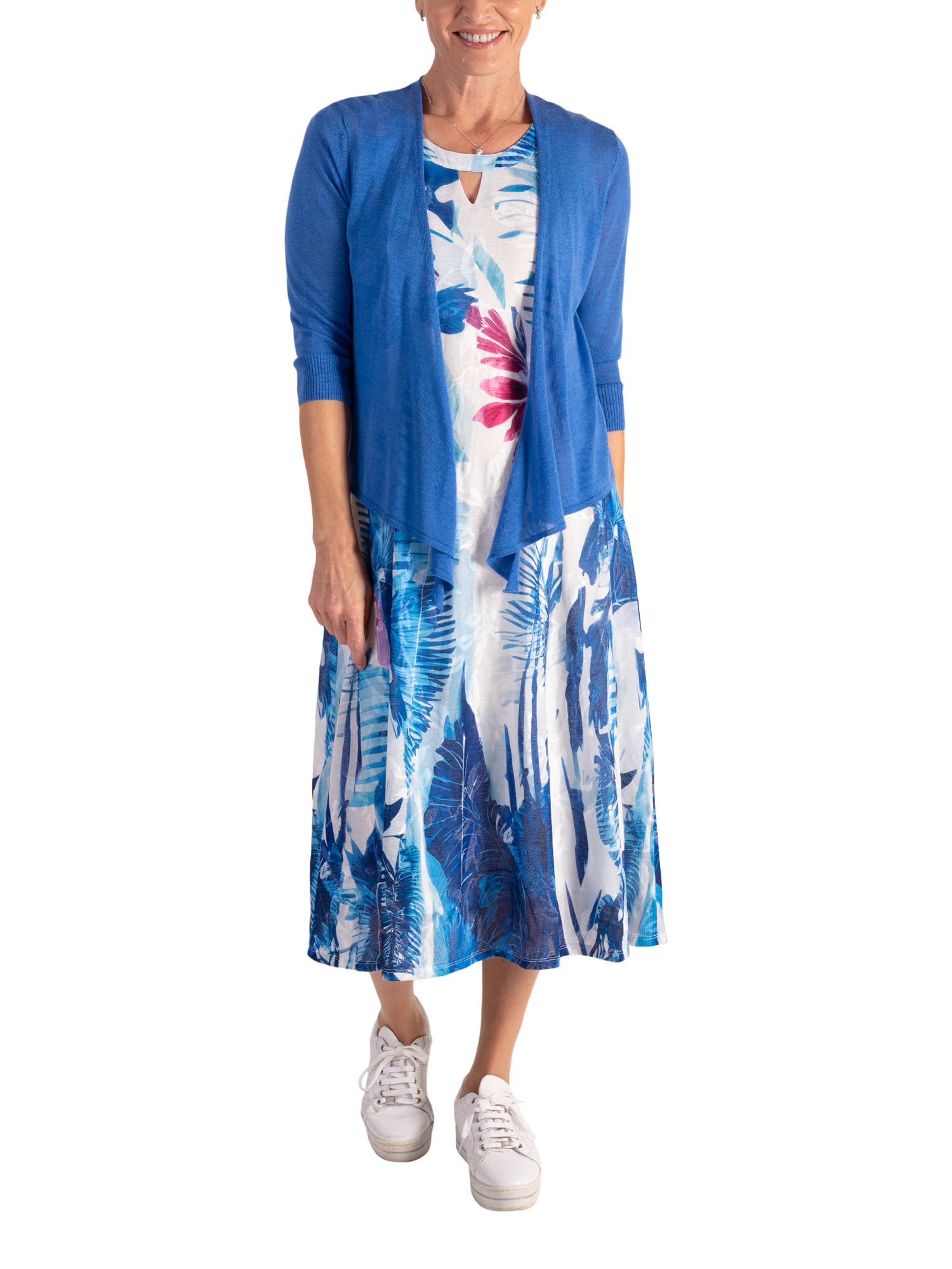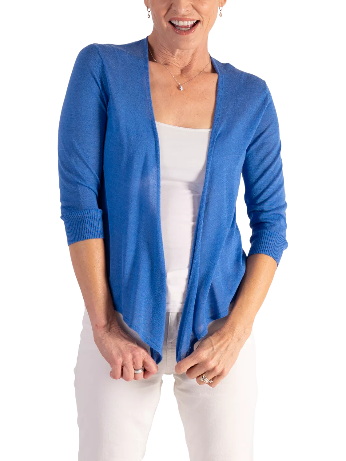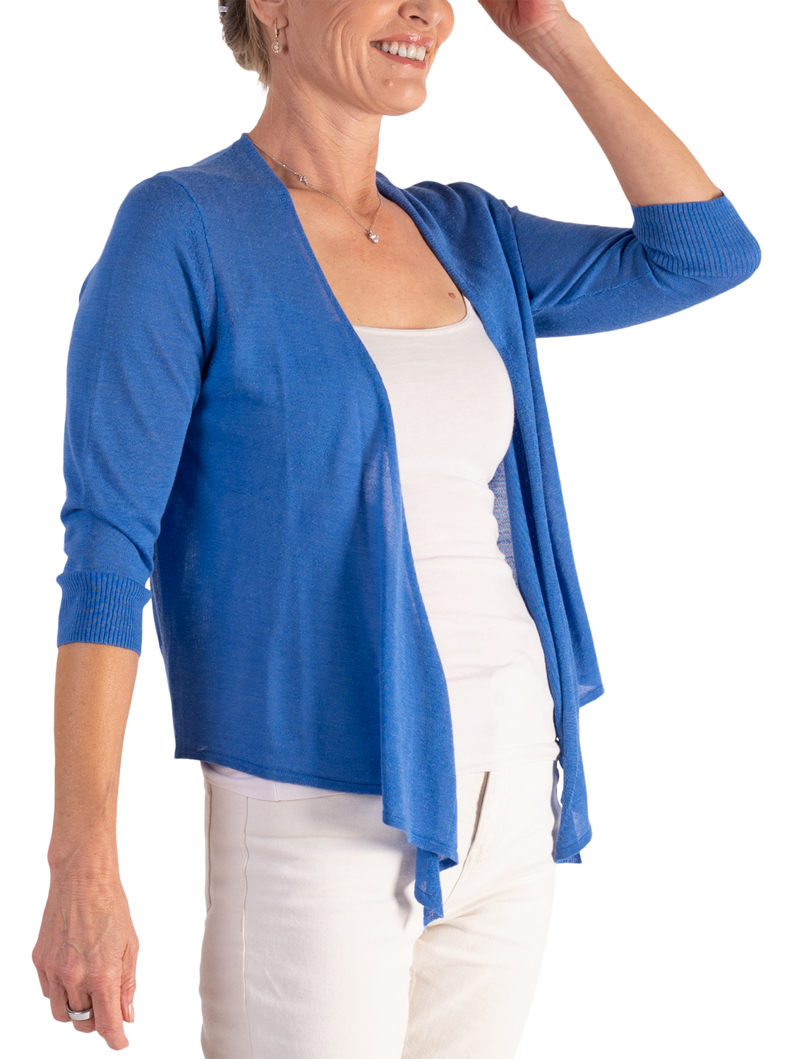 With four easy ways to wear this stylish silk mix bolero cardigan, it is an essential to any wardrobe. Designed with an open neck for a casual vibe it is fashioned from a lightweight blend to accompany dresses and tops alike. Adding a feminine finish to your look, this bolero cardigan sits at the hip for versatile coverage. Fasten the two side buttons and have an instant wrap top.