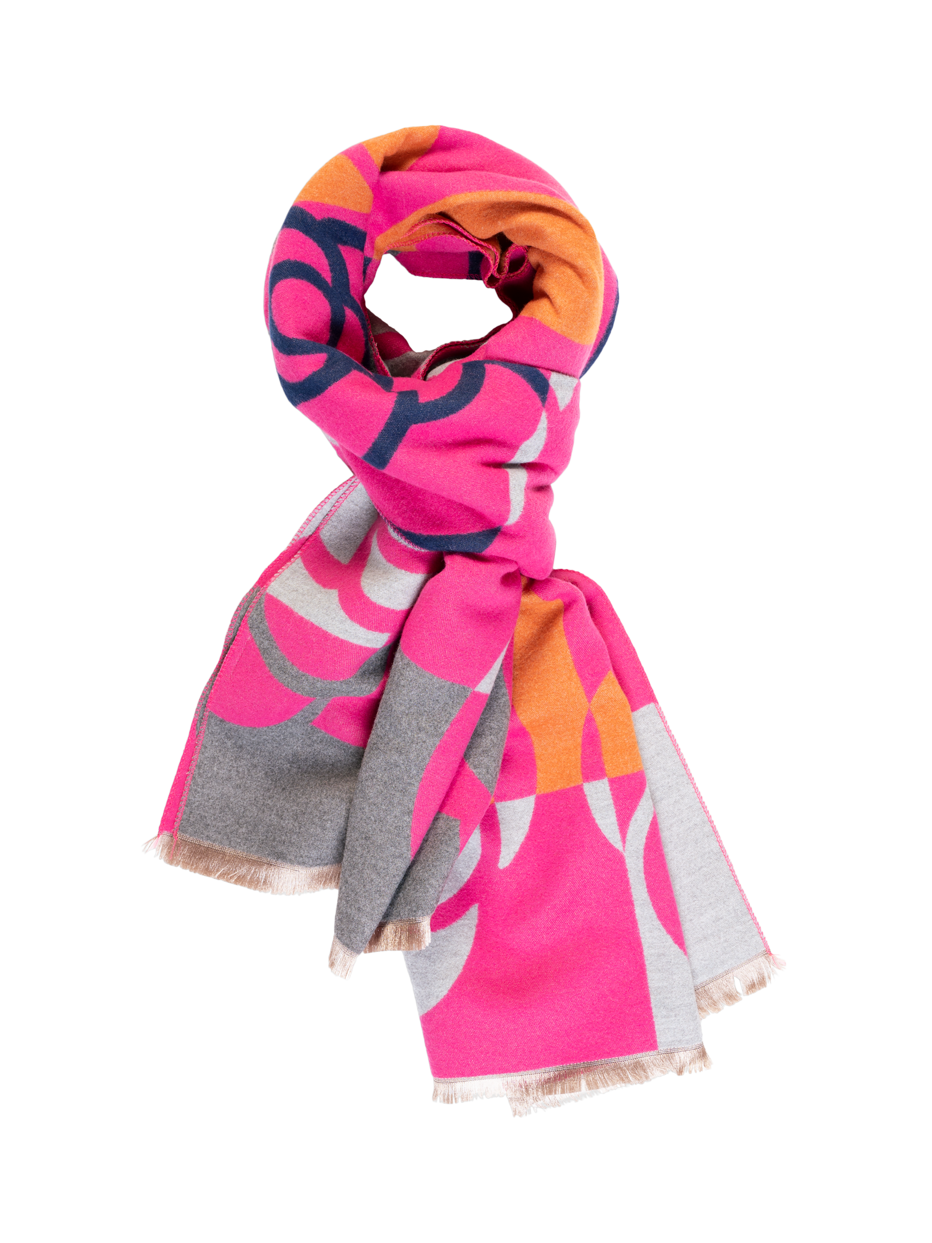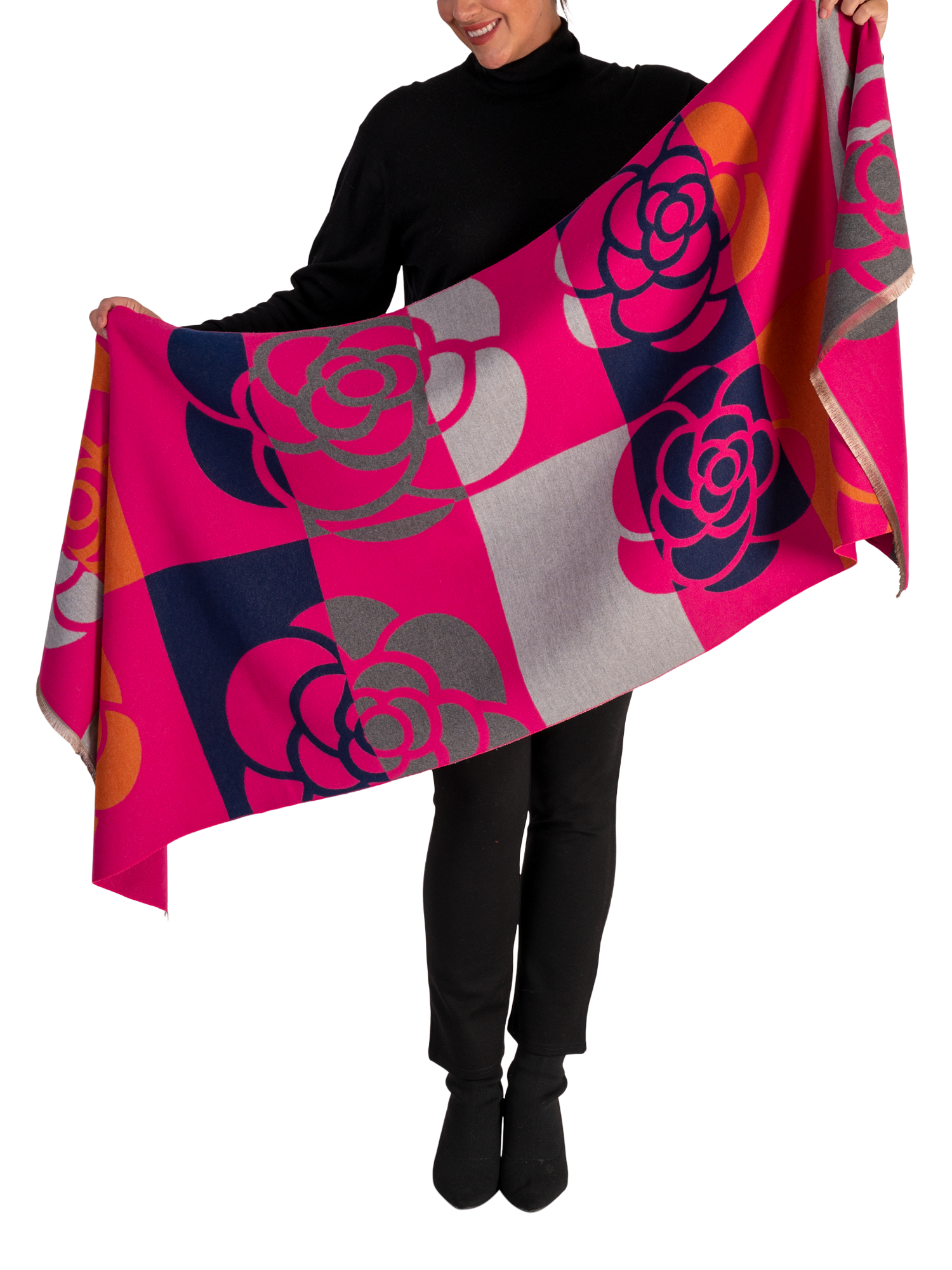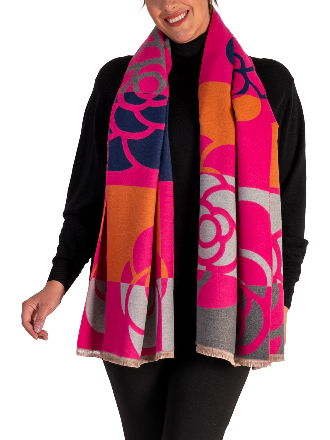 Adorned with a contemporary floral motif over a colour blocked base, this luxurious cashmere-feel reversible scarf with a frayed hemline lends itself to multiple styling options. Throw over casual ensembles or wear under your favourite coat for added warmth and colour.