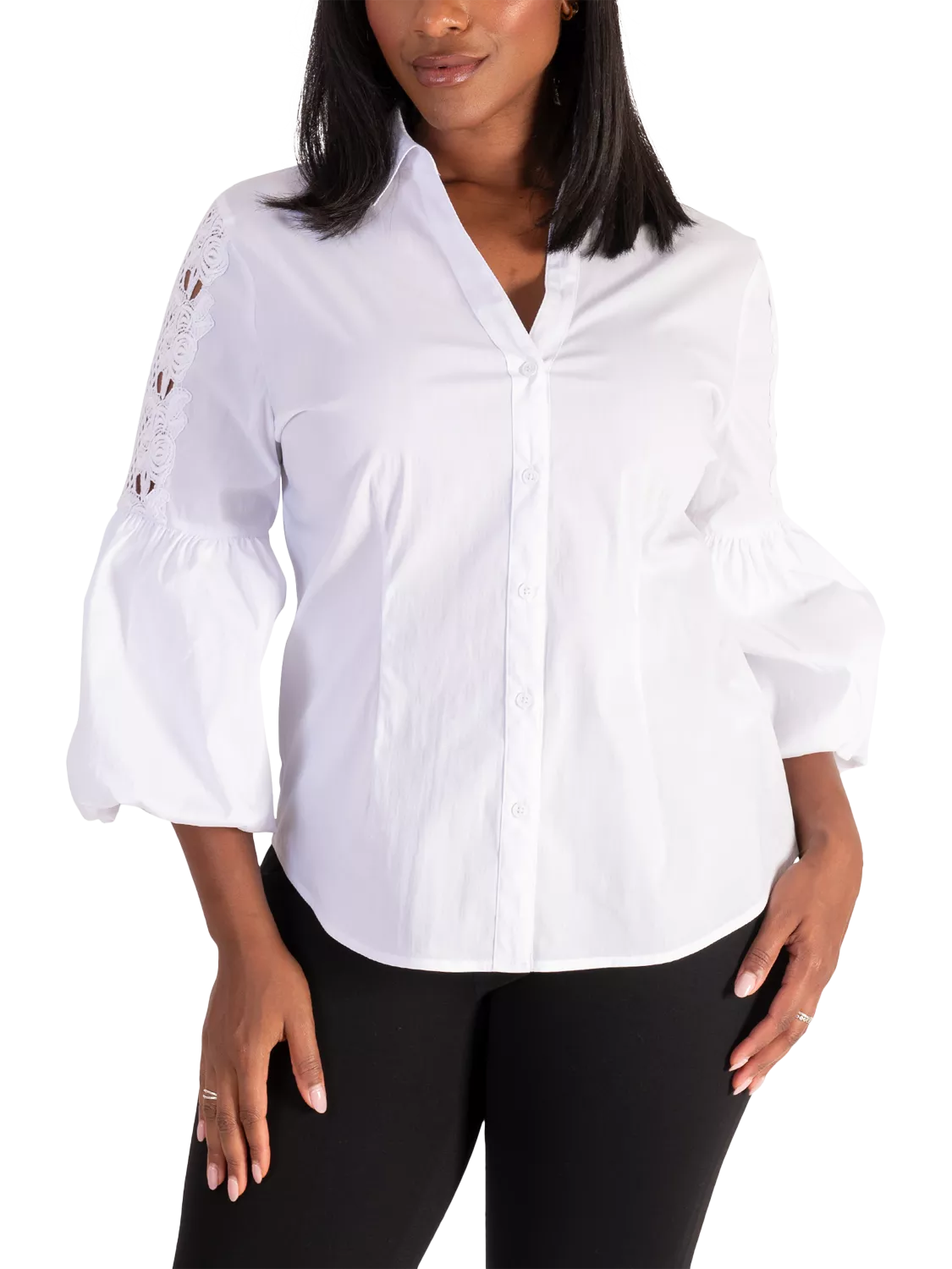 Elevating your everyday, this shirt from chesca is enhanced with dainty lace detailing.