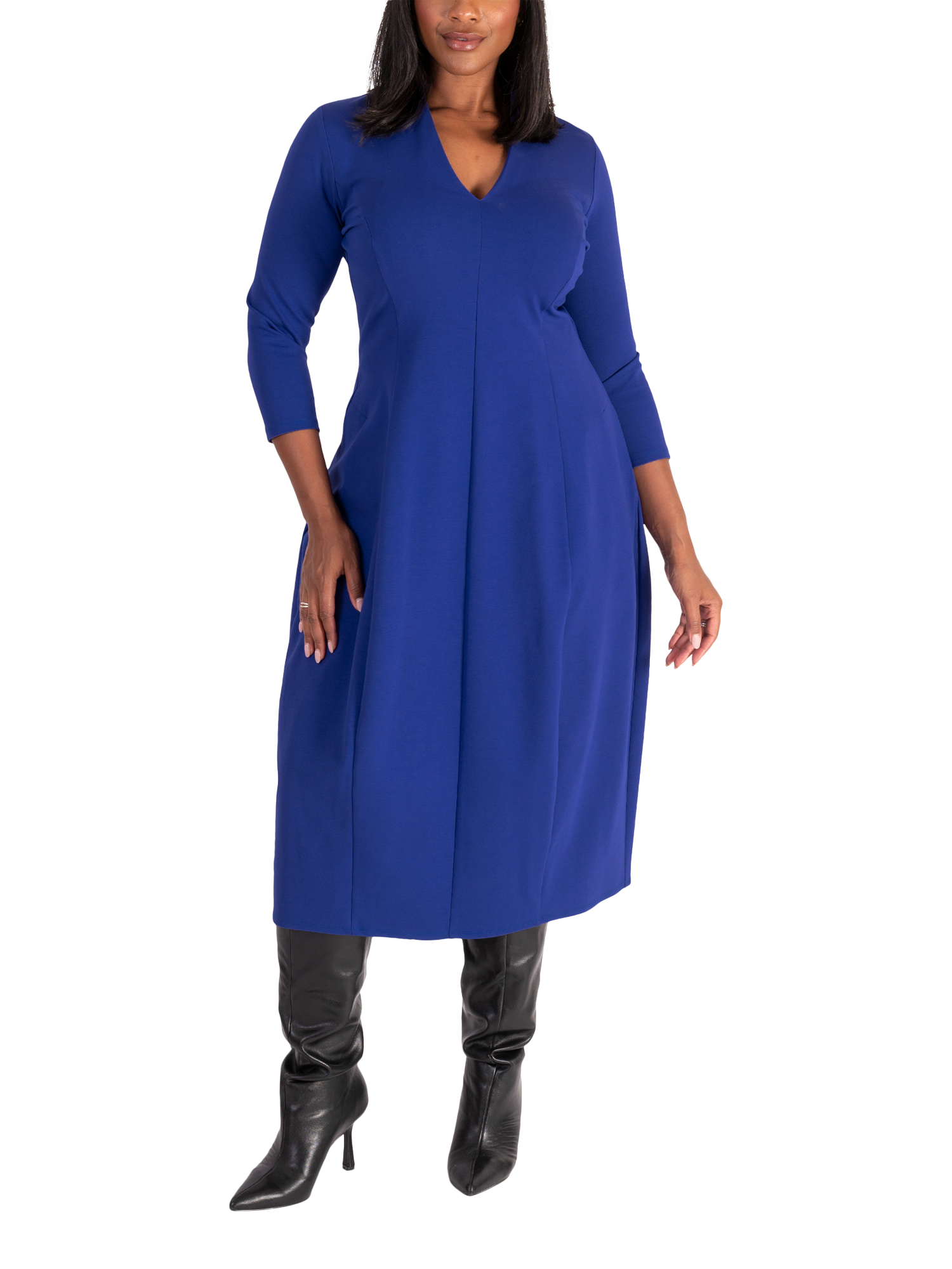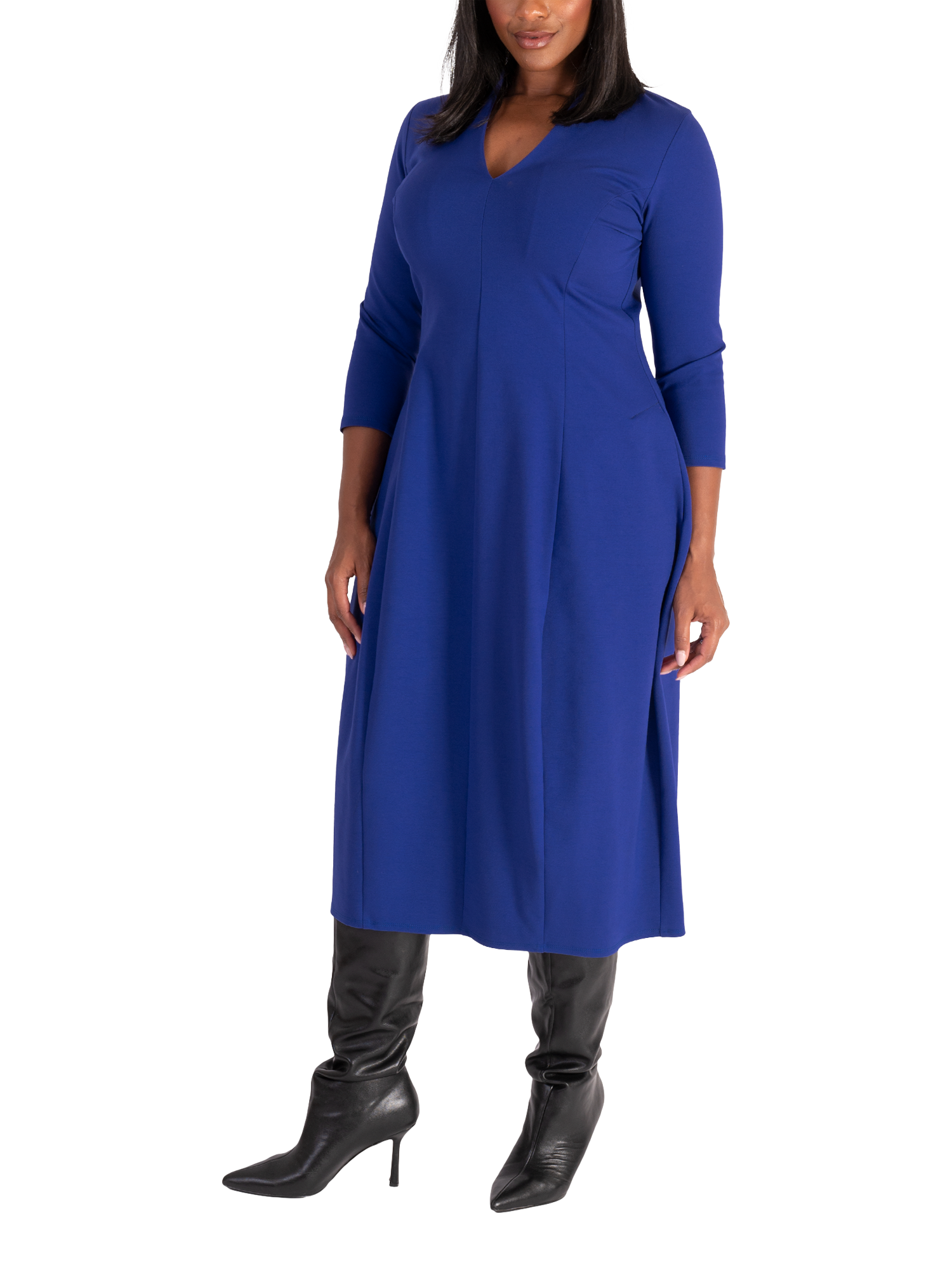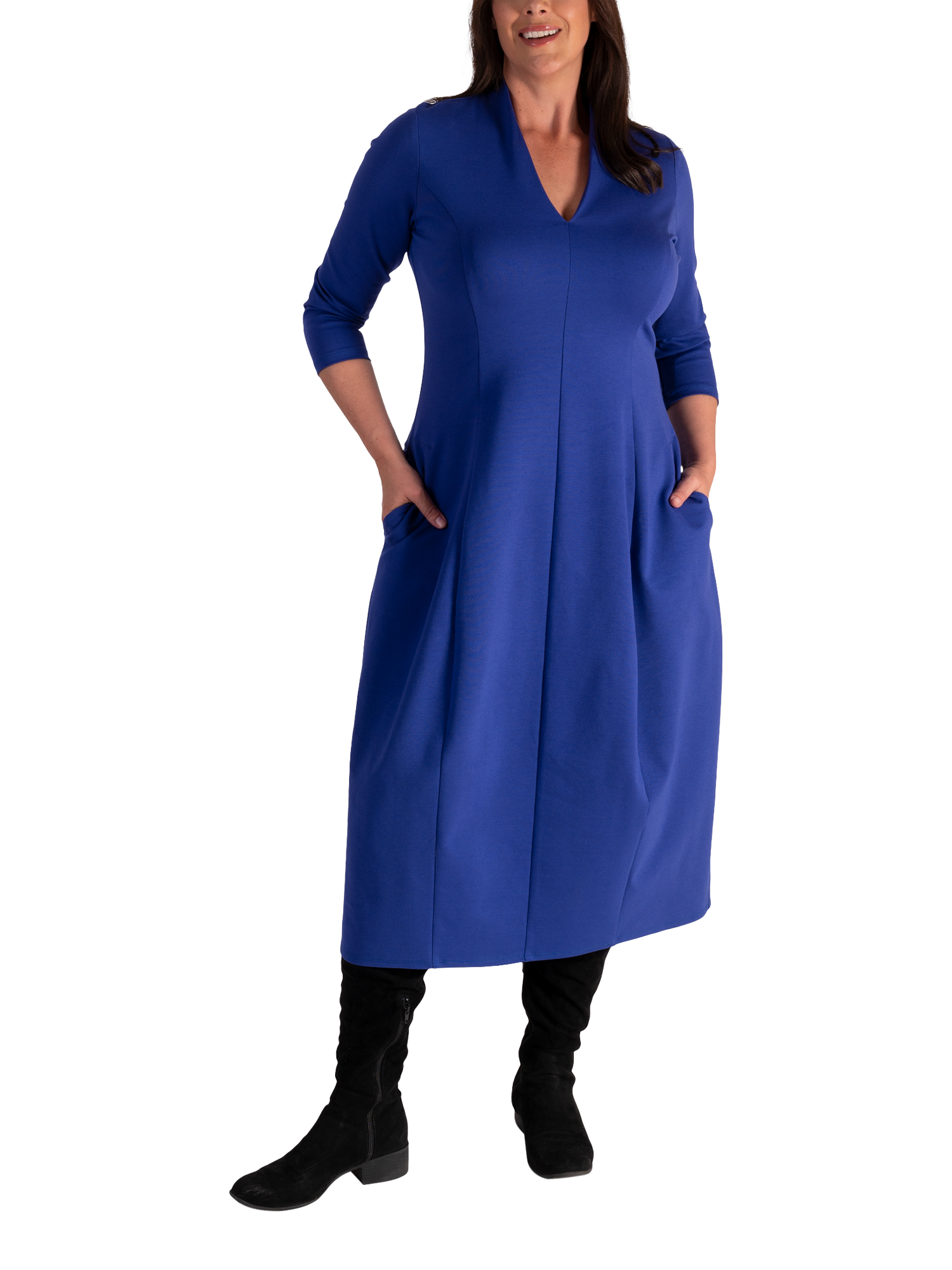 Create a flattering silhouette in this Chesca panelled ponte roma boulle style dress. Designed with a V neckline, three-quarter length sleeves and finished with two side seam pockets and back vent detail, it is a care-free option for desk to dinner dressing. Add a pair of winter boots and you're good to go. With no need for a print, this style is a celebration of minimalism.