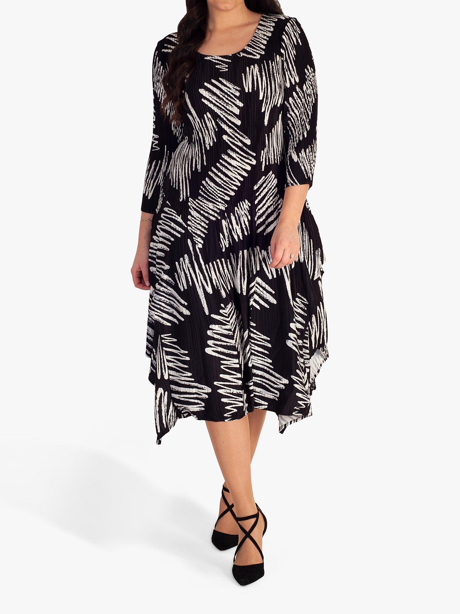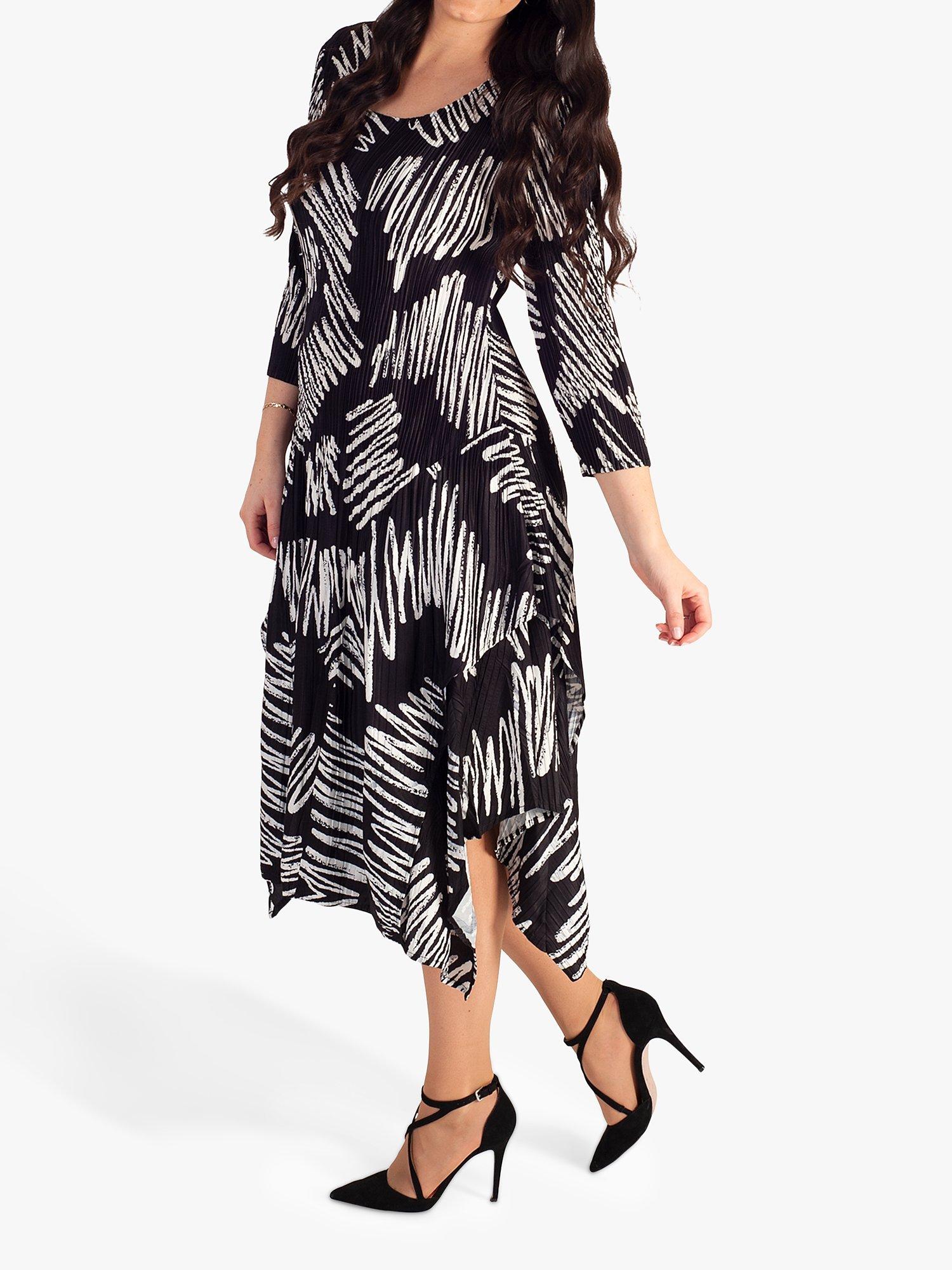 In a flattering A-line shape from plissé-pleated fabric, this midi dress by chesca is detailed with a striking abstract print.