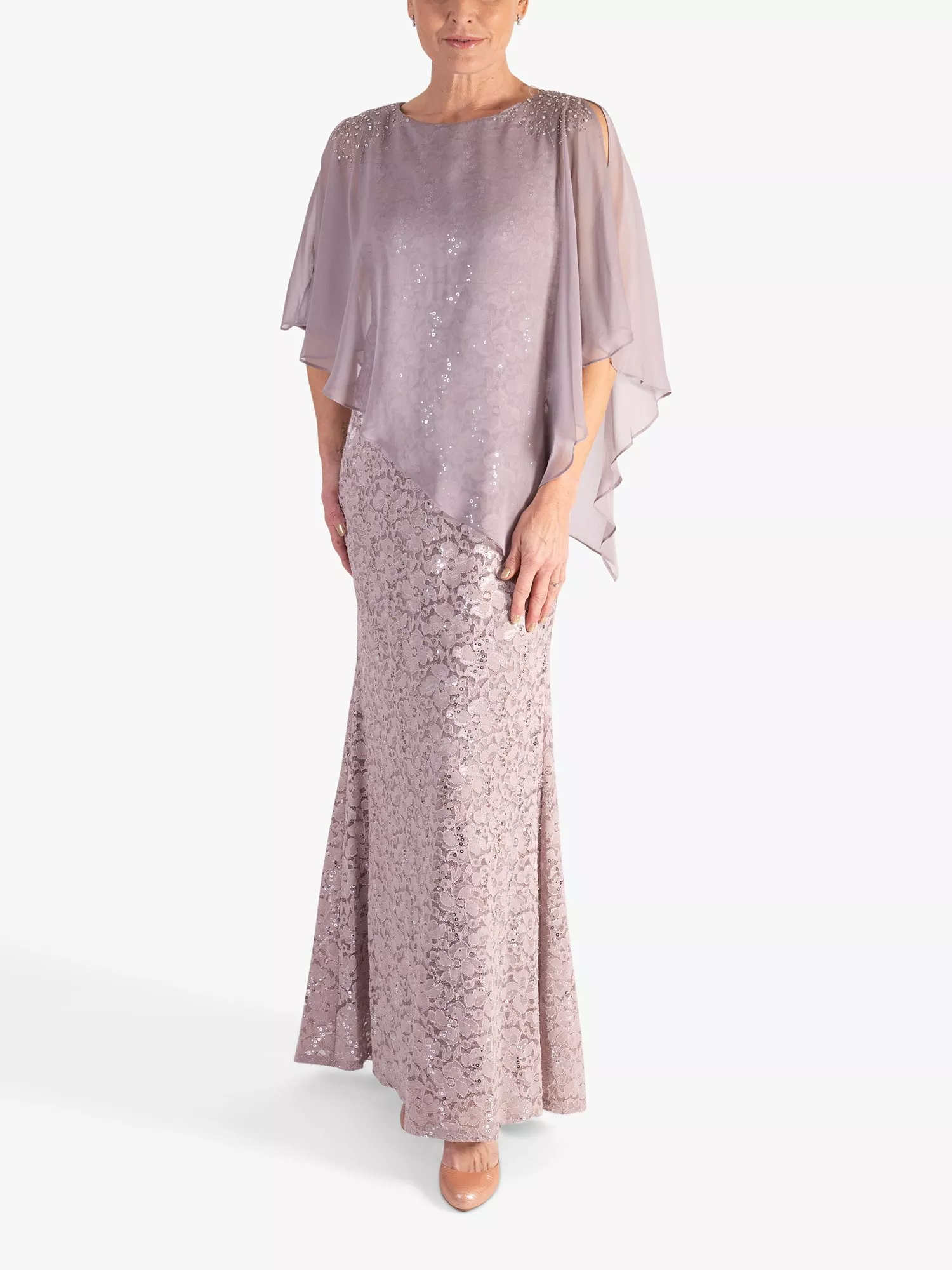 chescaSequin Lace Cape Maxi Dress