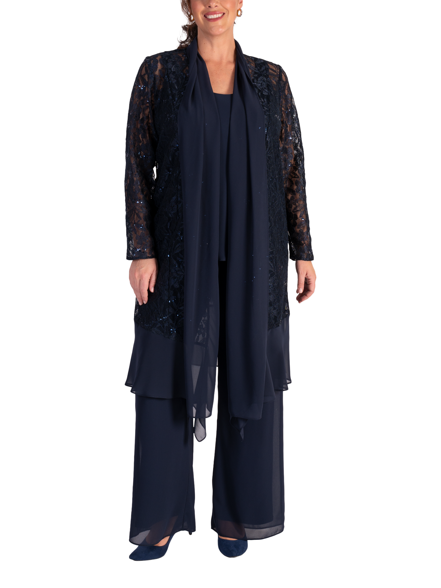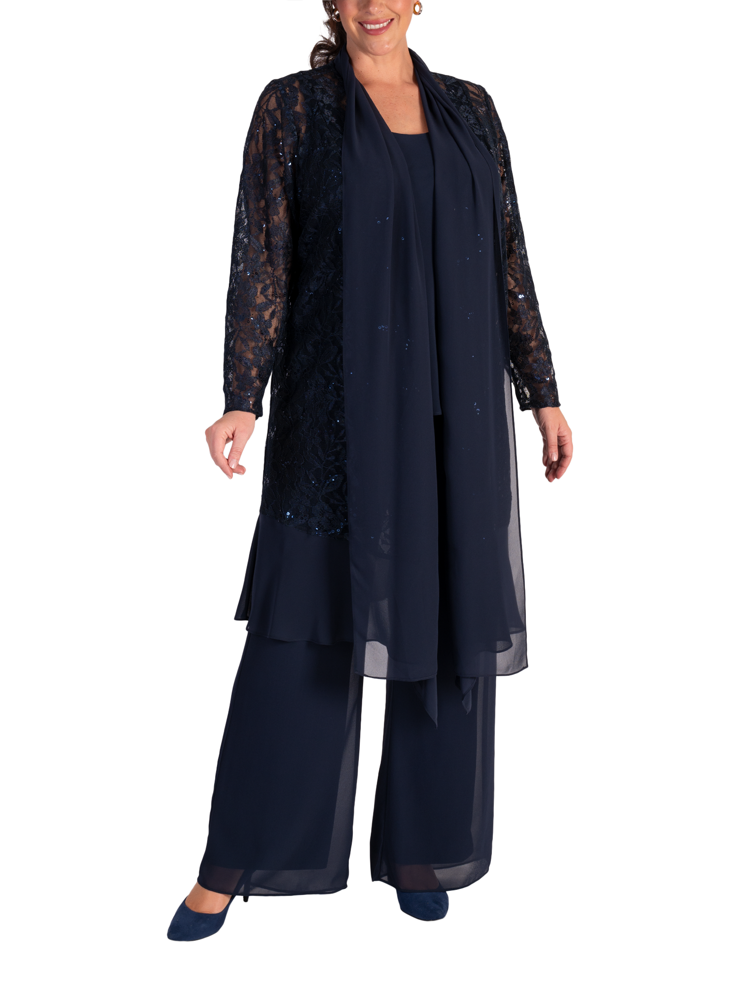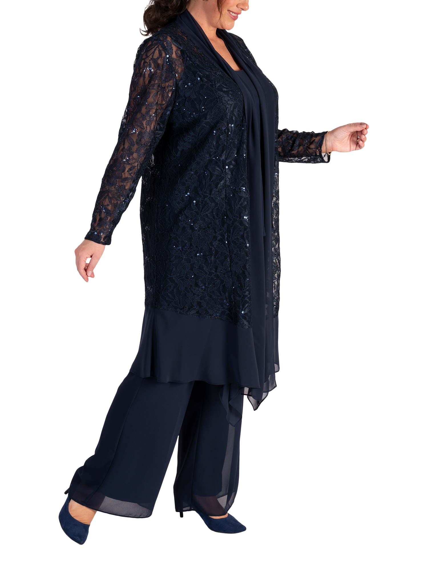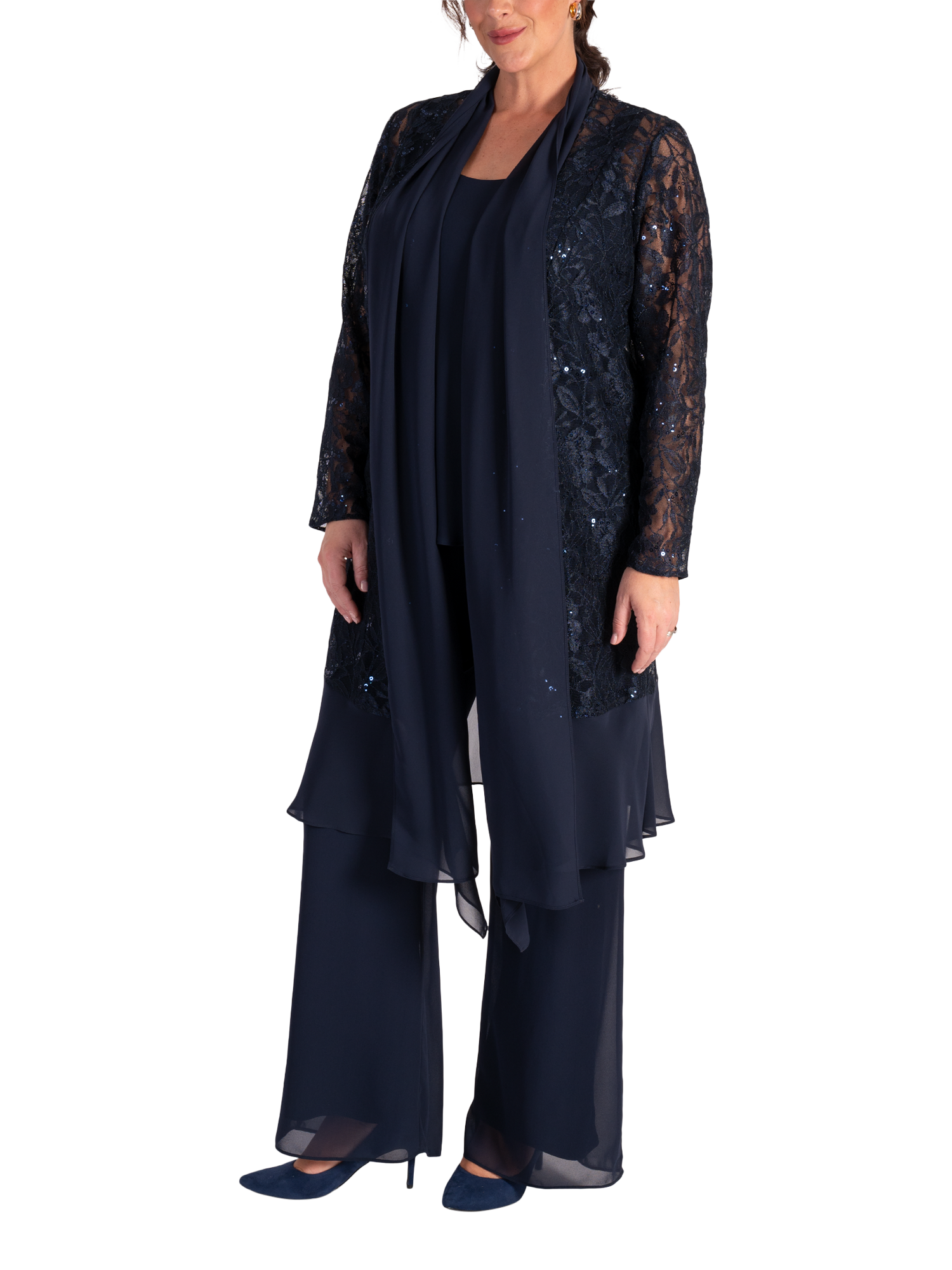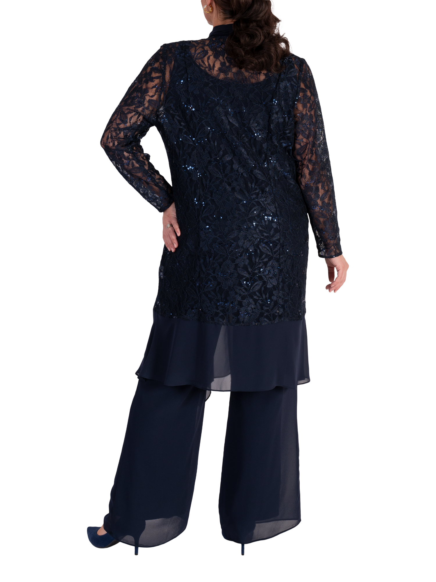 chescaSequin Lace Chiffon Trim Coat, Dark Navy