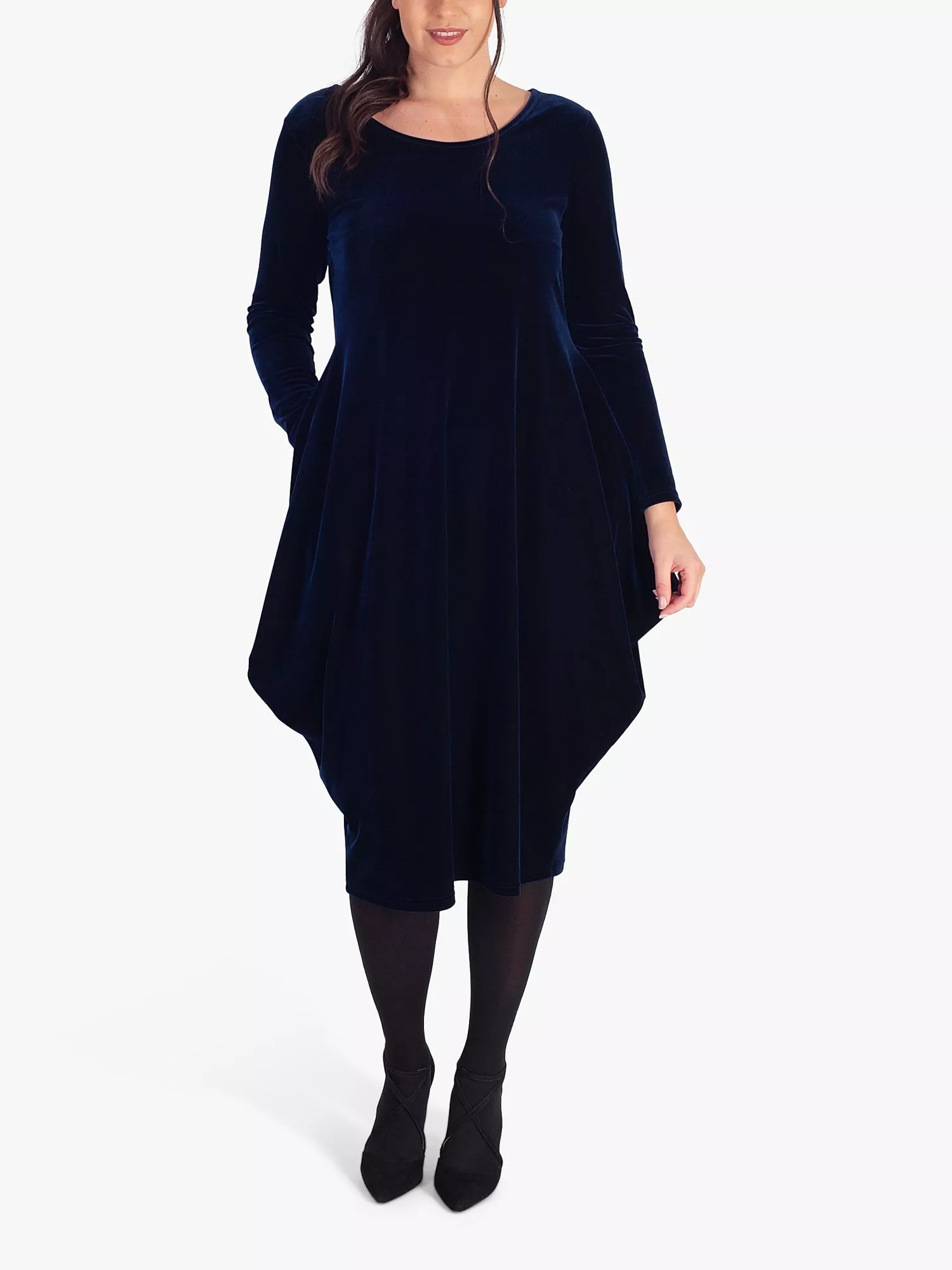 A smart choice in a retro-inspired tulip shape, this mid-length dress from chesca is unabashedly soft in supple velvet. Carved with a round neck and long sleeves, it needs no prints or accents to hold the spotlight.