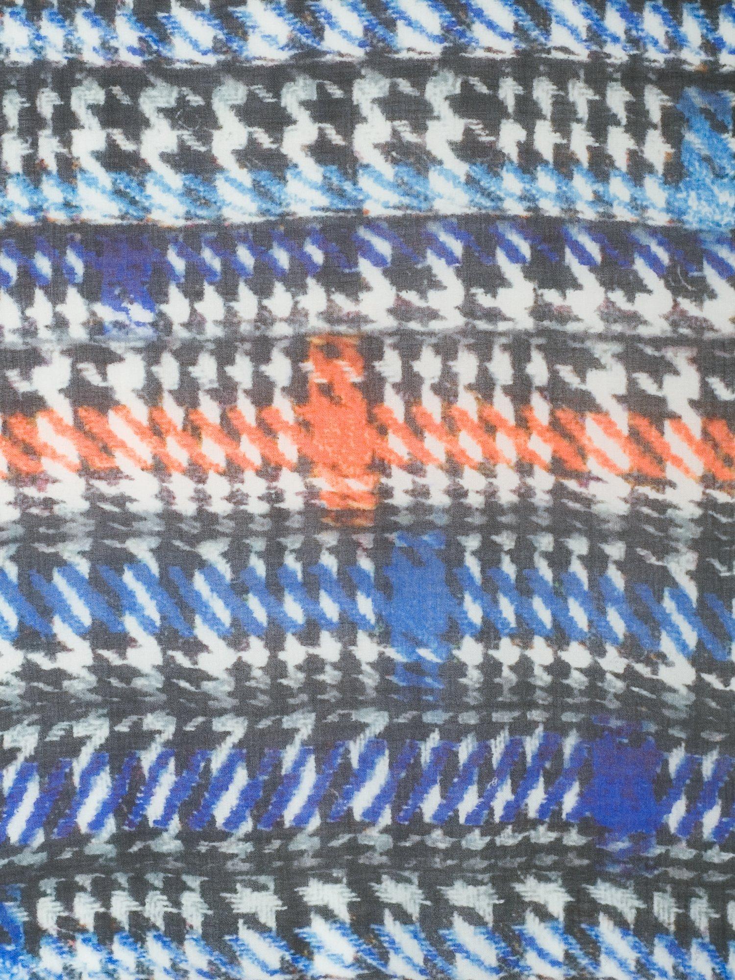 chescaTartan Print Wool Silk Scarf, Cobalt/Orange