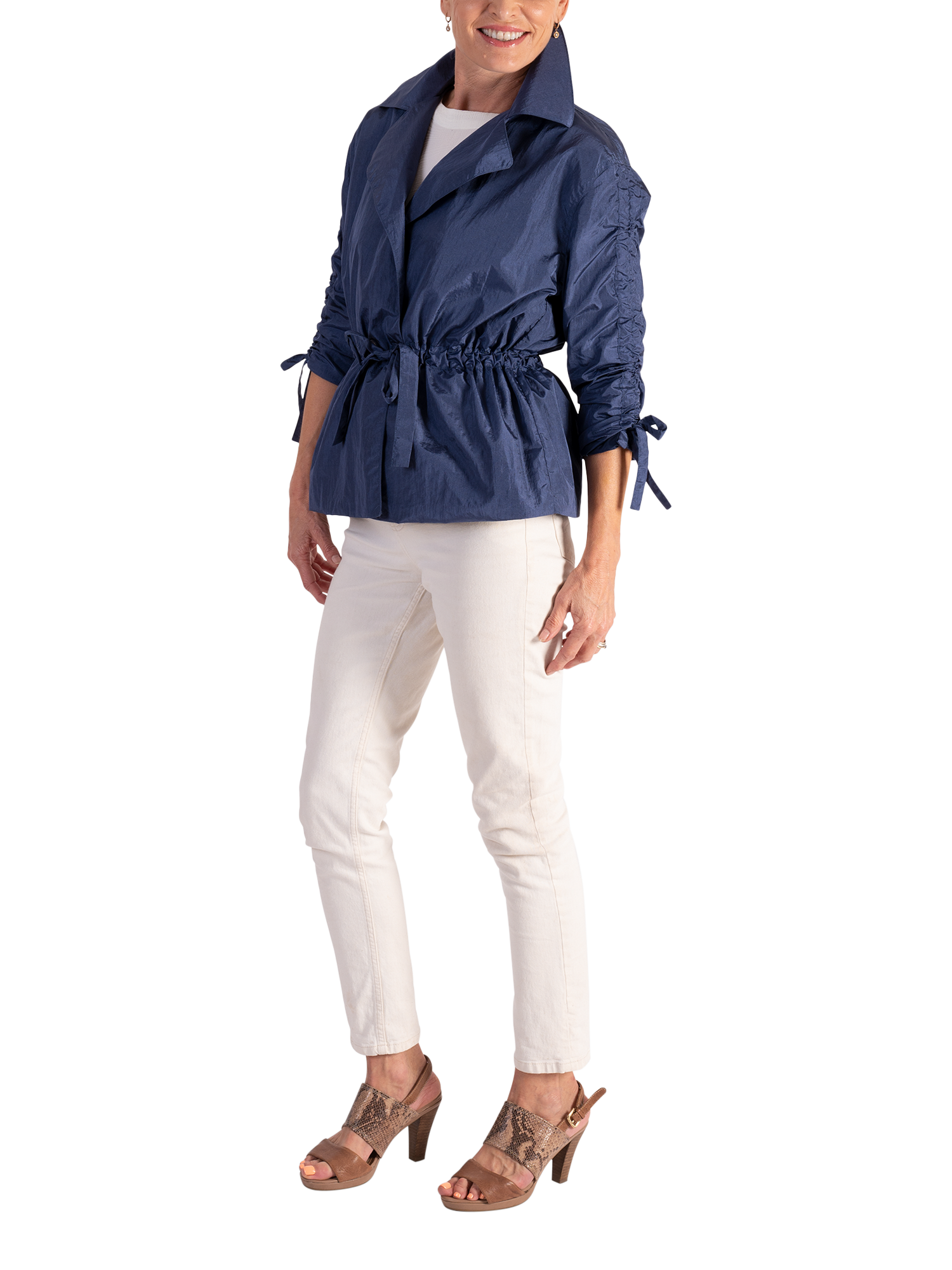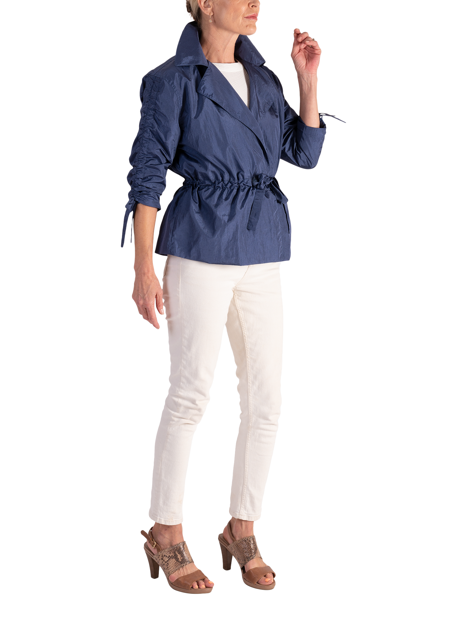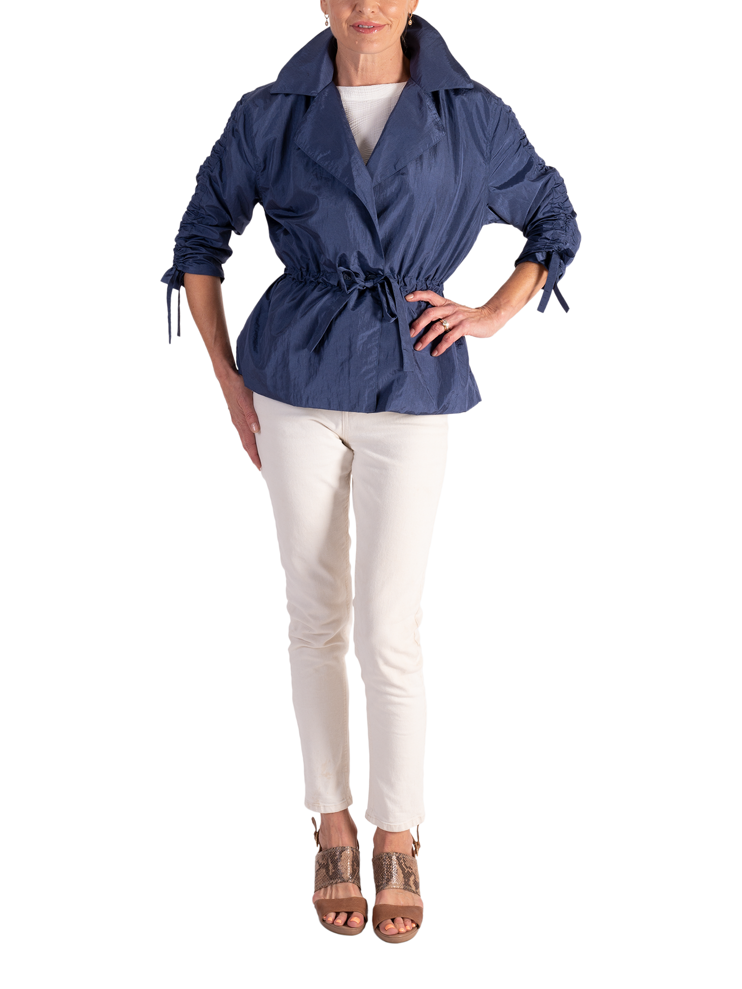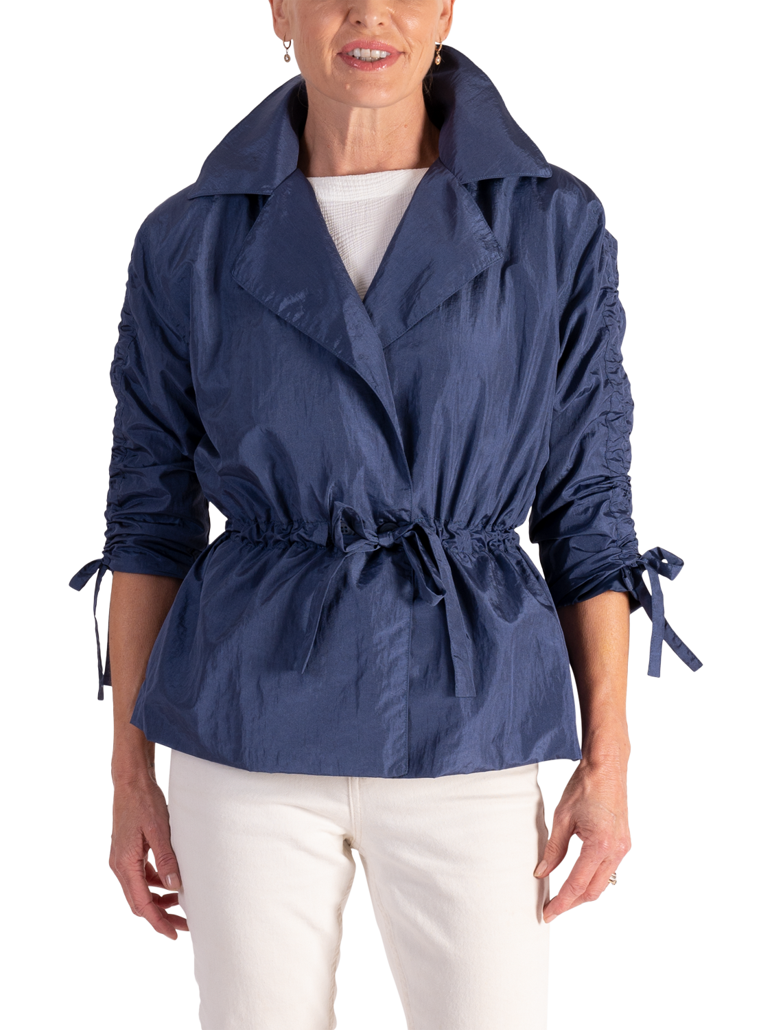 A modern twist on a classic sees this quirky must-have piece instantly transform from stylish little jacket to cute wrap front top. Showcasing statement feminine ruched sleeves and a waist tie that accentuates your figure, this versatile lightweight jacket is perfect for adding a splash of colour and sophistication to your everyday wardrobe and will elevate your look at any occasion.