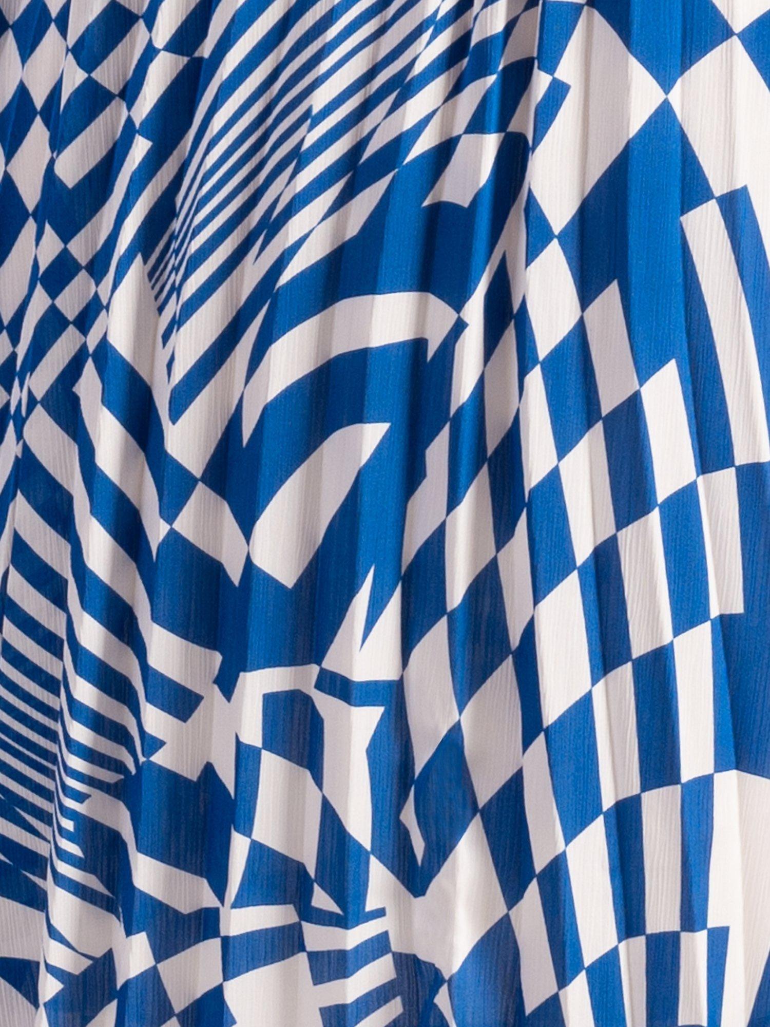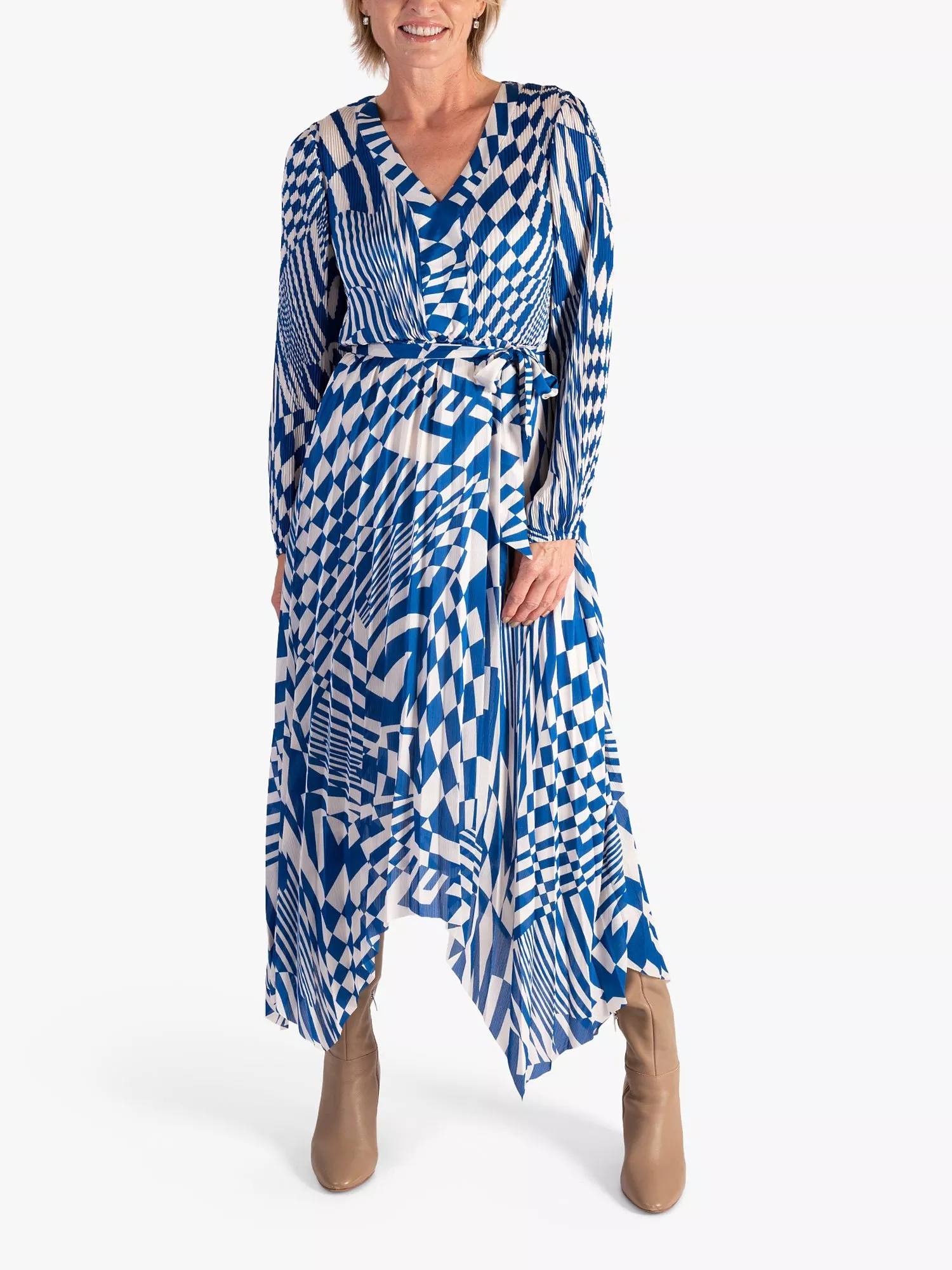 Demonstrating a penchant for pleats, this maxi dress from chesca is made to withstand plenty of wear (and washing for that matter). With a fuss-free but smart v-neckline and full-length sleeves, this style is characterised by a geometric print that looks befitting to be hung in a gallery.