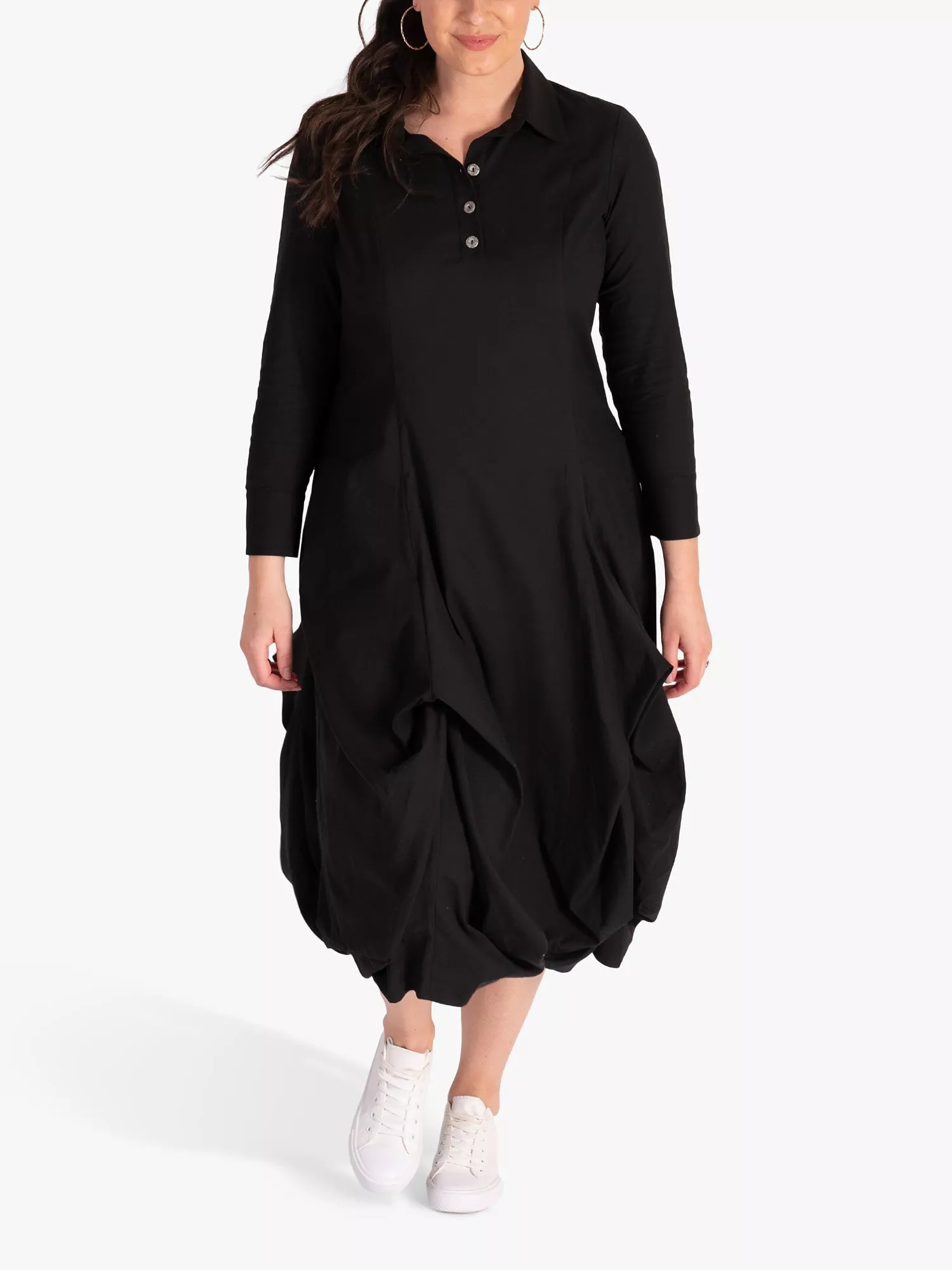 In an easy to wear A-line shape, this mid-length dress from chesca is blended with cotton. Topped with a collar and long sleeves, it needs no prints or accents to hold the spotlight.