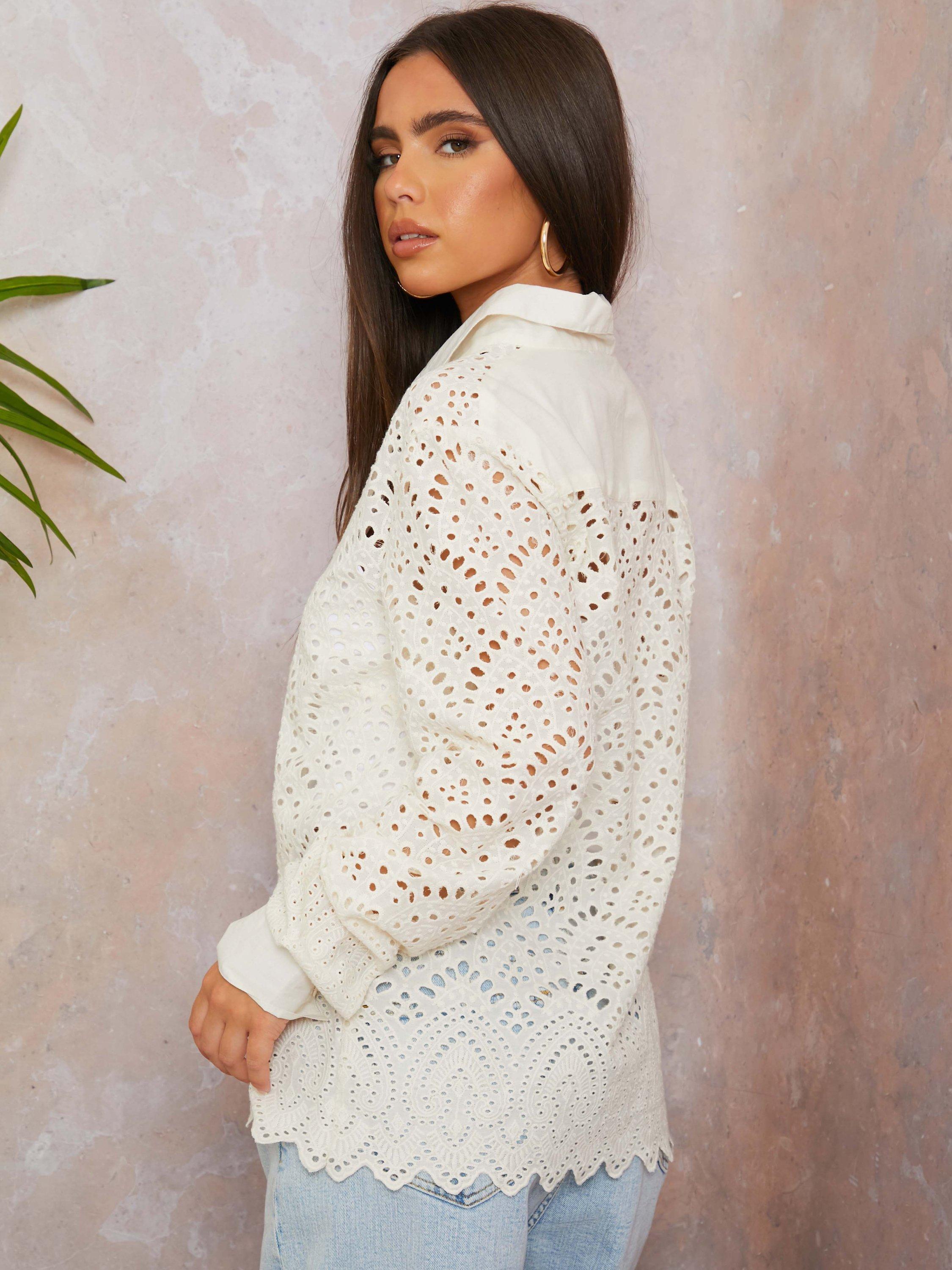 Refreshing your roster, this cutwork shirt from Chi Chi London is enhanced with dainty lace detailing.