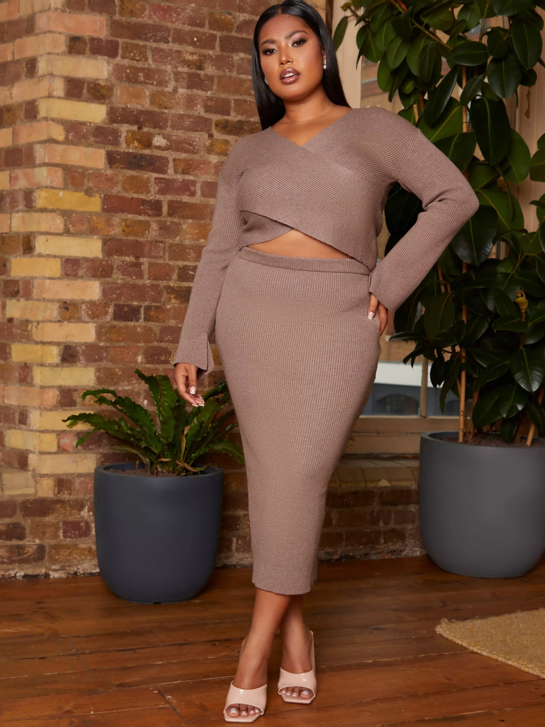 Chi Chi LondonPlus Wrap Knit Top, Brown