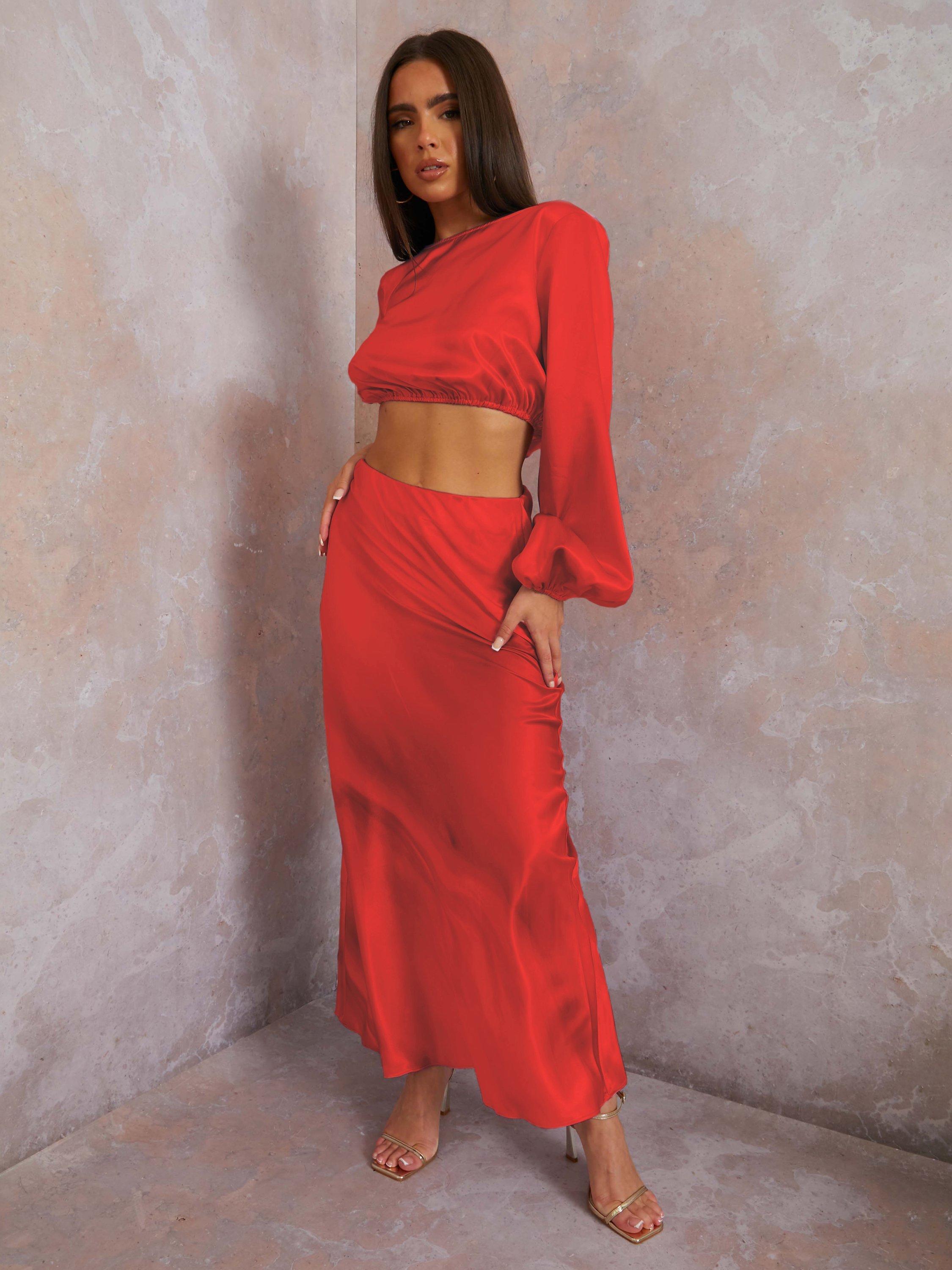 Made from satin and designed with statement balloon full-length sleeves, this crop top from Chi Chi London - when paired with the matching skirt - will see you through a night on the dance floor.