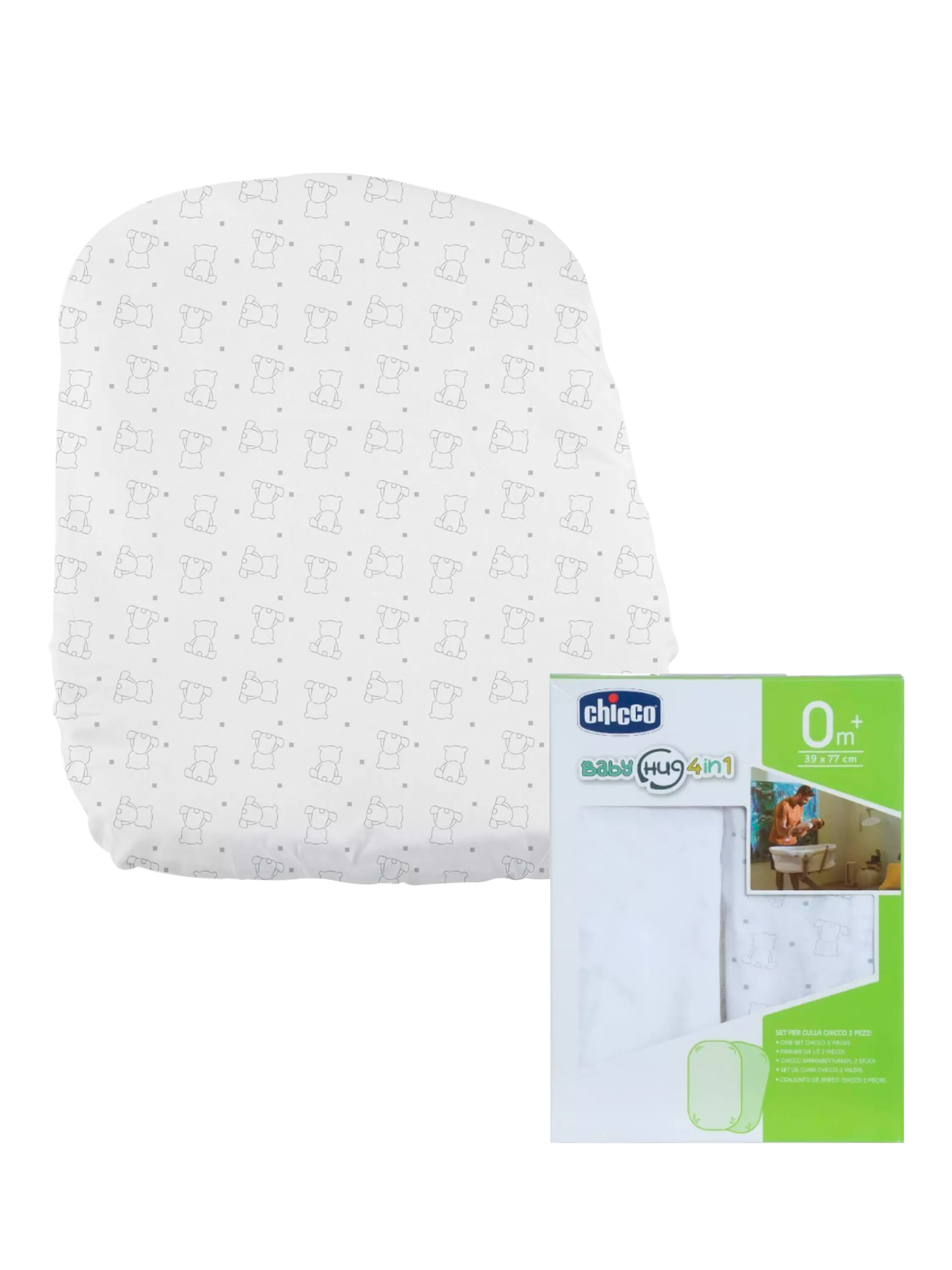 ChiccoBaby Hug Crib Fitted Sheets, Pack of 2, Grey