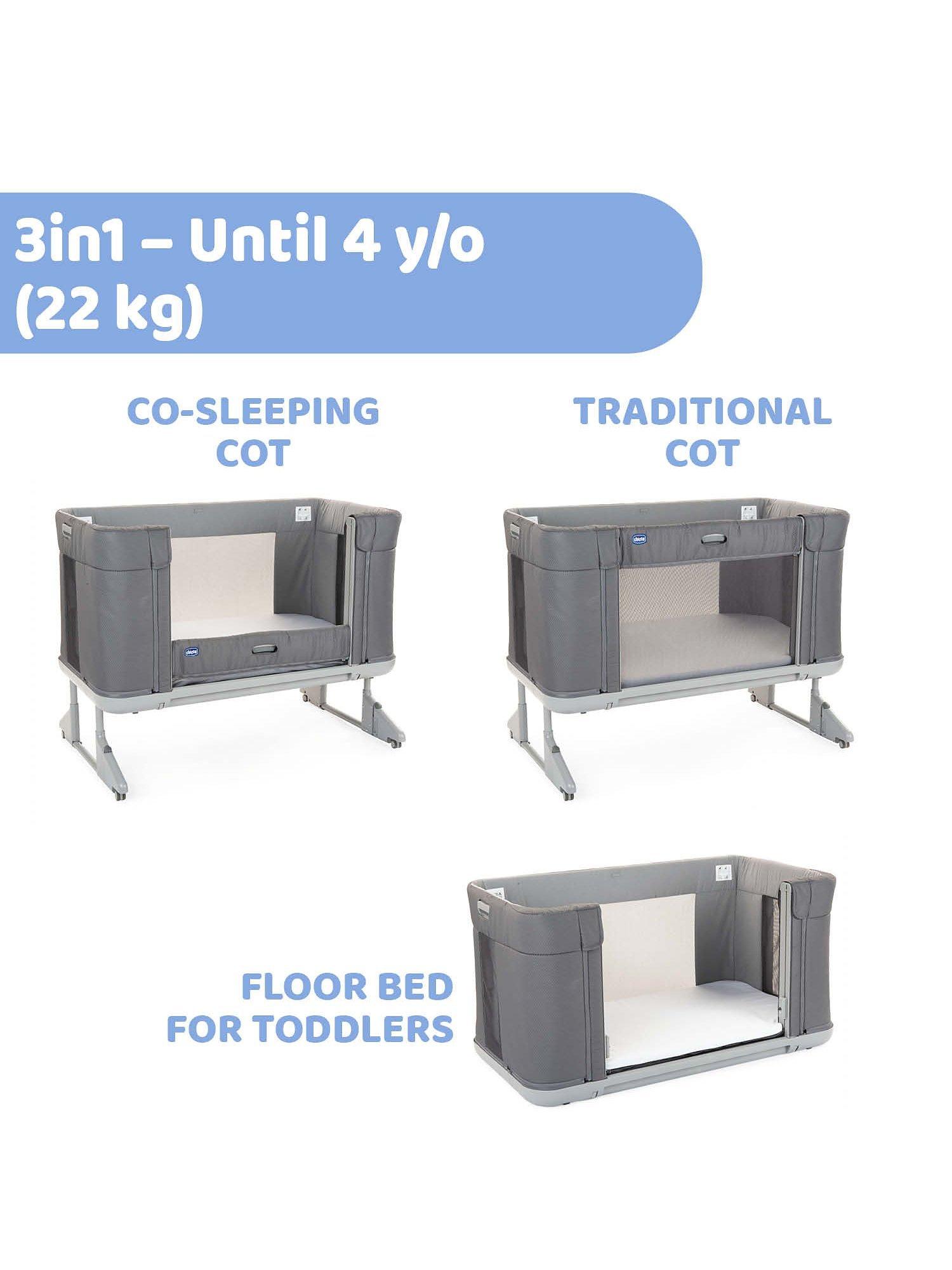 Taking the convenience of bedside sleeping and combining it with the longevity of traditional cots, this Next2Me Forever from Chicco is the ultimate 3-in-1 sleep solution. In just one product parents can find 3 different functionalities: side-sleeping cot, traditional cot and floor bed for toddlers.
