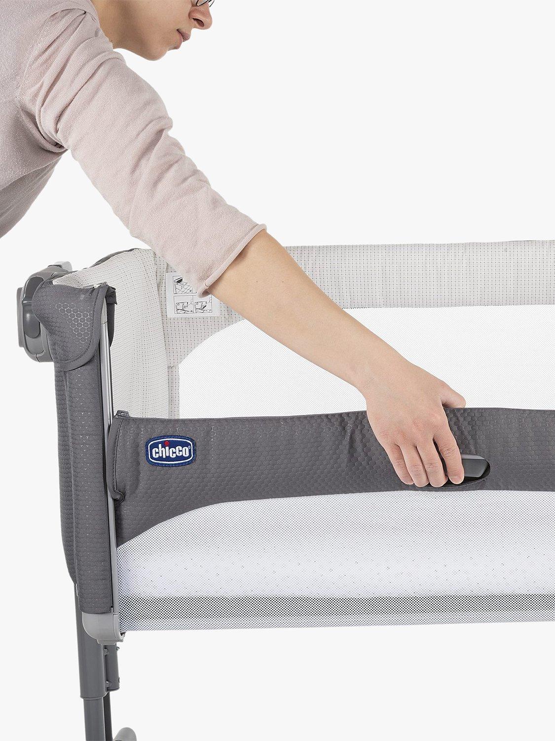 With an improved one-handed slide opening at the side panel, it is now even easier to reach your little one during the night to soothe them. The Chicco Next2Me Magic also features an upgraded manual rocking system that can be engaged in free standing mode by engaging two buttons for enhanced safety. With 11 height adjustments and retractable telescopic feet, the Next2Me Magic adapts to suit any bed, whilst the height adjustment also means it can be set at an incline to support with reflux and congestion.