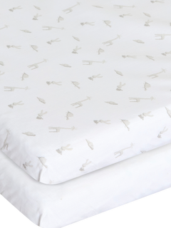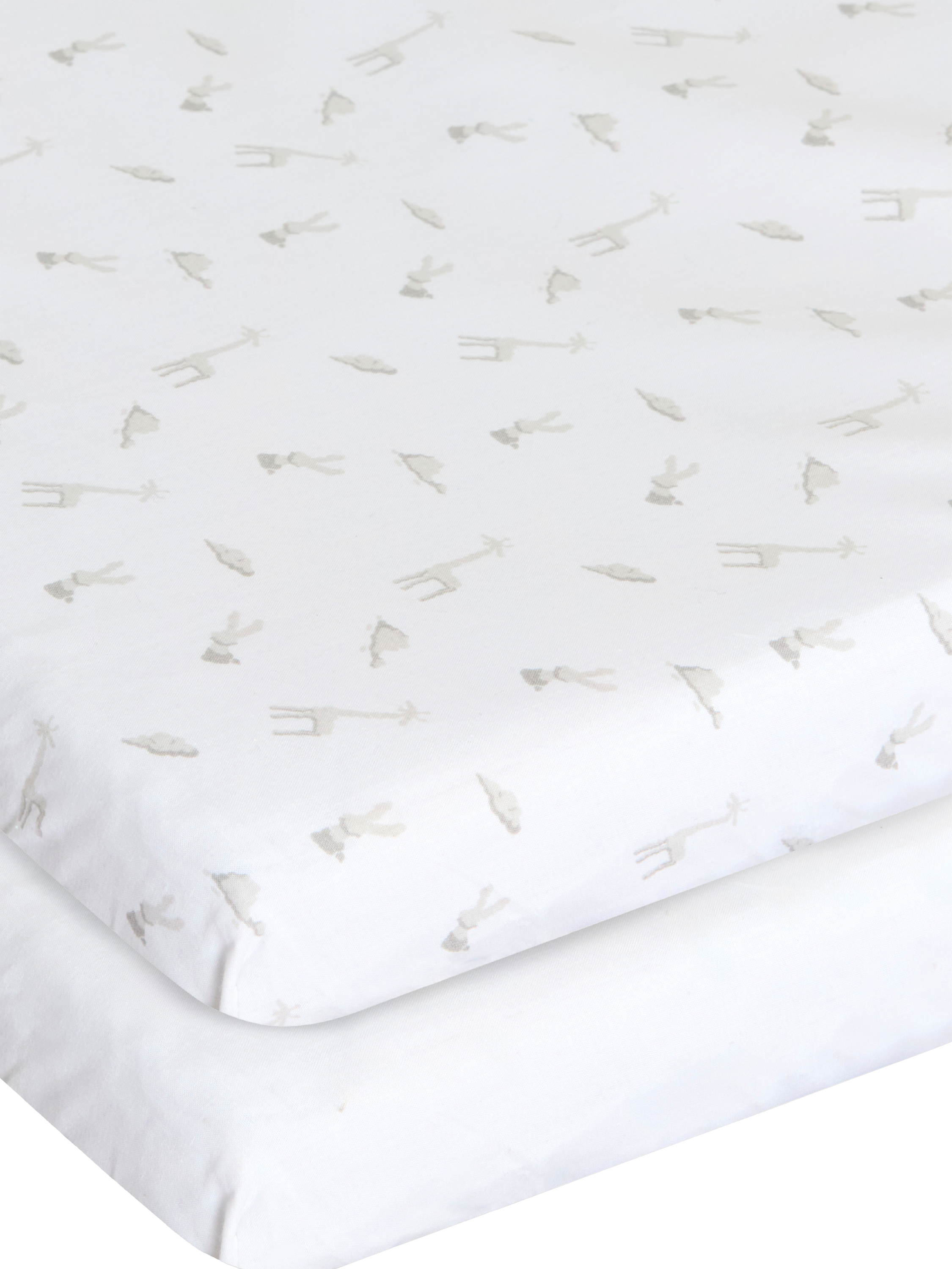 These Chicco Next2Me Forever fitted sheets are the only original and official ones from Chicco that fit the Next2Me Forever Cot. They're made from 100% cotton, which naturally aids temperature regulation, helping keep your little one’s sleep surface cool and hygienic. Pack of two with one plain and one animal motif print.