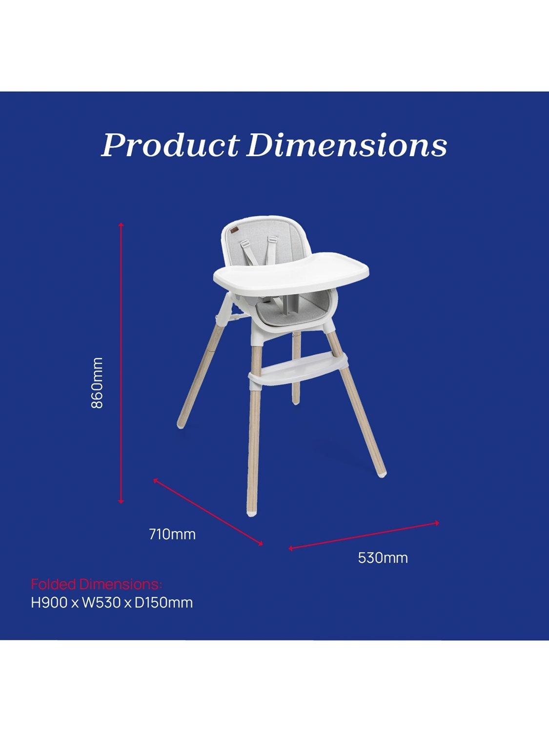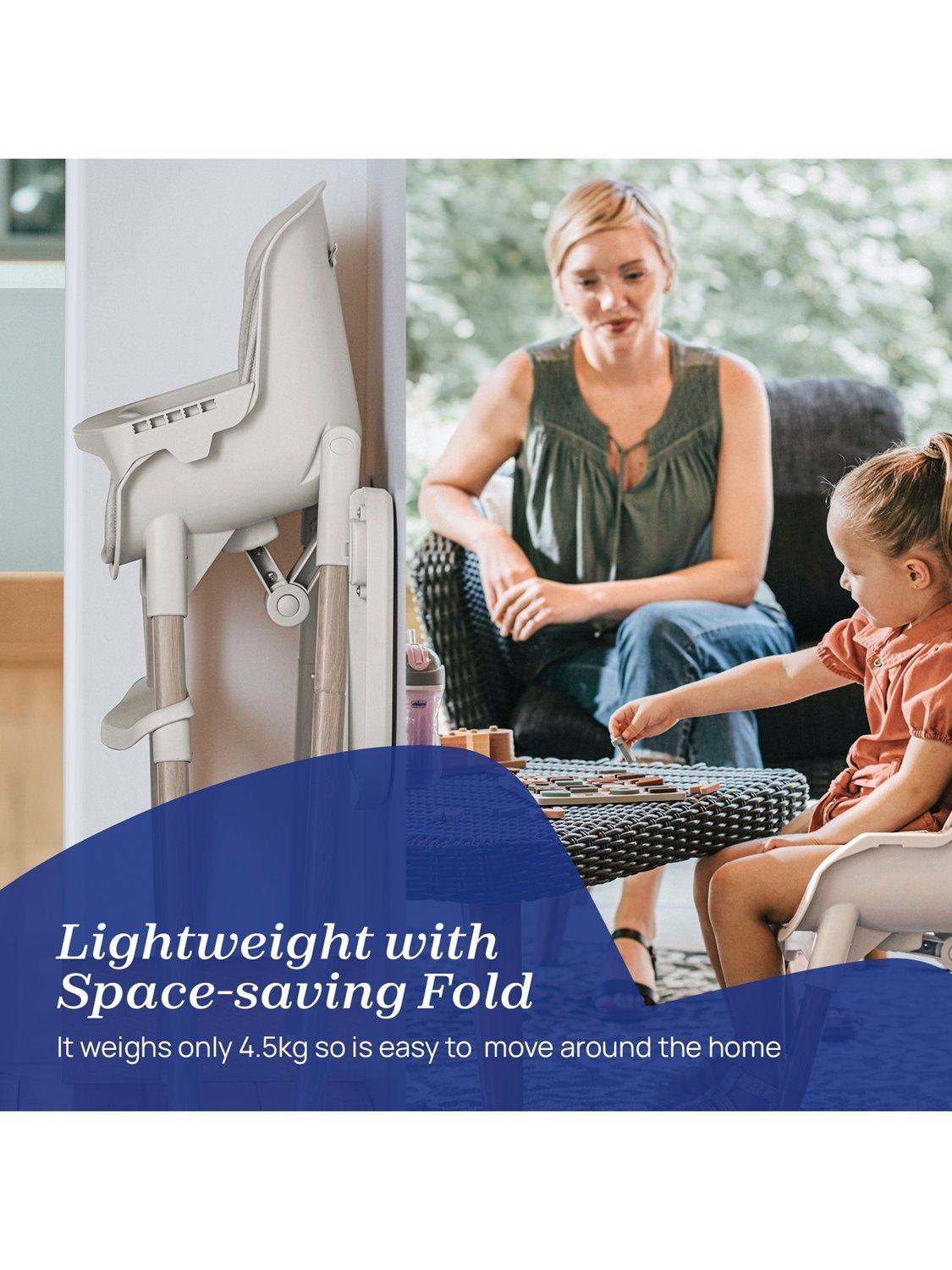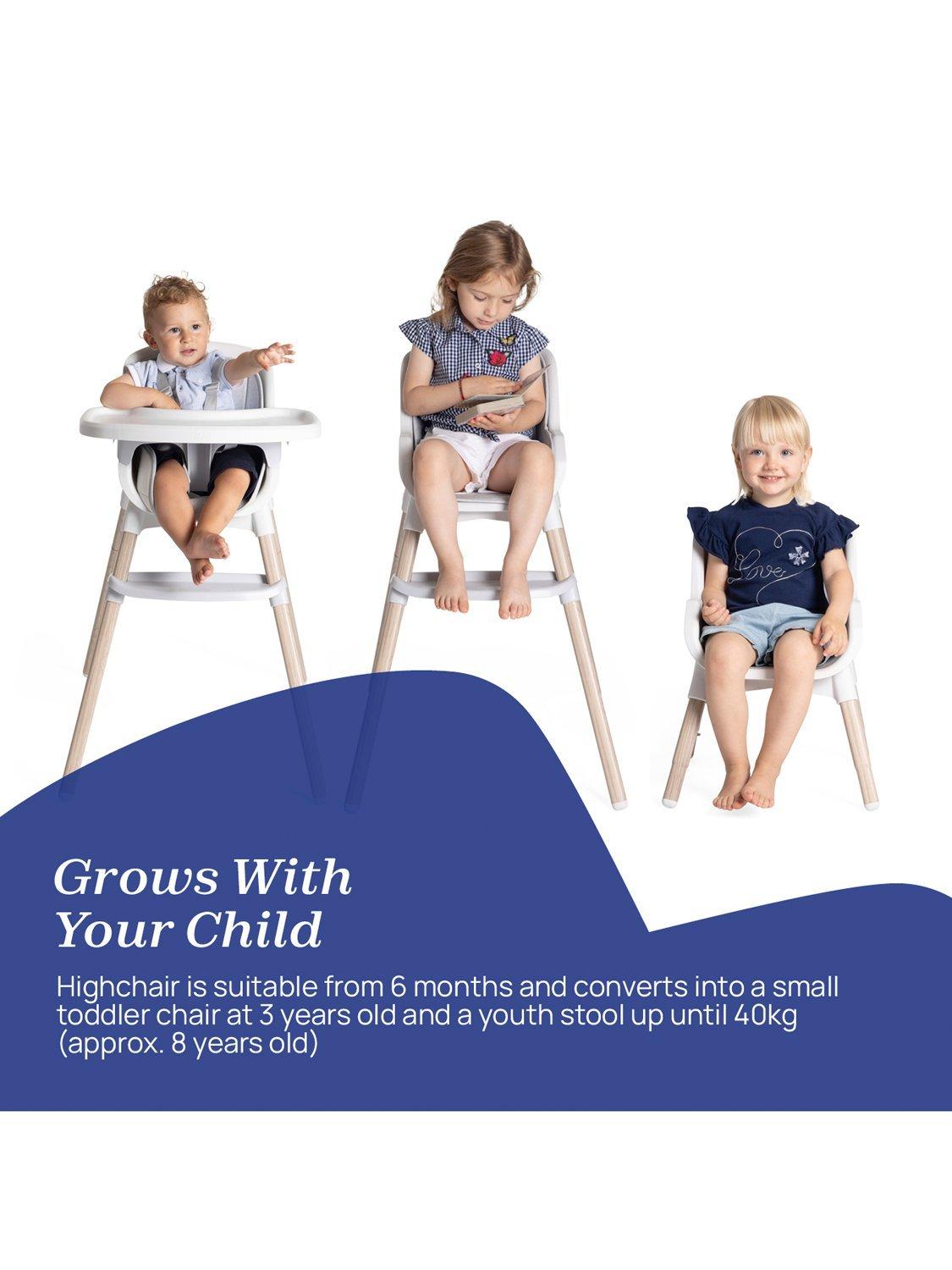 This 3-in-1 multi-functional highchair is suitable from 6 months and converts into a small toddler chair at 3 years old, and then a youth stool up until 40kg (approximately 8 years old). Ultra-light and compact at only 4.5kg, it's easy to move around the kitchen. And when not in use, it folds compactly and features space-saving tray storage on the rear of the legs. With minimalist design and smooth lines, the one-piece seat shell is a breeze to clean. Plus, the seat insert is removable and washable.
