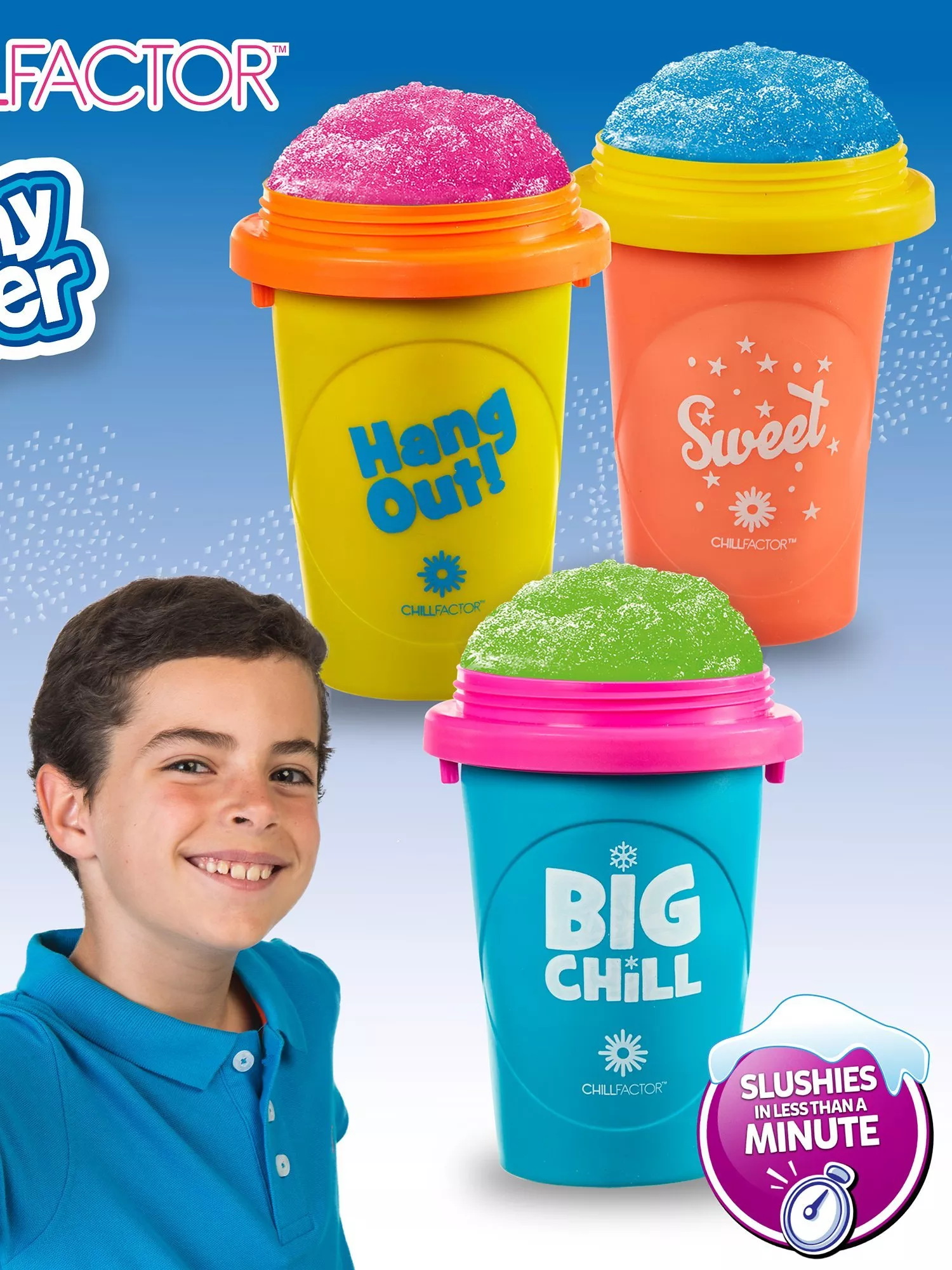 The ChillFactor Slushy Maker allows you to make delicious slushies' in seconds! No ice, no blenders, no mess!