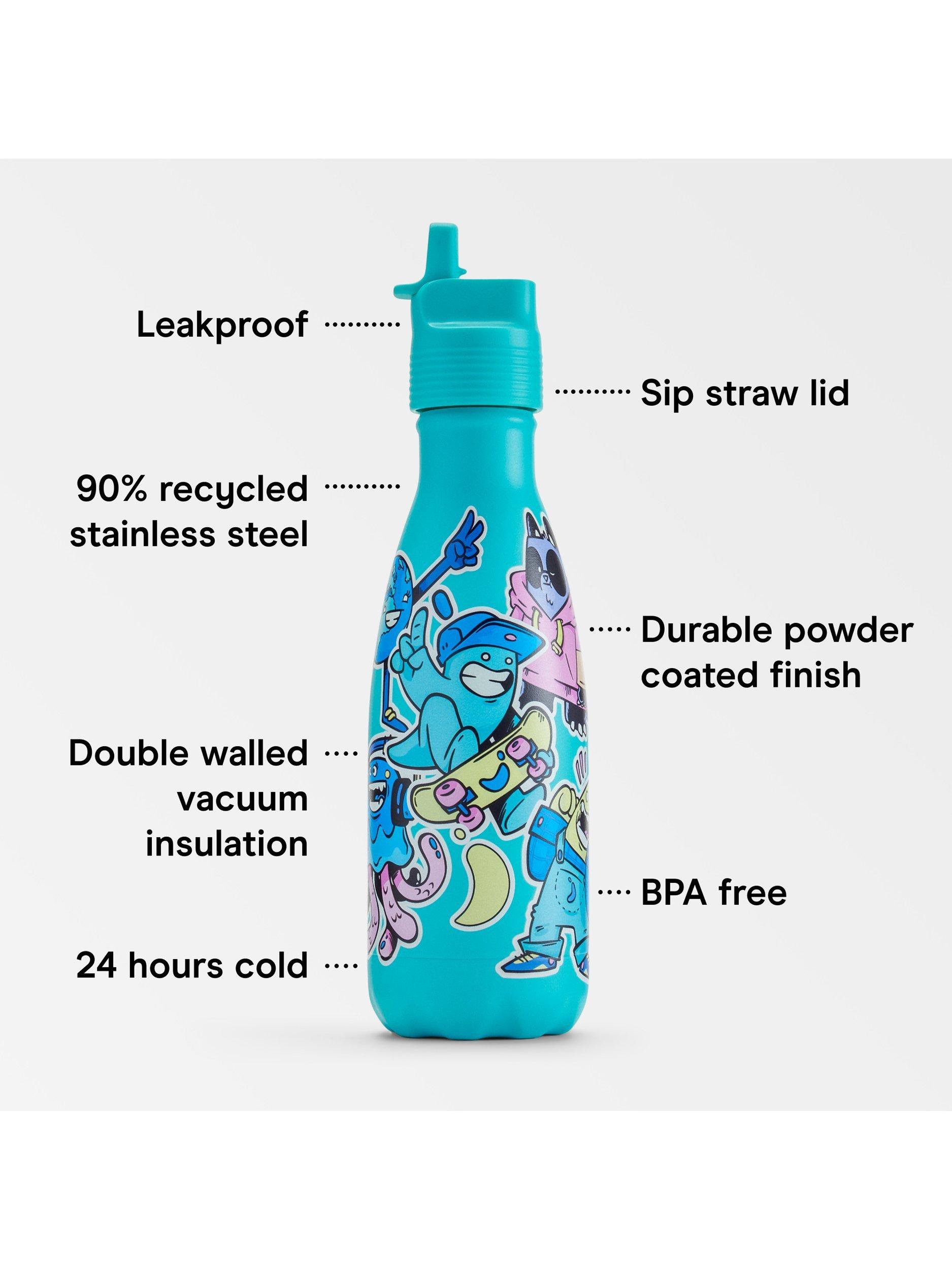Packed with features they'll find useful in the classroom and beyond, this bottle is leak-proof, has a covered straw lid, vacuum insulation to keep water cold all day and a hard-wearing powder-coated finish. Made with 90% recycled stainless steel, it's completely BPA-free.