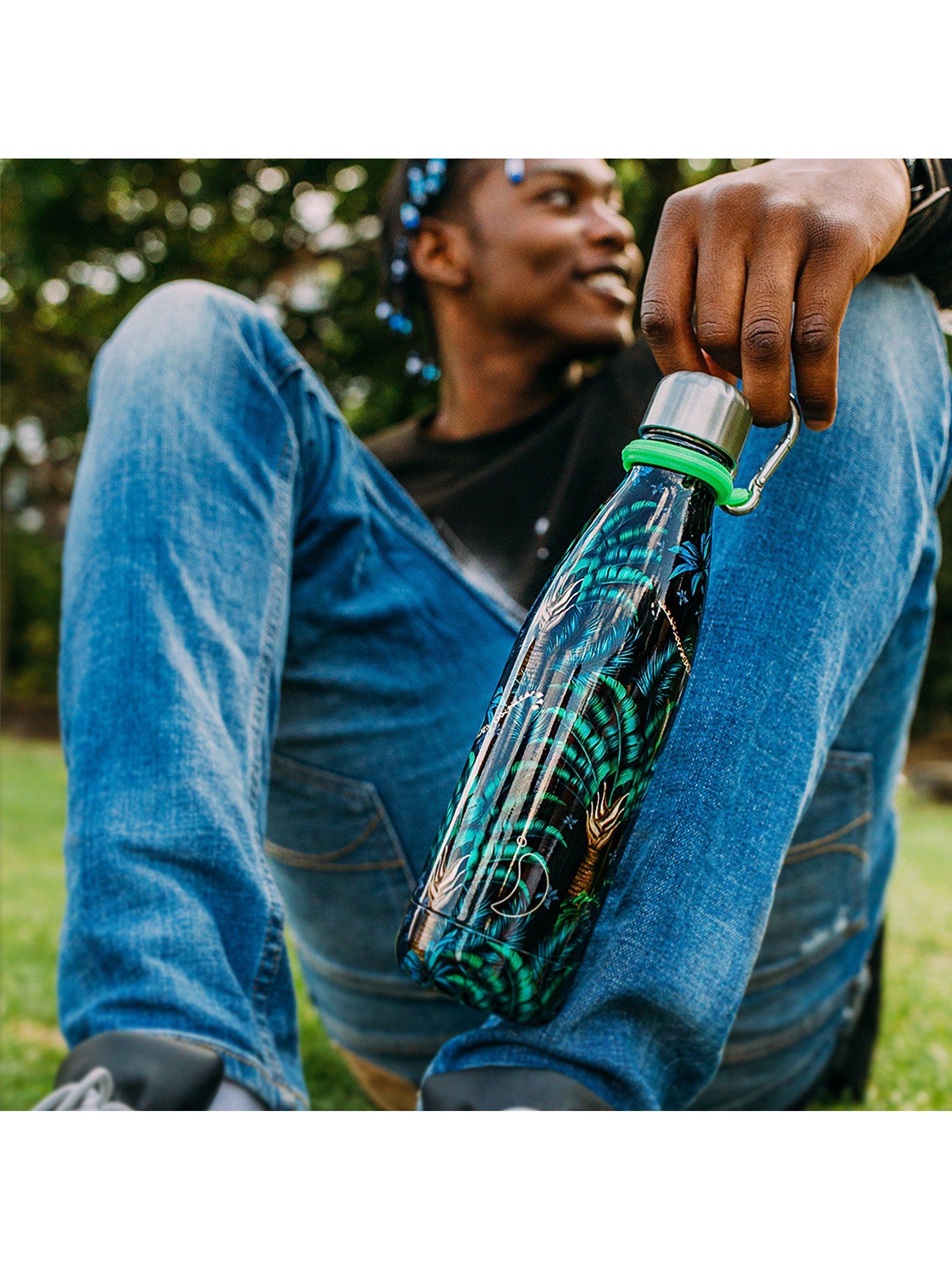 A leopard prowls through the jungle on this Chilly's design. This water bottle uses advanced double-wall vacuum technology to keep drinks cold for up to 24 hours or hot for 12 hours.