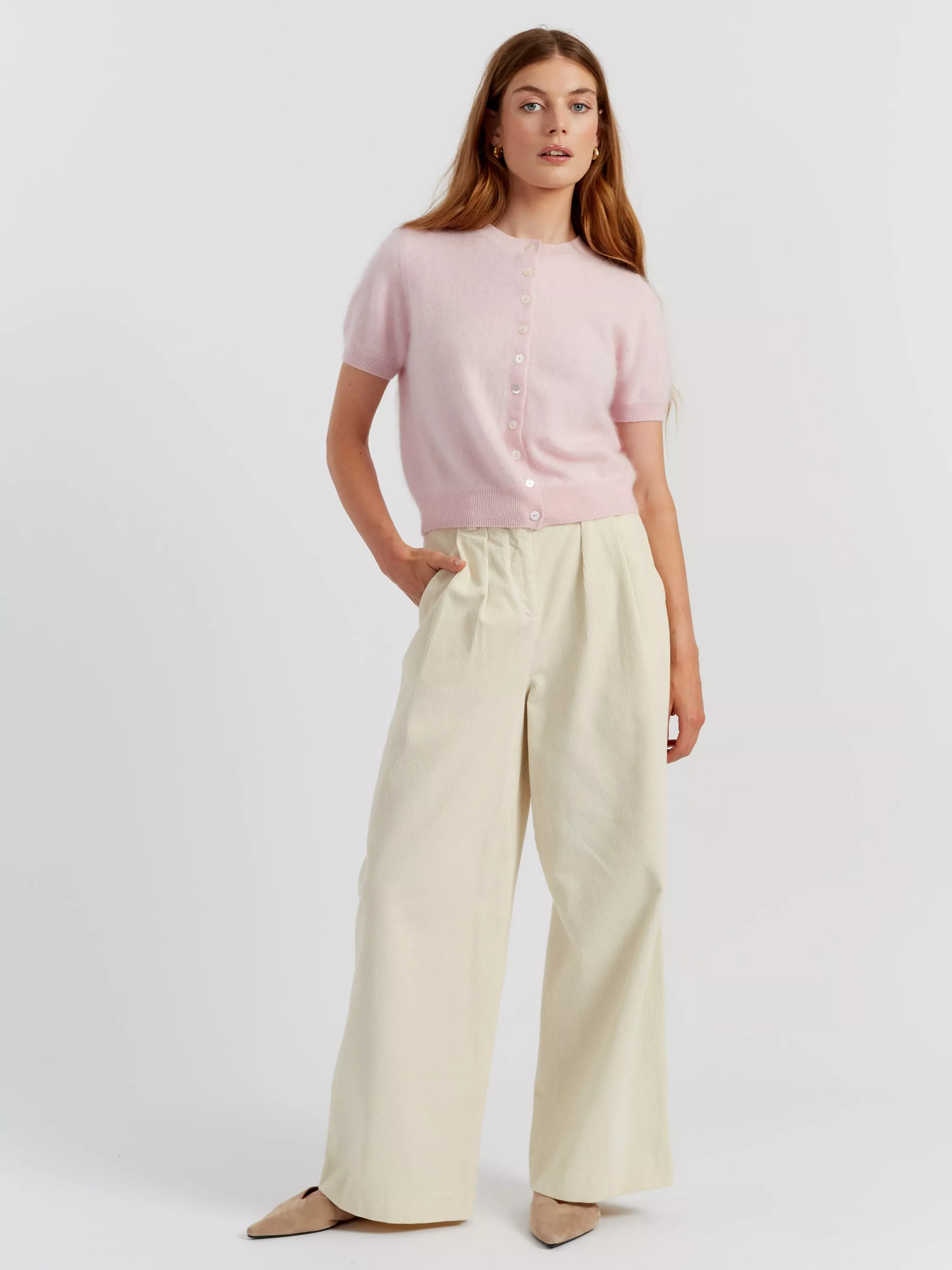 A fresh twist on a classic tee. This short-sleeved style is crafted from pure brushed cashmere for a soft, featherlight feel. Finished with a button-down front and ribbed trims, it’s a polished yet effortless piece that pairs perfectly with relaxed trousers or skirts.