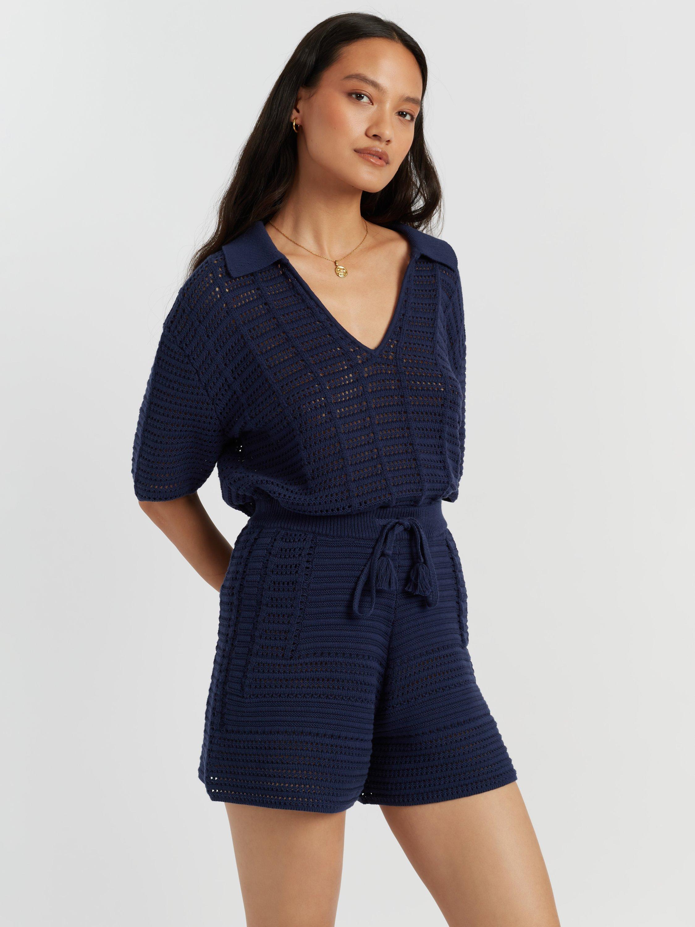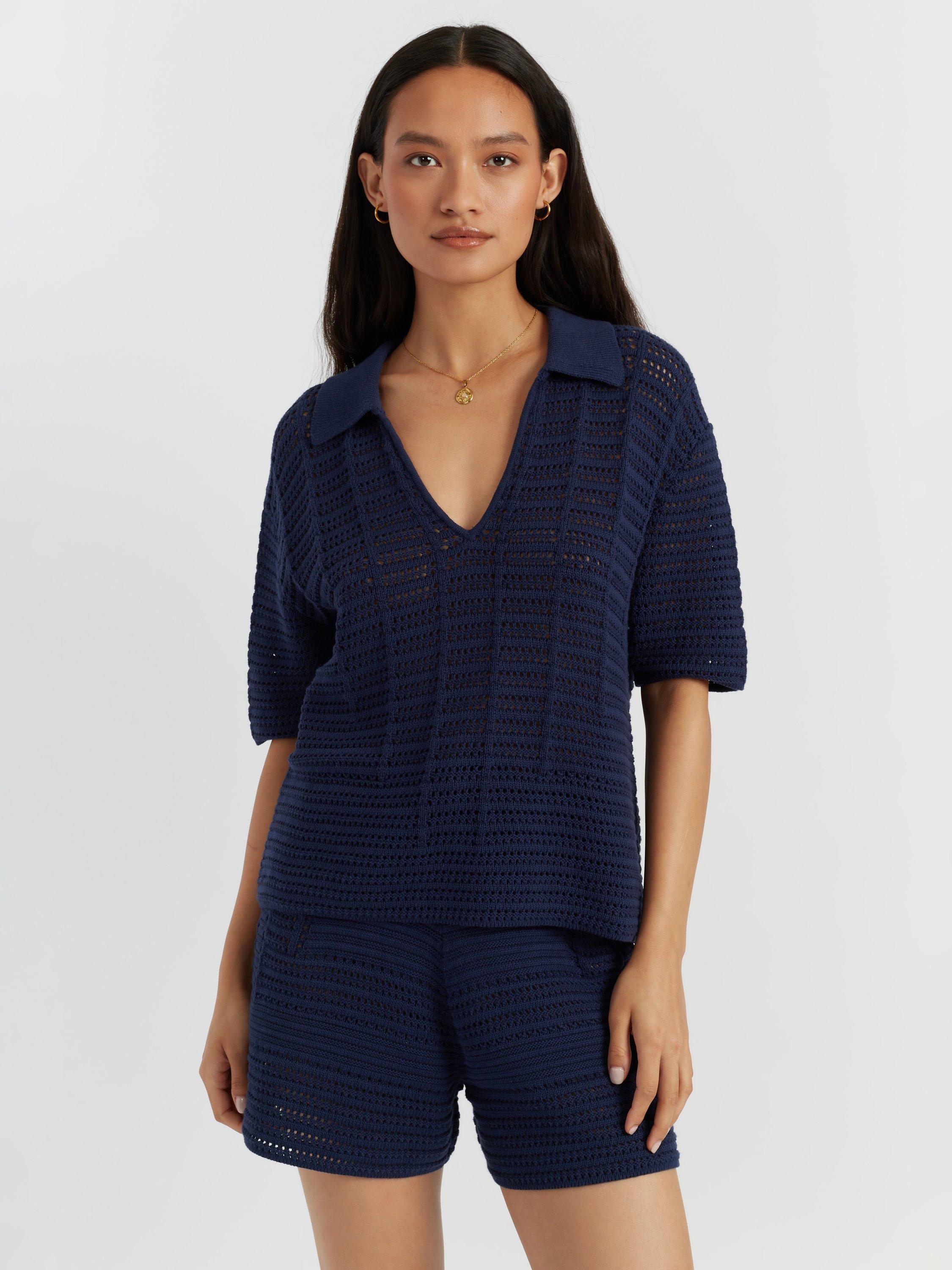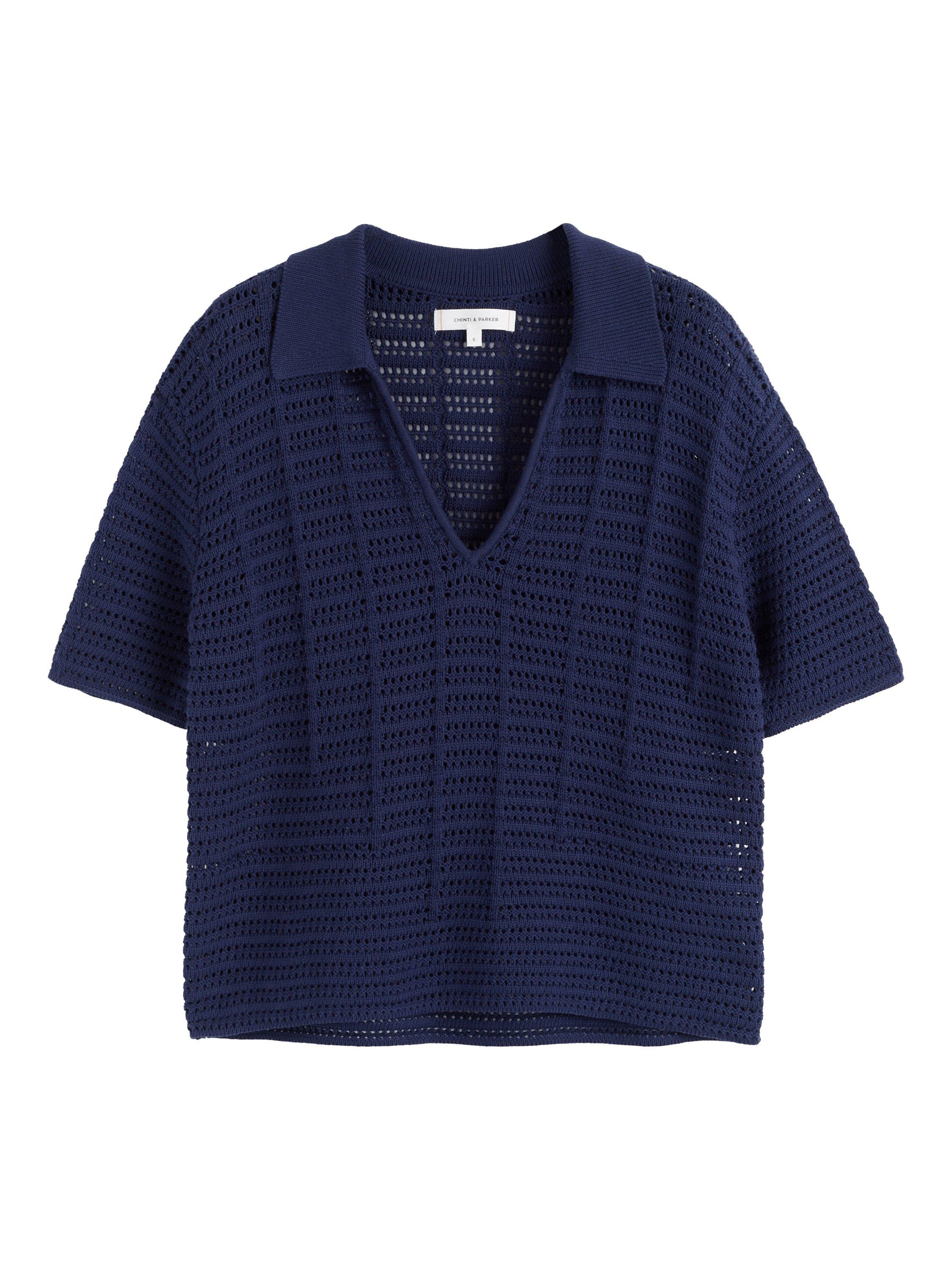 Crocheted from pure cotton, this Capri shirt is high on our summer wish lists. Shaped for a relaxed fit, it has an open, V-neckline and drop shoulders. Wear it with the matching shorts.
