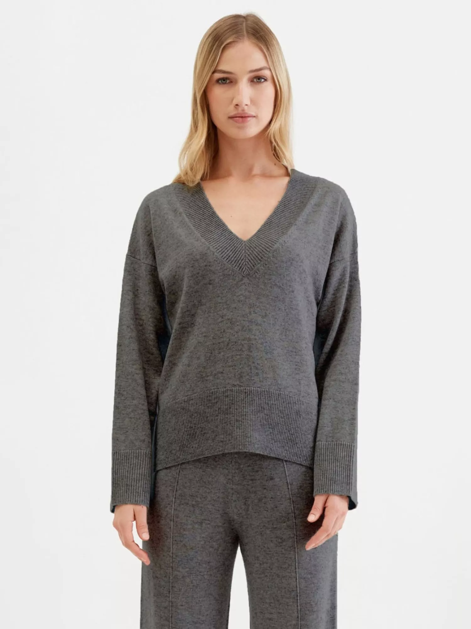 A new style for the season, this sweater combines our much-loved slouchy silhouette with a flattering V neckline. It is finely knitted from a blend of wool and cashmere for a lightweight handle.