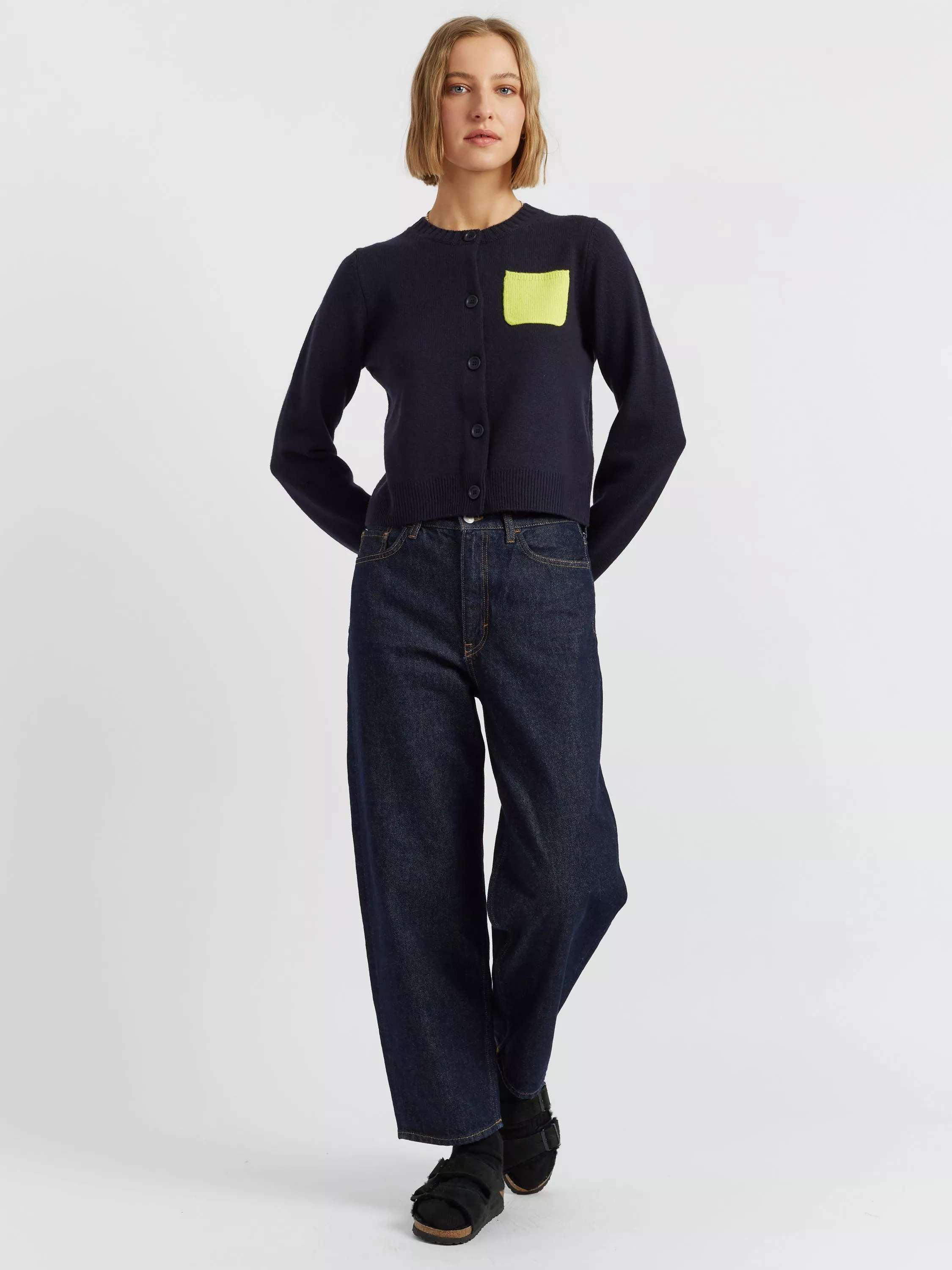 Crafted from a luxurious wool-cashmere blend, this cardigan is inspired by Chinti & Parker's best-selling sweater. It features a classic button-up silhouette with a modern twist: a bold contrast pocket that adds a playful pop of colour.