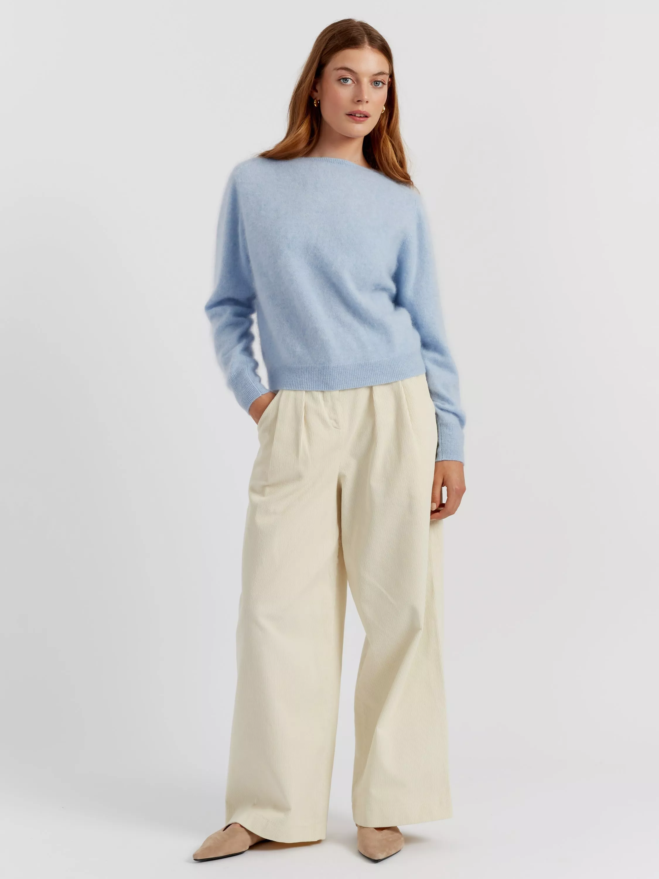 Sumptuously soft and effortlessly elegant, this sweater is spun from 100% brushed cashmere. The fine knit offers a beautifully light feel, while the hue adds a gentle pop of colour to spring outfits. A timeless staple you’ll reach for year after year.