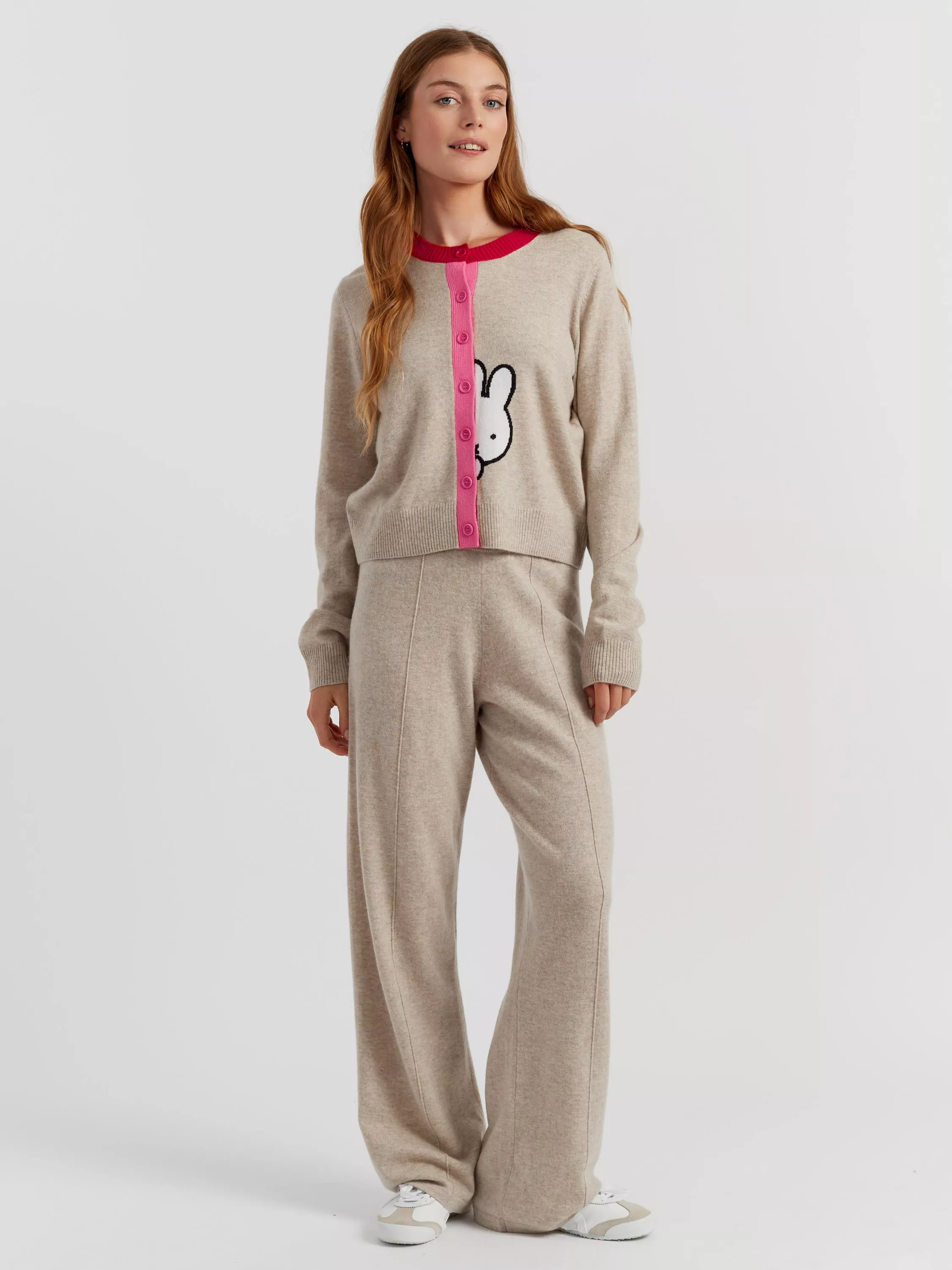 A playful twist on a timeless knit. Crafted from a luxurious blend of wool and cashmere, this cardigan features Miffy peeking cheekily from behind the button placket - a subtle, characterful detail that captures Chinti & Parker’s joyful spirit. Designed in a standard knit with contrast trims and a relaxed fit, it brings a touch of fun to everyday elegance.