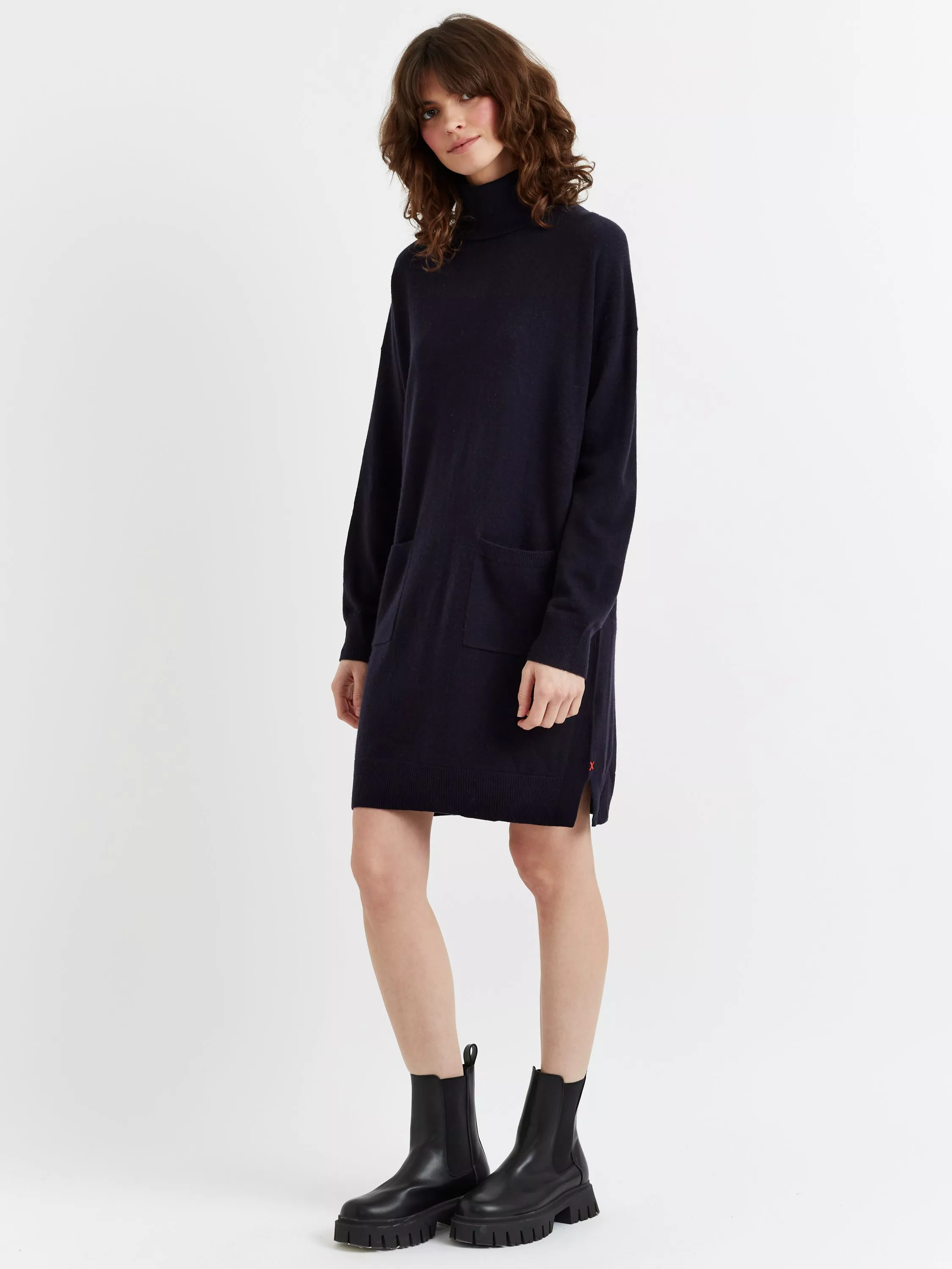 This roll neck jumper dress offers a soft, warming embrace for winter days in a plush wool blend. Its regular fit and knee length make it an easy choice for everyday layering and comfort.