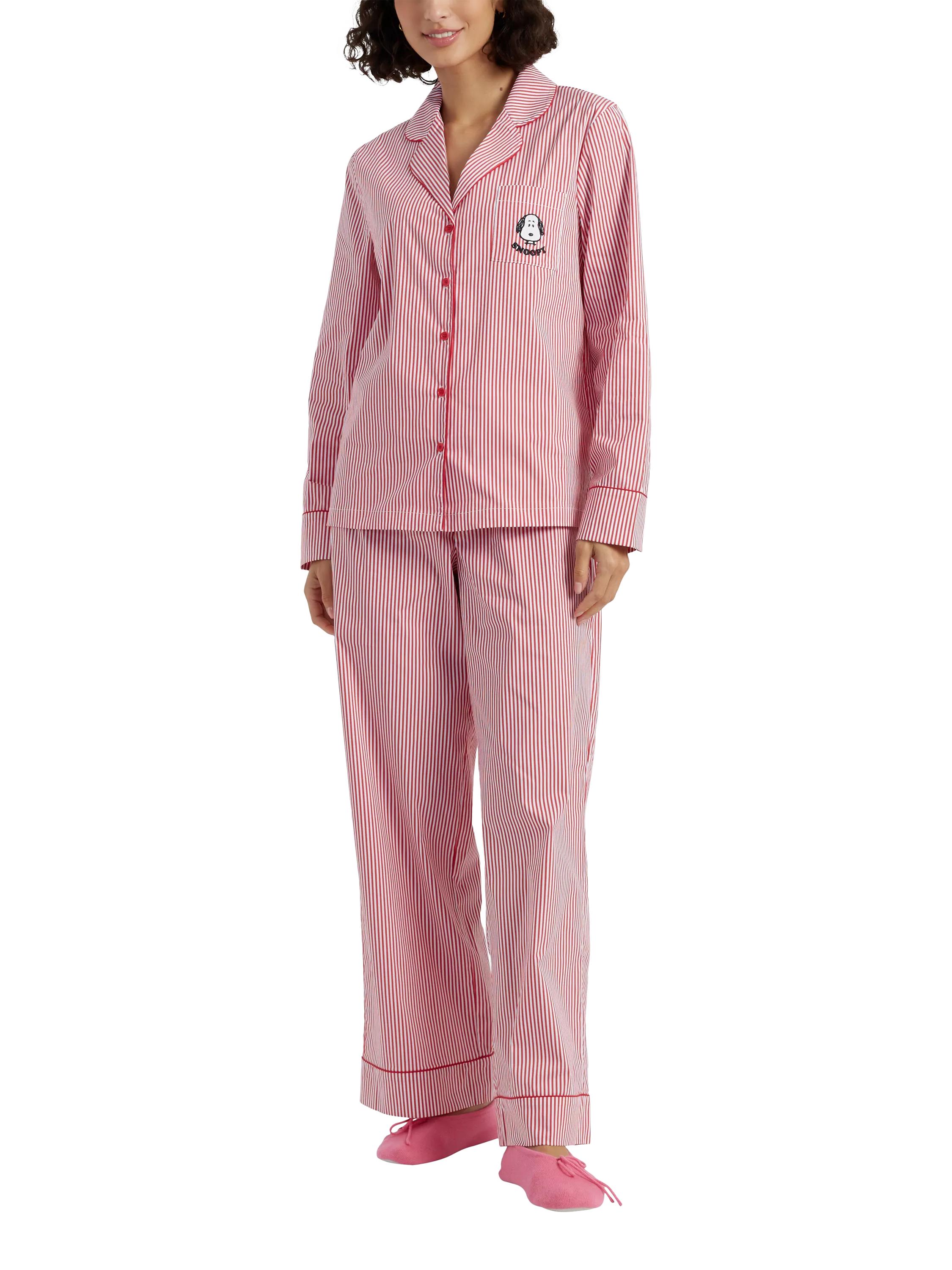 Made from 100% cotton, these stripy pyjamas are breathable and soft. They are cut for a relaxed, comfortable fit - the trousers have an elasticated waistband. Colourful embroidery showcases Snoopy on the front pocket and at the back.