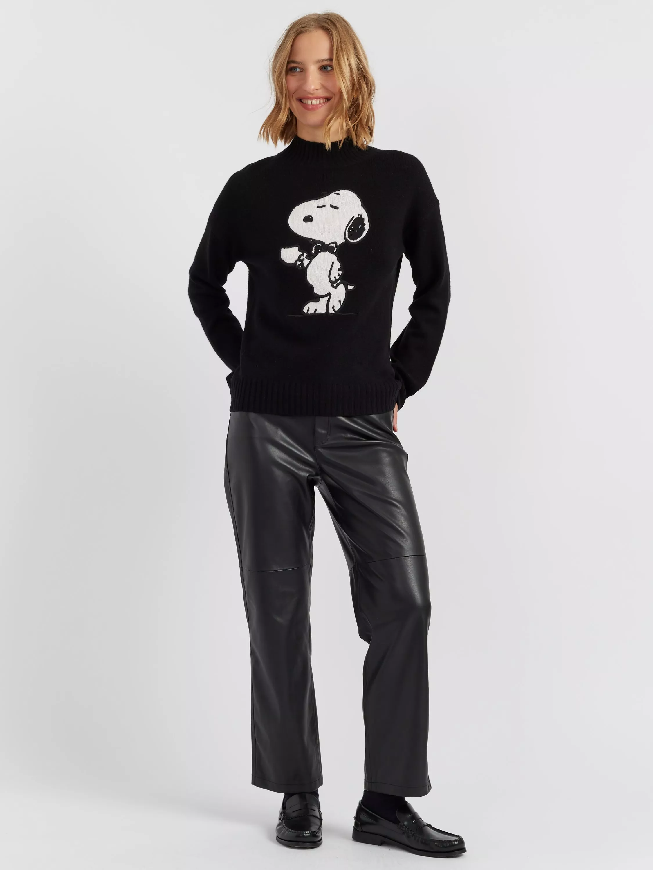 Sophisticated with a wink of humour, this sweater features the ever-charming Snoopy enjoying a cup of tea. Spun from a luxurious wool and cashmere blend, it combines cosy warmth with playful elegance — perfect for crisp autumn days and cosy evenings in.