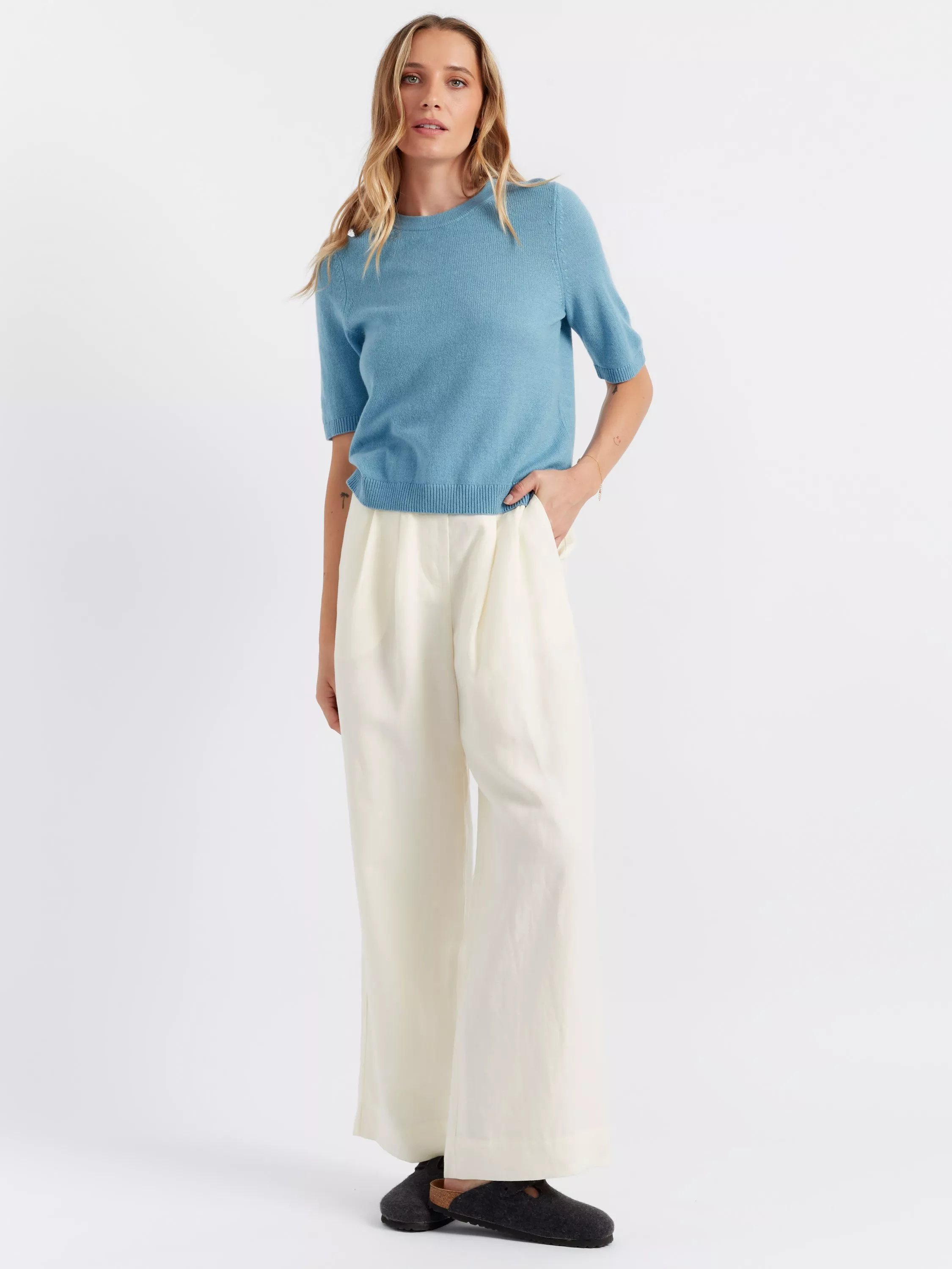 A new addition to the Summer Cloud Cashmere range, this knitted tee is a seasonal must-have. It is finely knitted from ultra-fine cashmere in a classic shape, making it a perfect layering piece during colder days.