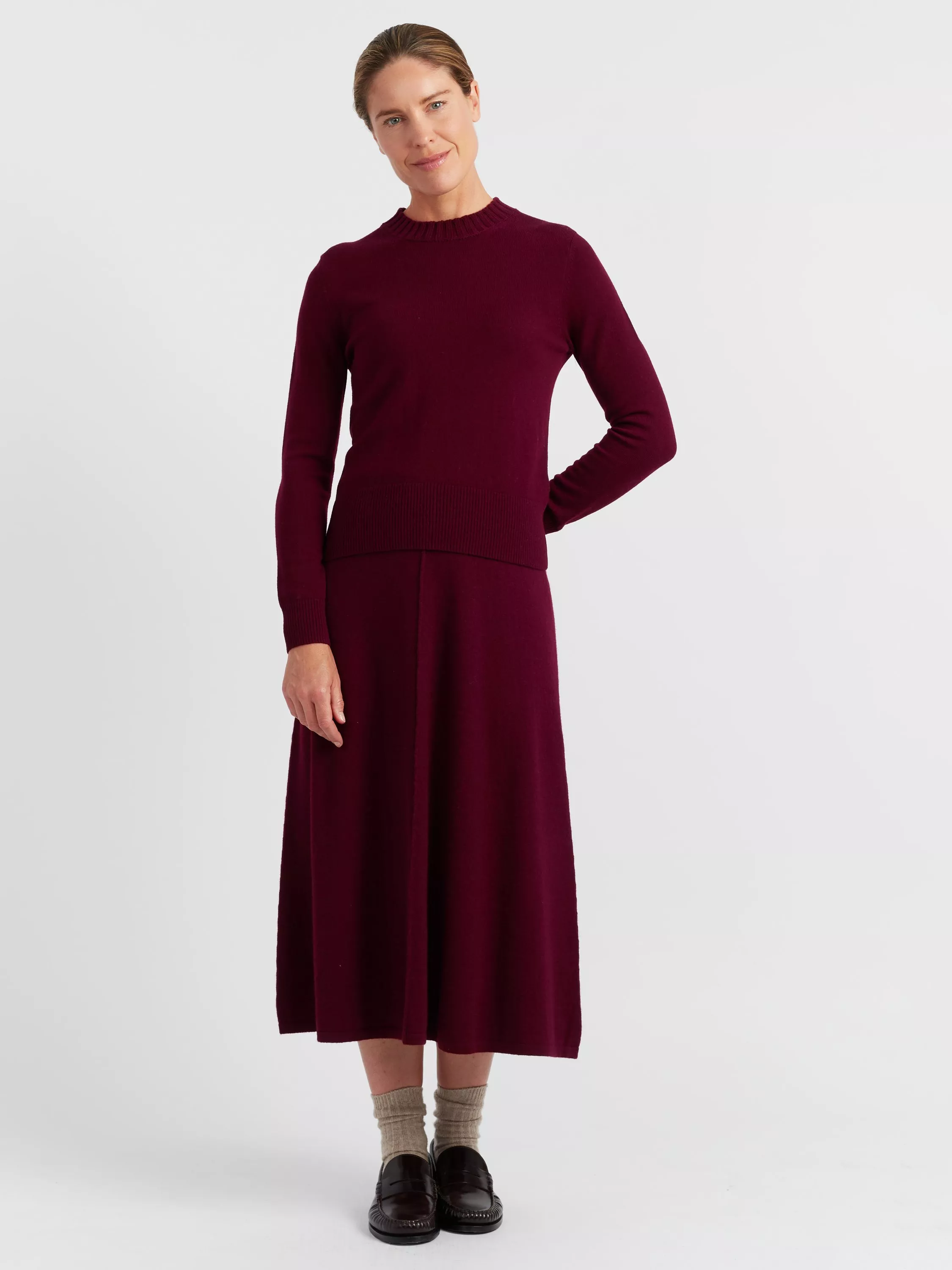 Basics, made premium. This sweatshirt is cut to a cropped length, making it the perfect match for high-waisted trousers or skirts. It's finely knitted from a blend of luxe wool and cashmere and features sporty split cuffs and ribbed trims.