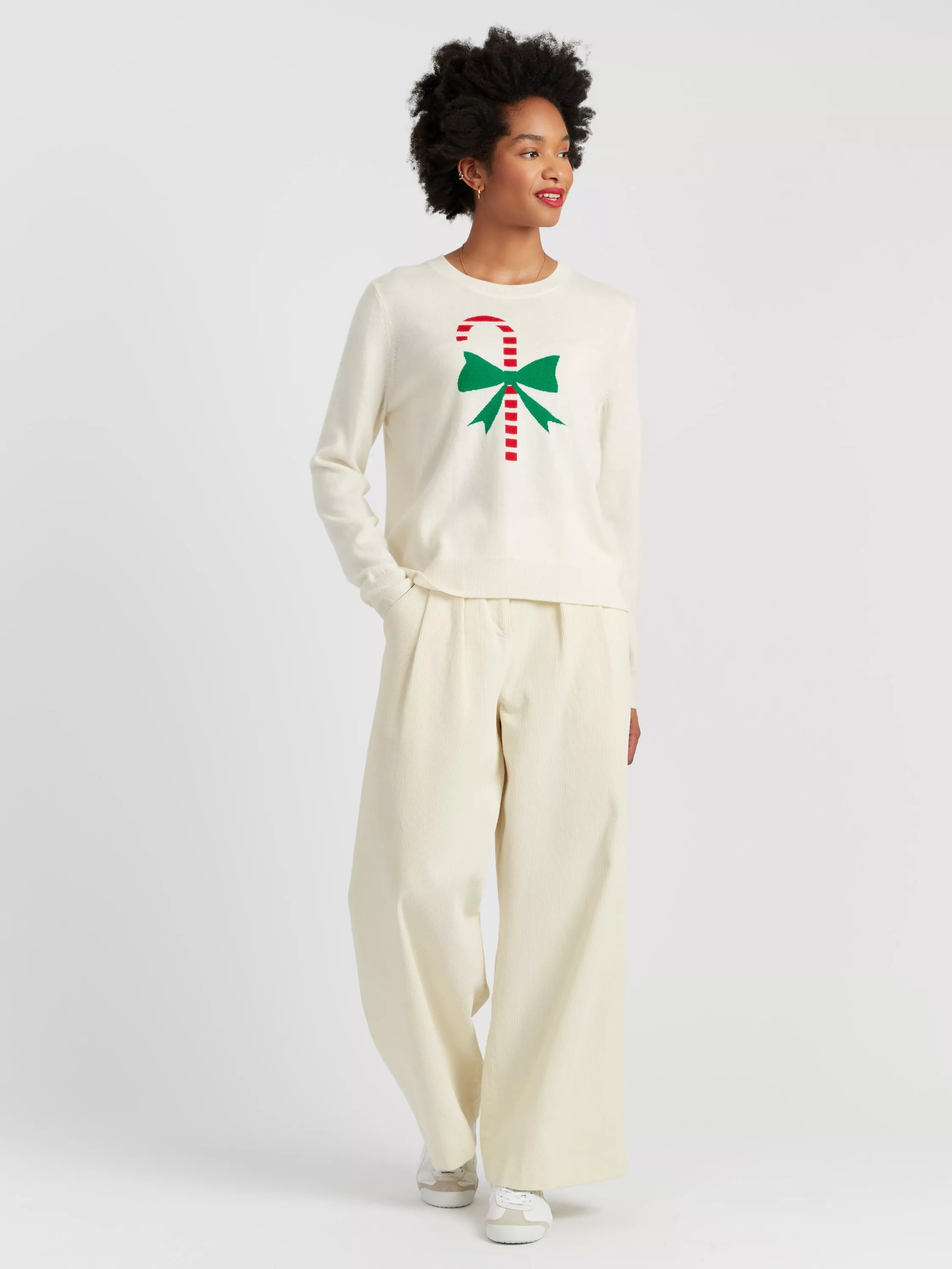 Festive with a sweet twist, this cosy jumper features a classic candy cane tied with a bow. Spun from Chinti & Parker's luxurious wool and cashmere blend, it’s your go-to knit for a cheerful, comfy Christmas.