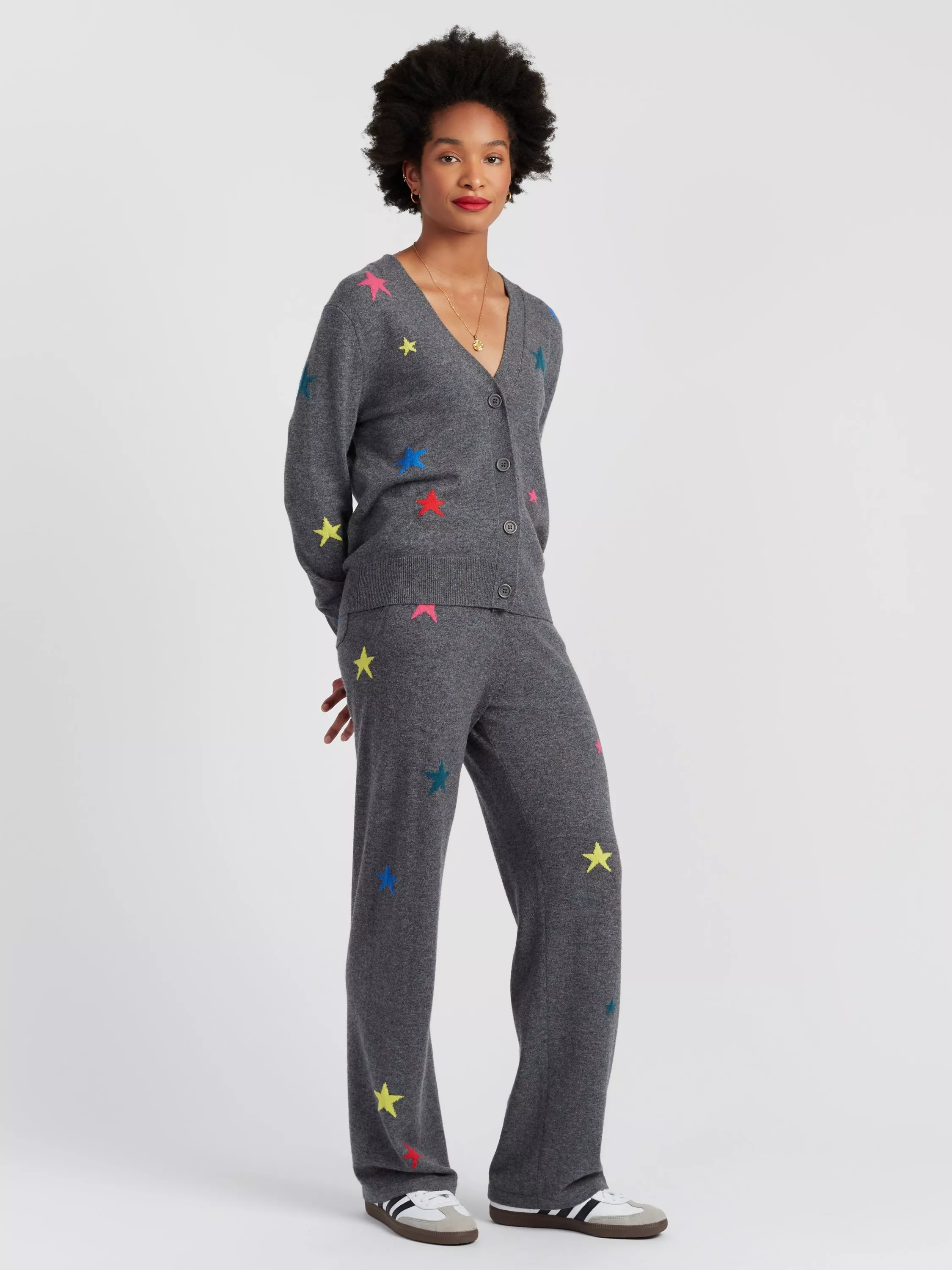 This cardigan is finely knitted from a blend of wool and cashmere. It features contrasting rainbow-hue intarsia stars. It is shaped for a relaxed fit, with the hem hitting high on the hip.