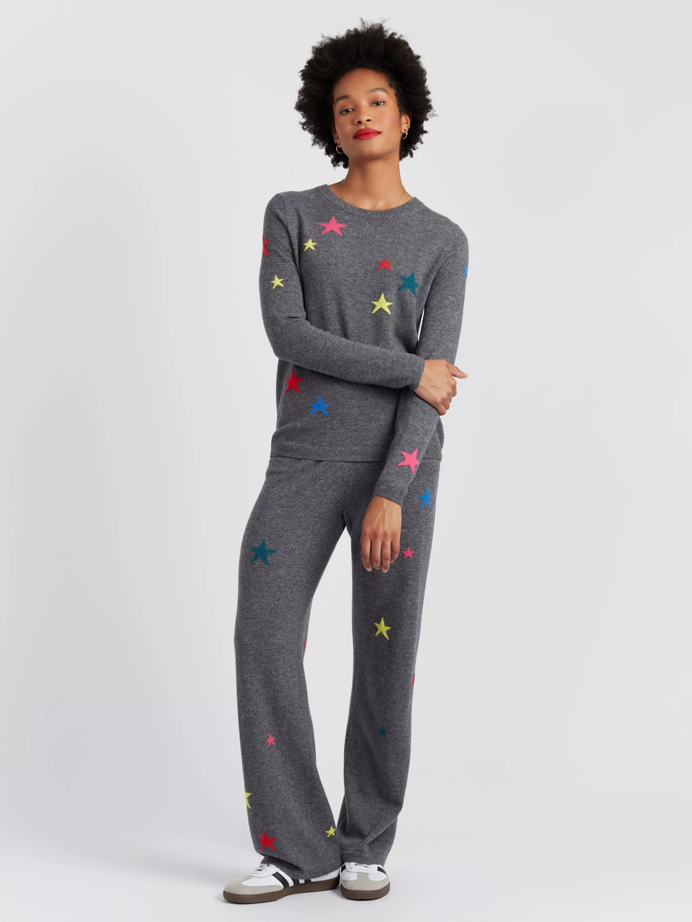 Embrace Chinti and Parker signature stars this season in a brand new shape. Finely knitted from a blend of wool and cashmere, these wide-leg pants shape a flattering silhouette.