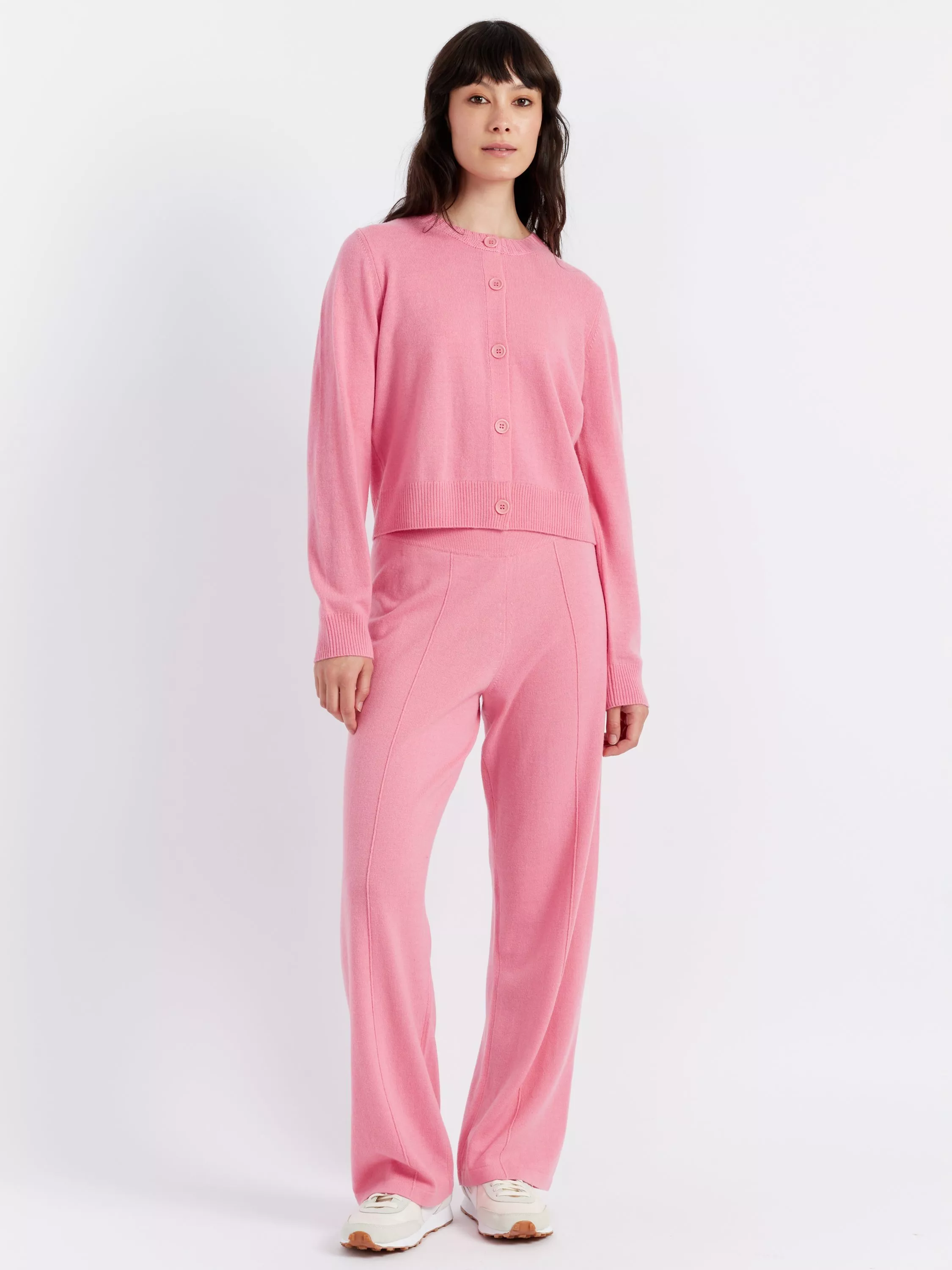 These wide-leg trousers are finely knitted from a luxe blend of wool and soft cashmere. They feature a ribbed waistband and sporty seams through the centre of the legs.