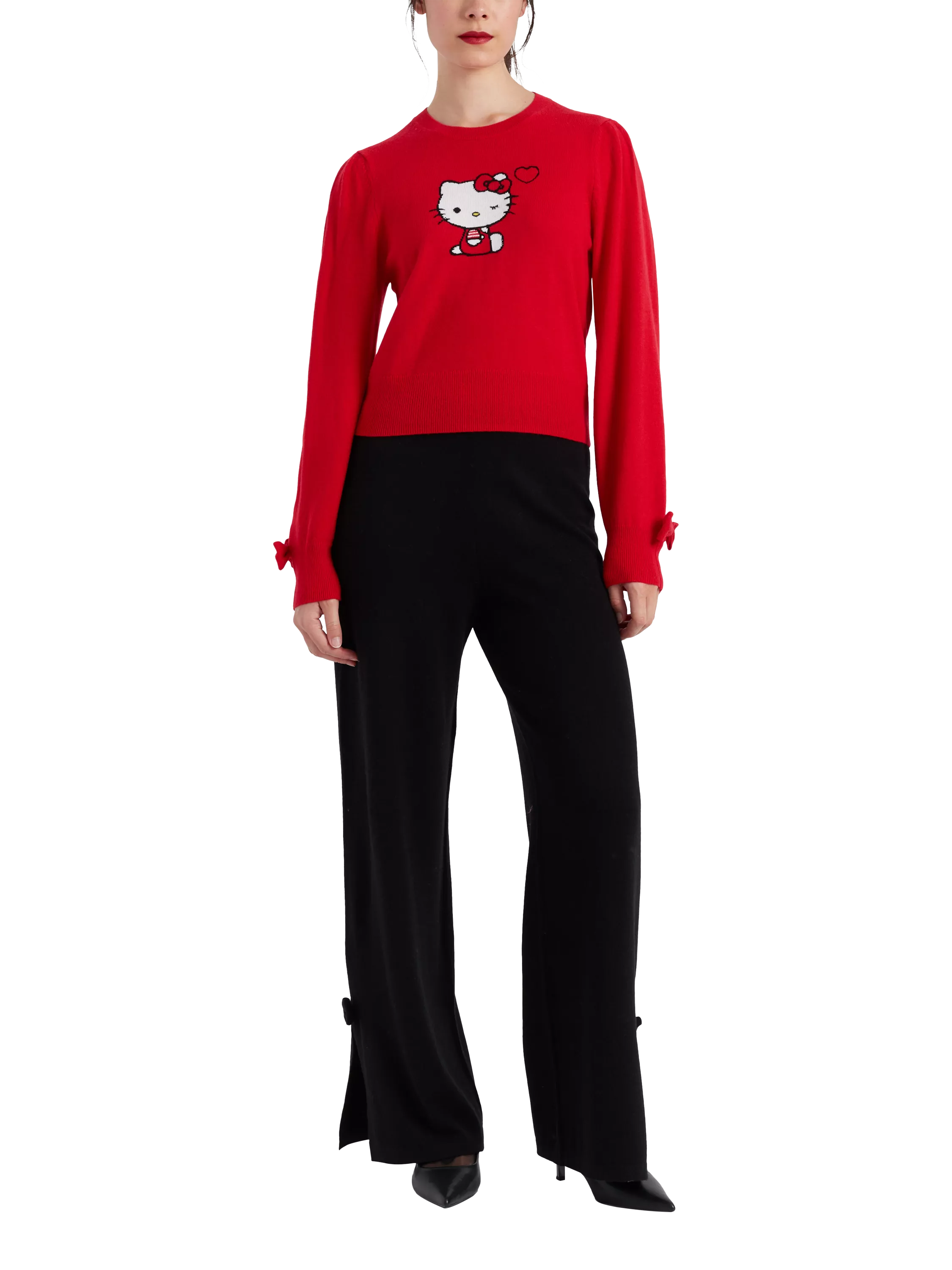 Finely knitted from a blend of wool and cashmere, this jumper is a key style from our latest collaboration. Its girlish puffed shoulders and slim fit are further enhanced by bows at the wrists - a nod to the bow worn by Hello Kitty herself. The iconic cat is depicted using real intarsia.