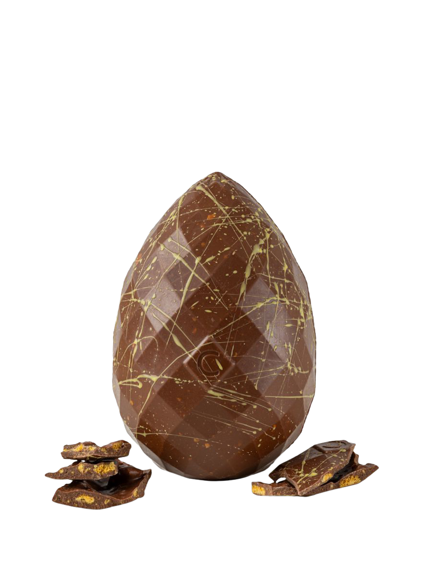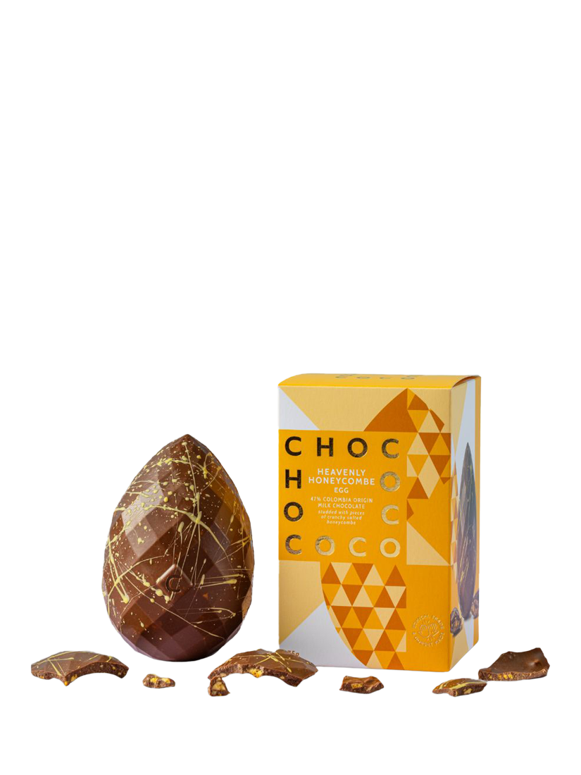 Crafted by artisan chocolatiers in Chococo's Dorset chocolate kitchen, this beautiful, hand decorated egg is made with award winning 47% Colombian milk chocolate and homemade salted honeycomb pieces.