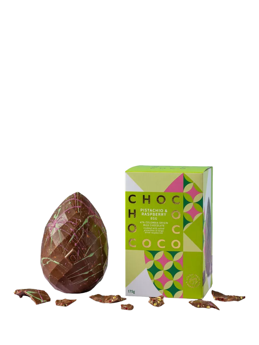 Chococo47% Milk Chocolate with Pistachio & Raspberry Easter Egg, 175g