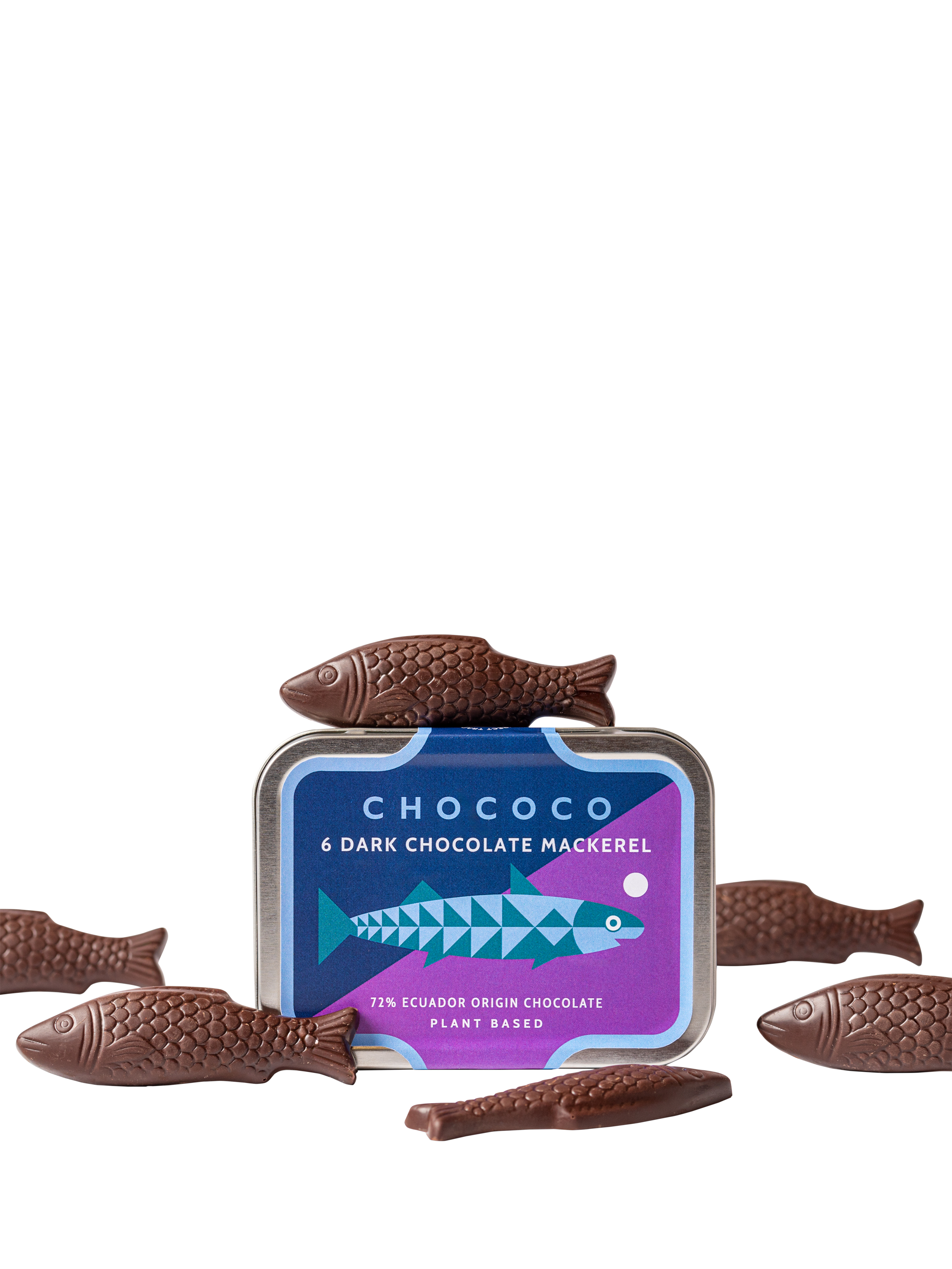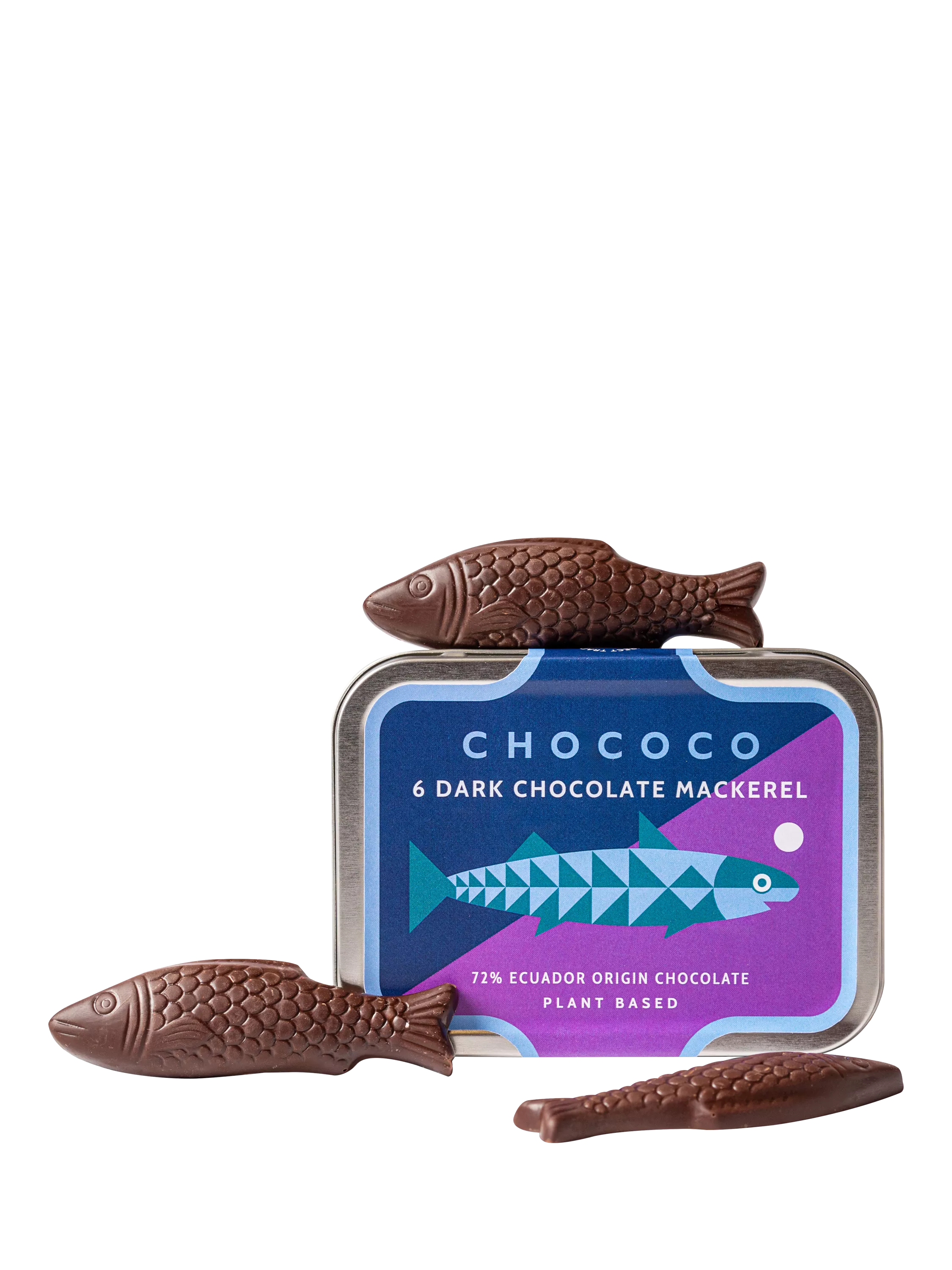 Crafted in Dorset by artisan chocolatiers, Chococo's six dark chocolate mackerel are made with Gold Star-Great Taste, award-winning 72% Ecuador dark chocolate and packaged into an iconic reusable tin.