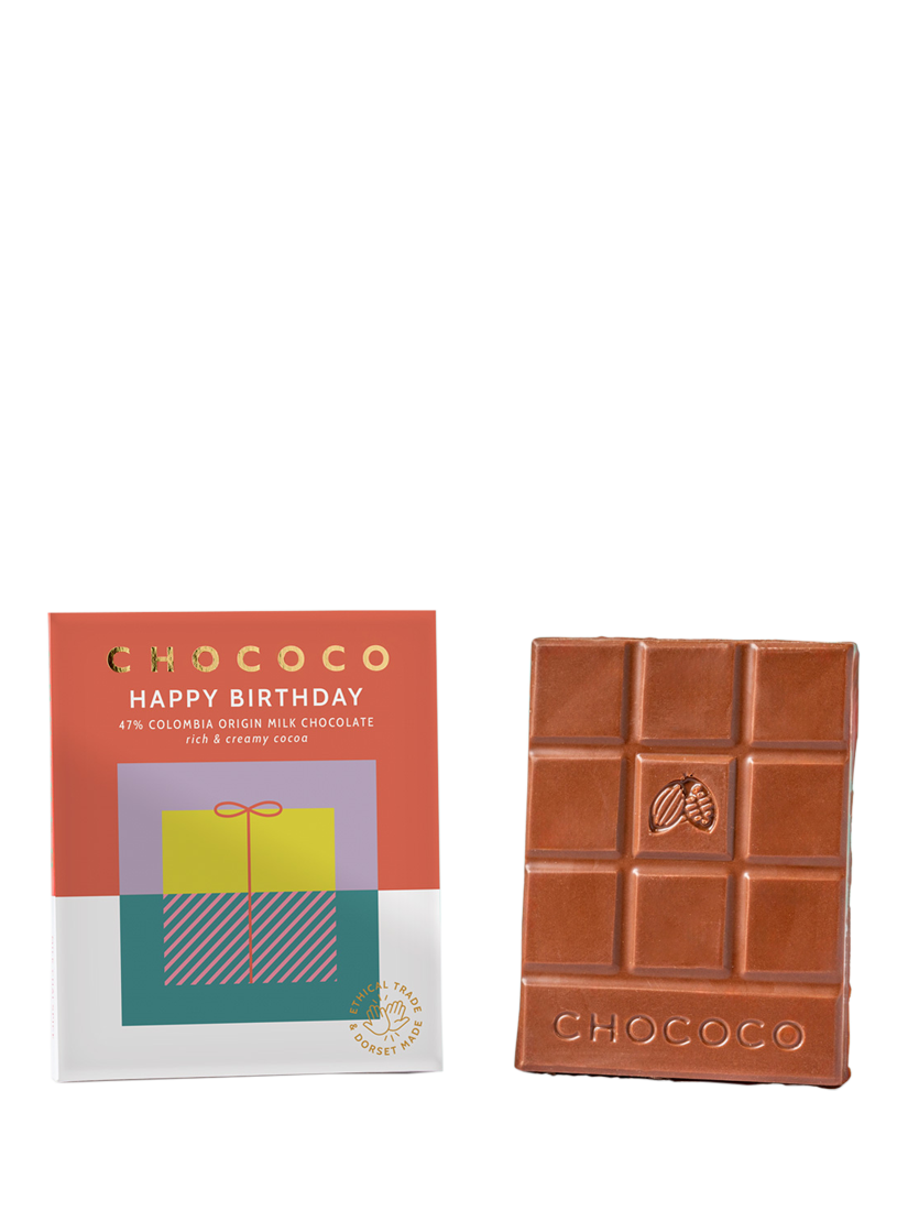 Crafted in Dorset by artisan chocolatiers, Chococo's Happy Birthday Chocolate Bar is made with Gold Star-Great Taste, award-winning Columbia 47% milk chocolate, it's the perfect way to celebrate their special day!