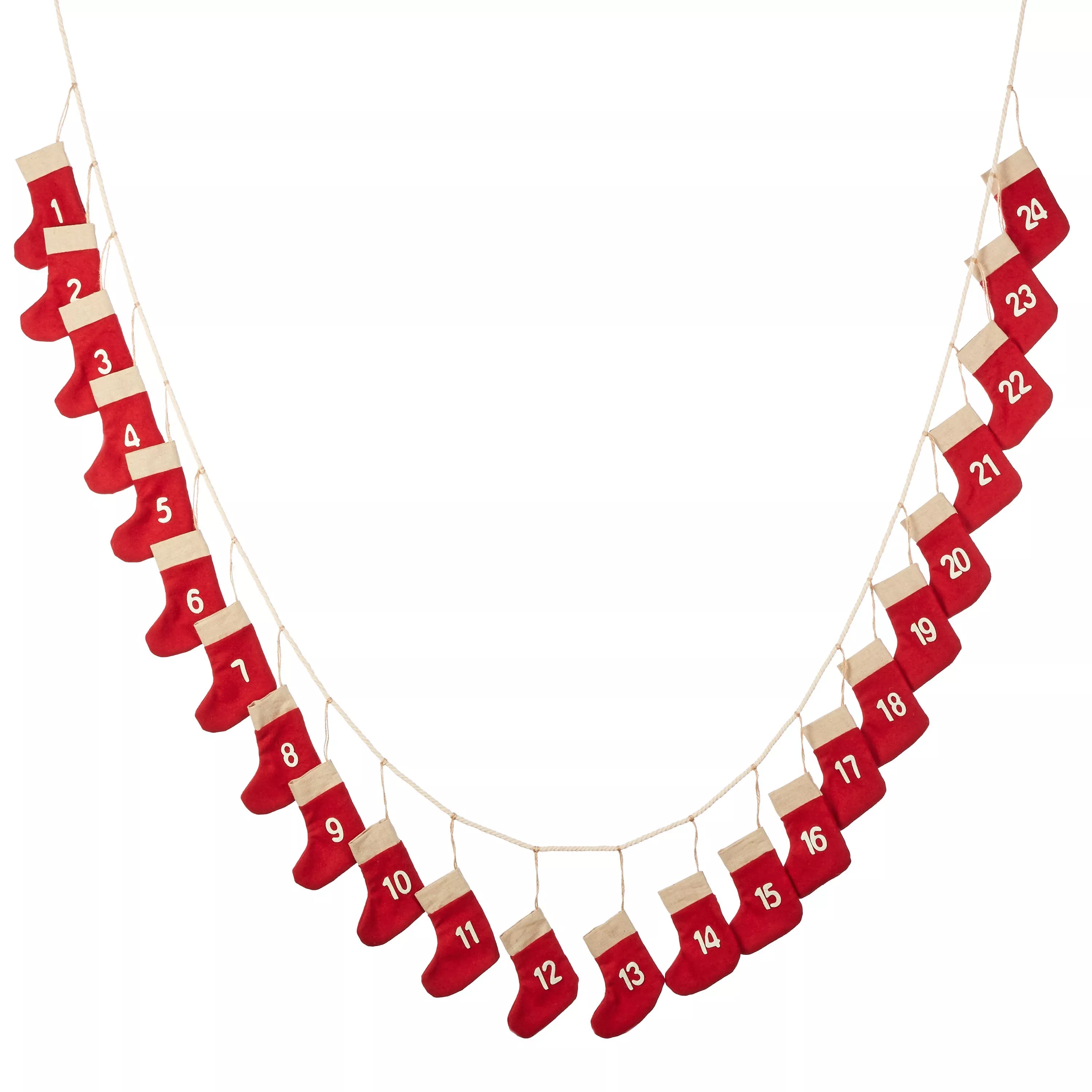 Reveal festive treats with the Christmas Stocking Fabric Garland Advent Calendar. A fun way to decorate the home in the run-up to Christmas, hang up the garland and fill each fabric stocking with your choice of surprises for loved ones to enjoy over the season.