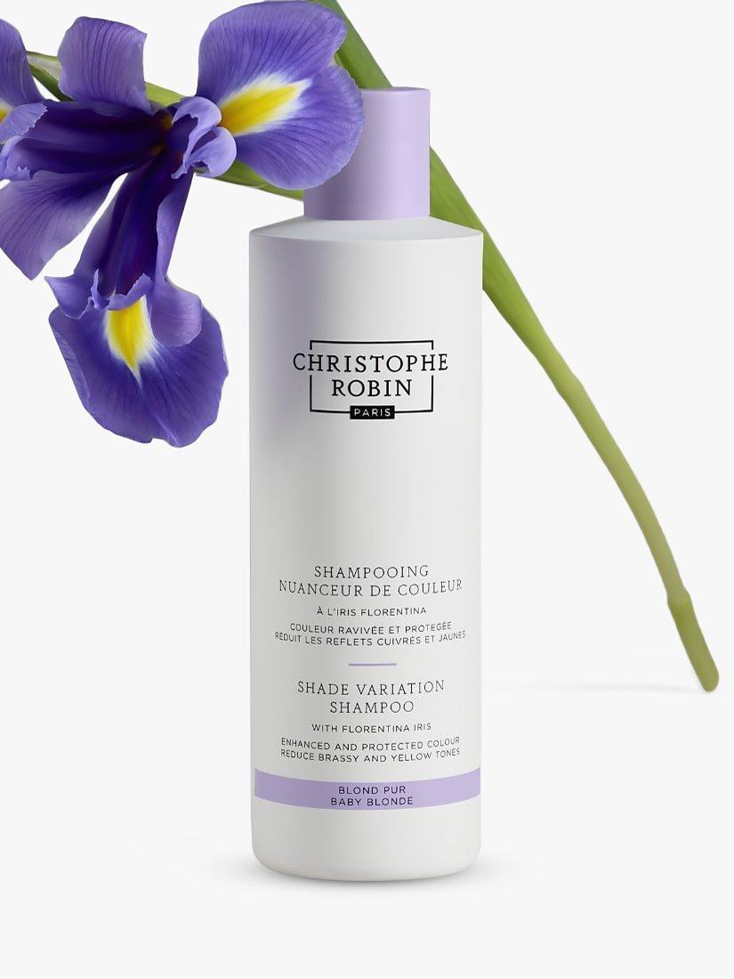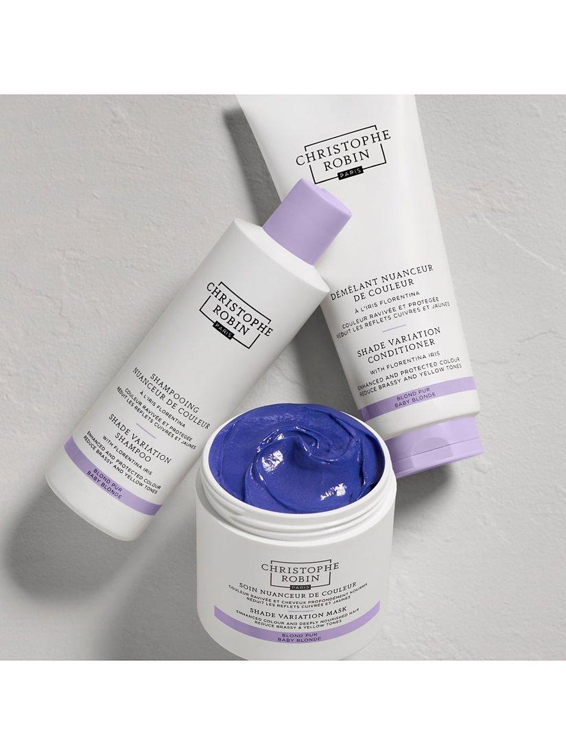 Florentina iris and a blend of violet pigments colour-corrects unwanted brassy and yellow tones while almond butter, rich in omega-6, provides visible shine and a vitamin-rich conditioning complex leaves lengths feeling nourished.